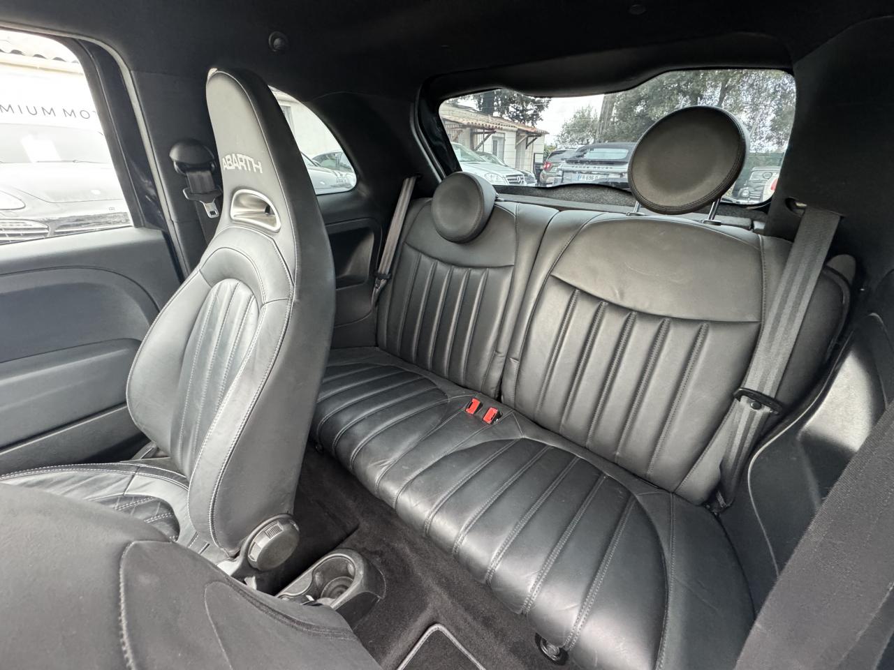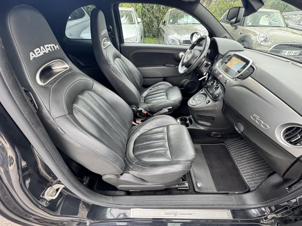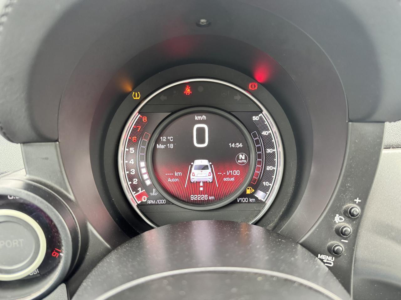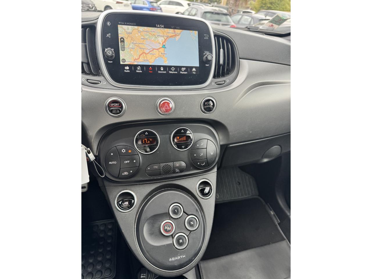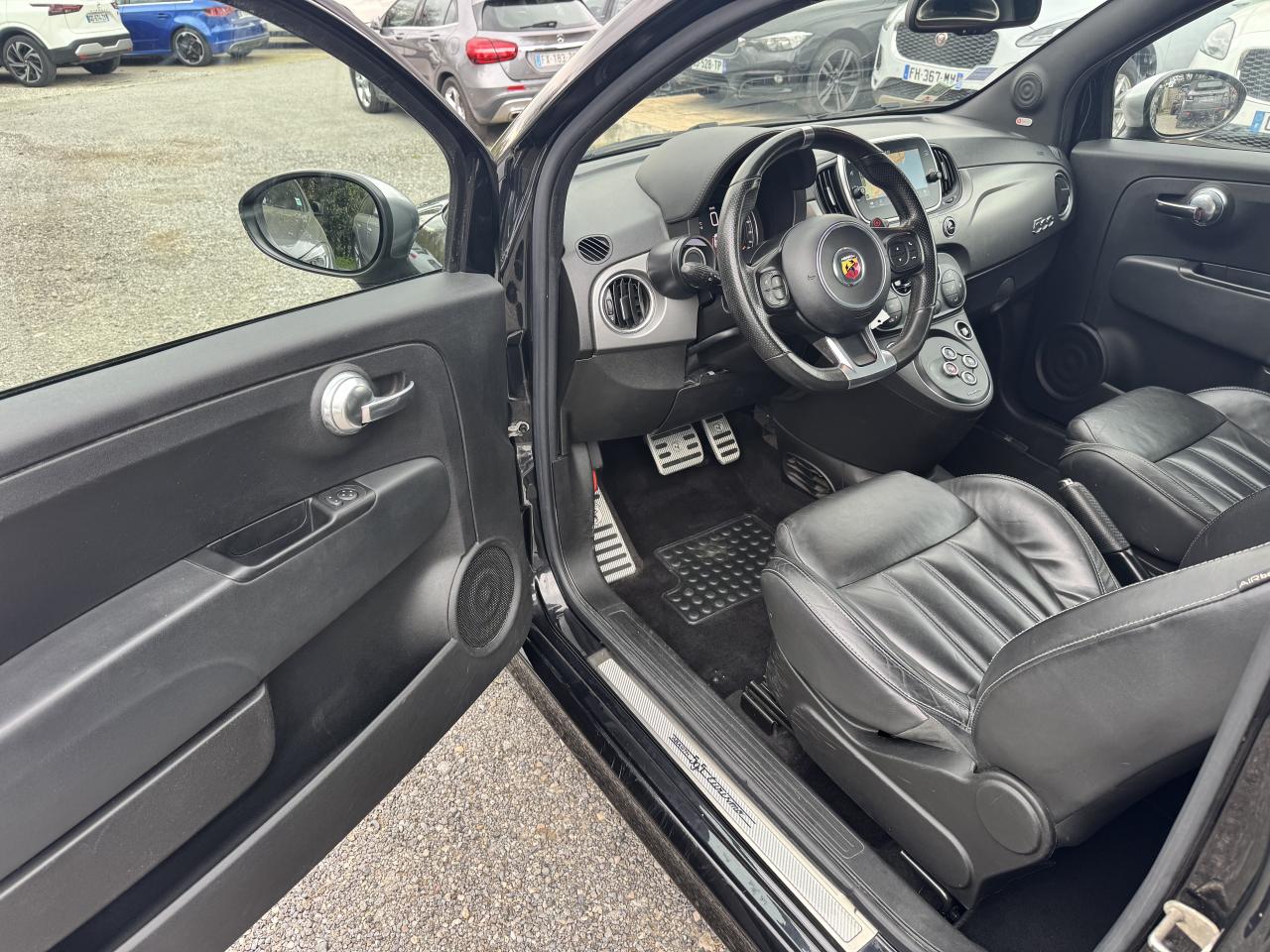 ABS – antiblocage des roues avec répartiteur de freinage EBDAirbag genoux conducteurAirbags conducteurAirbags latéraux avantAirbags rideauxAmortisseurs Cofap à l'avant avec valve FSDAmortisseurs Koni à l'arrière avec valve FSDASR (antipatinage) et « Hill Holder » (système d'aide au démarrage en côte)Assistance au freinage d'urgenceBanquette AR rabattable 50/50Boîte à gants ferméeBouclier avant avec calandre nid d’abeille et inscription “ABARTH” en reliefClimatisation automatiqueCondamnation centralisée des portes avec télécommande d'ouverture à distanceDésactivation de l'airbag du passager avantDirection assistée DualdriveDisques de freins Ø 284 X 22 perforés et auto-ventilés à l'avant et Ø 240 X 11 perforés à l'arrièreDouble sorties d'échappement chroméeEcran couleur TFT 7'' multifonctionsESP (contrôle électronique de stabilité) avec MSR (régulation de l'inertie moteur)Etriers de frein rougesFeux de jour à LEDFiltre à air "powered by BMCFixation Isofix pour siège enfant à l'arrièreGSI (Gear Shift Indicator) :système d'indication de changement de rapportJantes en alliage 17" GranTurismoKit réparation de pneu "Fix & Go" avec bombe anti-crevaisonKit Turismo BVA - Seuils de porte en alu , pédalier, kits de tapis noirs, bouchon de carburant en aluLève-vitres électriquesLogo 595 Turismo à l’arrièreManomètre de mesure de pression du turboMode Sport : fonction qui agit sur les performances moteur, sur le système de freinage, ainsi que sur la directionPhares antibrouillard avant intégrésPlanche de bord gris satinéPoignées de portes, poignée de coffre, baguette entourant logo AV et coques de rétroviseurs chrome satiné, inserts boucliers AV et AR couleur carroserieProjecteurs poly-elliptiquesRétroviseur intérieur électrochromeRétroviseurs extérieurs électriques et dégivrantsSellerie en cuir spécifique 'Abarth' (inclut les accoudoirs intérieurs des panneaux de porte en simili cuir)Siège conducteur réglable en hauteurTTC (Torque Transfer Control) : contrôle électronique du transfert de coupleUconnect 7'' HD LIVE (écran tactile 7'' HD, bluetooth, audio streaming, commande vocale, port USB et AUX, commandes au volant, services LIVE)Vitres arrière et lunette arrière privativesVolant cuir avec point milieu et branche inférieur couleur aluVolant réglable en hauteur