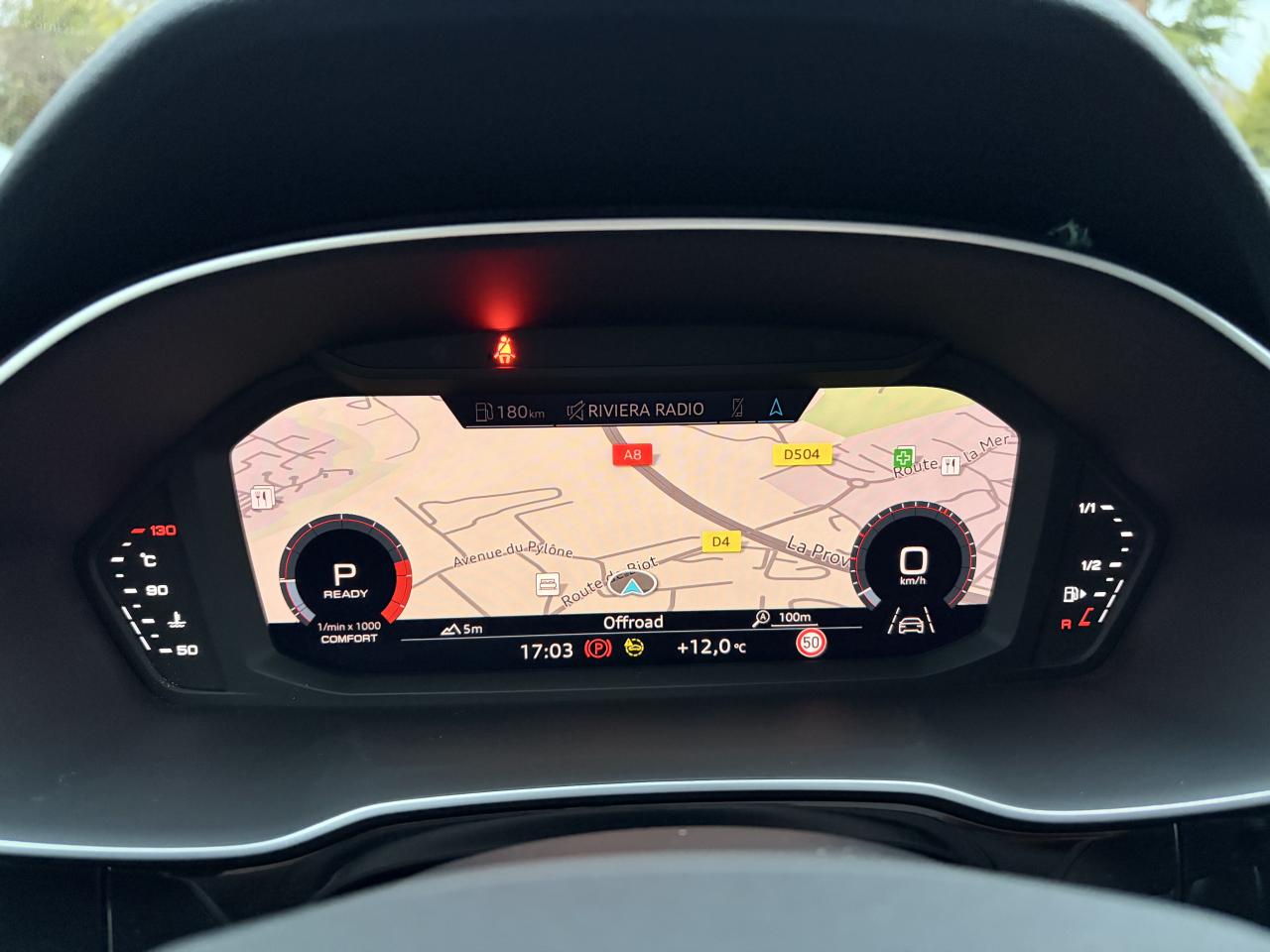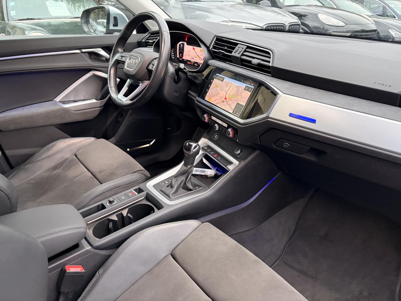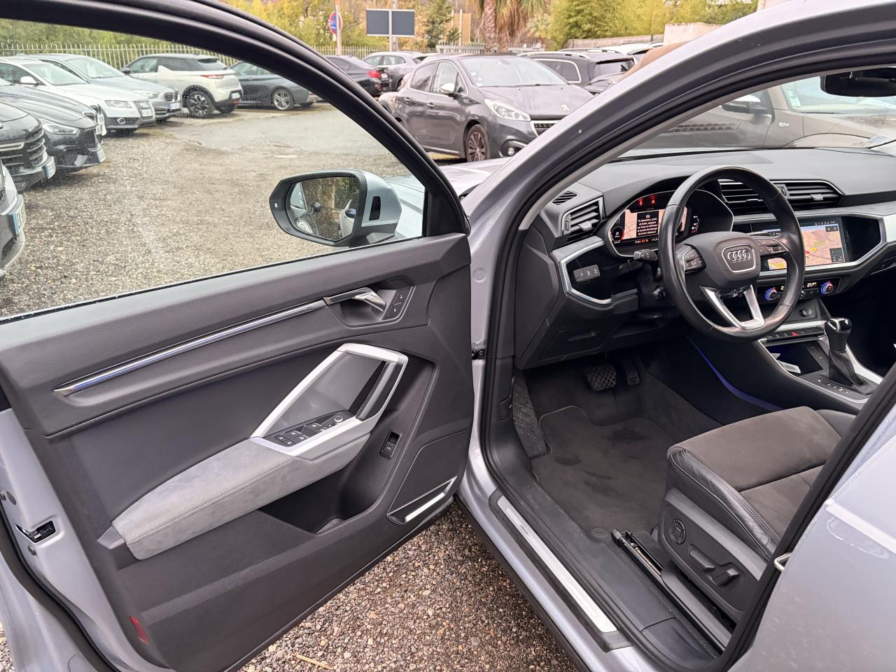 2 prises USB à l’arrière (type-C) et prise 12 volts dans la console centrale arrièreAccoudoir central coulissant en longueur, avec inclinaison réglable et vide-poches relevableDétecteurs angle mortAffichage du contrôle de la pression des pneumatiquesAppel d’urgence Audi connectApplications décoratives en aluminium argentAppui lombaire à 4 axes pour les sièges avant, réglage électrique, horizontal et verticalAudi connect navigation et divertissement plusAudi connect sécurité et assistance en ligneAudi Drive SelectAudi Hold AssistAudi Parking System PlusAudi pre sense frontAudi virtual cockpitAvertisseur de changement de voieAvertisseur de franchissement de ligneBanquette arrière rabattable 40/20/40Caméra de reculClé confort incluant déverrouillage du coffre par capteur (sans safelock)Climatisation automatique confort 2 zonesCombiné d’instruments entièrement numérique 10,25 poucesDétecteur de pluie et allumage automatique des projecteursDirection assistée électromécanique asservie à la vitesseDossier de banquette AR réglables en inclinaisonFixation pour sièges enfants ISOFIX et Top Tether pour les places arrière extérieuresHayon de coffre à ouverture et fermeture électriquesInterface BluetoothInterface USB de type C pour le chargement d’appareils externes uniquementJantes en aluminium coulé style 5 branches, 7 J x 18 avec pneus 235/55 R 18MMI navigation plus avec MMI touchMoulures de seuil à l’avant avec insert en aluminium, éclairéesPack Advanced extérieurPack aluminium intérieurPack Brillance extérieurPack éclairage d’ambiancePack Eclairage intérieurPack SécuritéPare-brise feuilleté, athermique et acoustiquePhares à LED avec clignotants dynamiques à l’arrièreRampes de pavillon en aluminium anodiséRéception radio numérique (DAB)Régulateur de vitesseRétroviseur intérieur à position nuit automatique, sans encadrementRétroviseurs extérieurs couleur carrosserieRétroviseurs extérieurs réglables, dégivrants et rabattables électriquement, incluant fonction rabat automatique pour le rétroviseur côté passager avantSellerie Alcantara / Similicuir monopur 550Sièges avant sportSuspension ConfortTapis de sol AV et ARVolant 3 branches multifonctions plus en cuir et palettes de changement de vitesses
