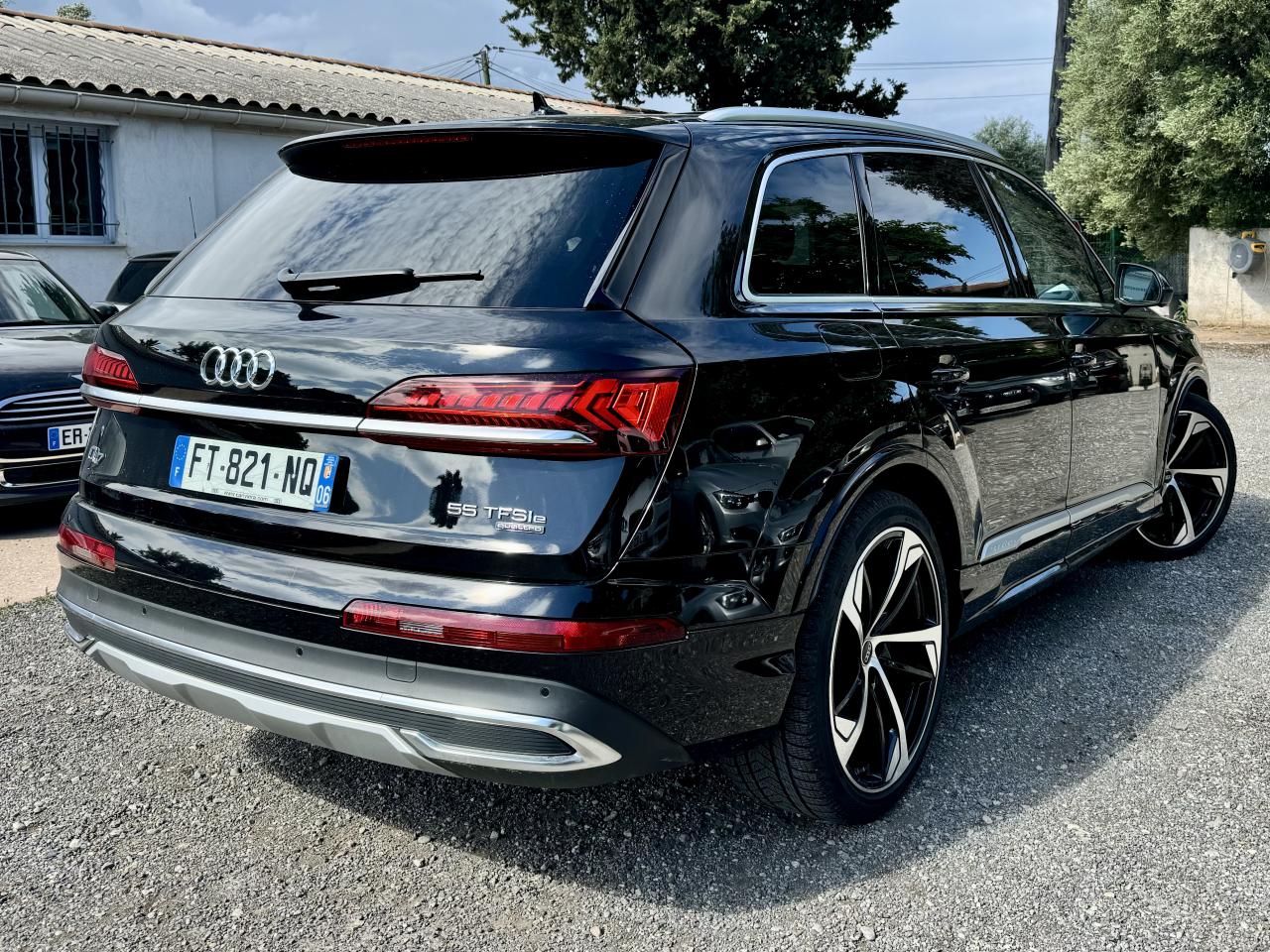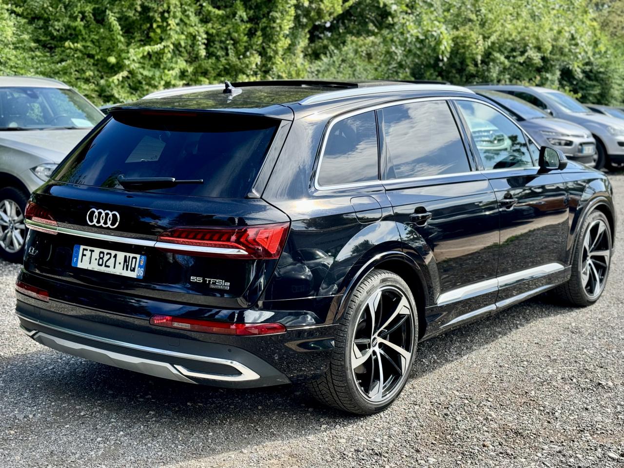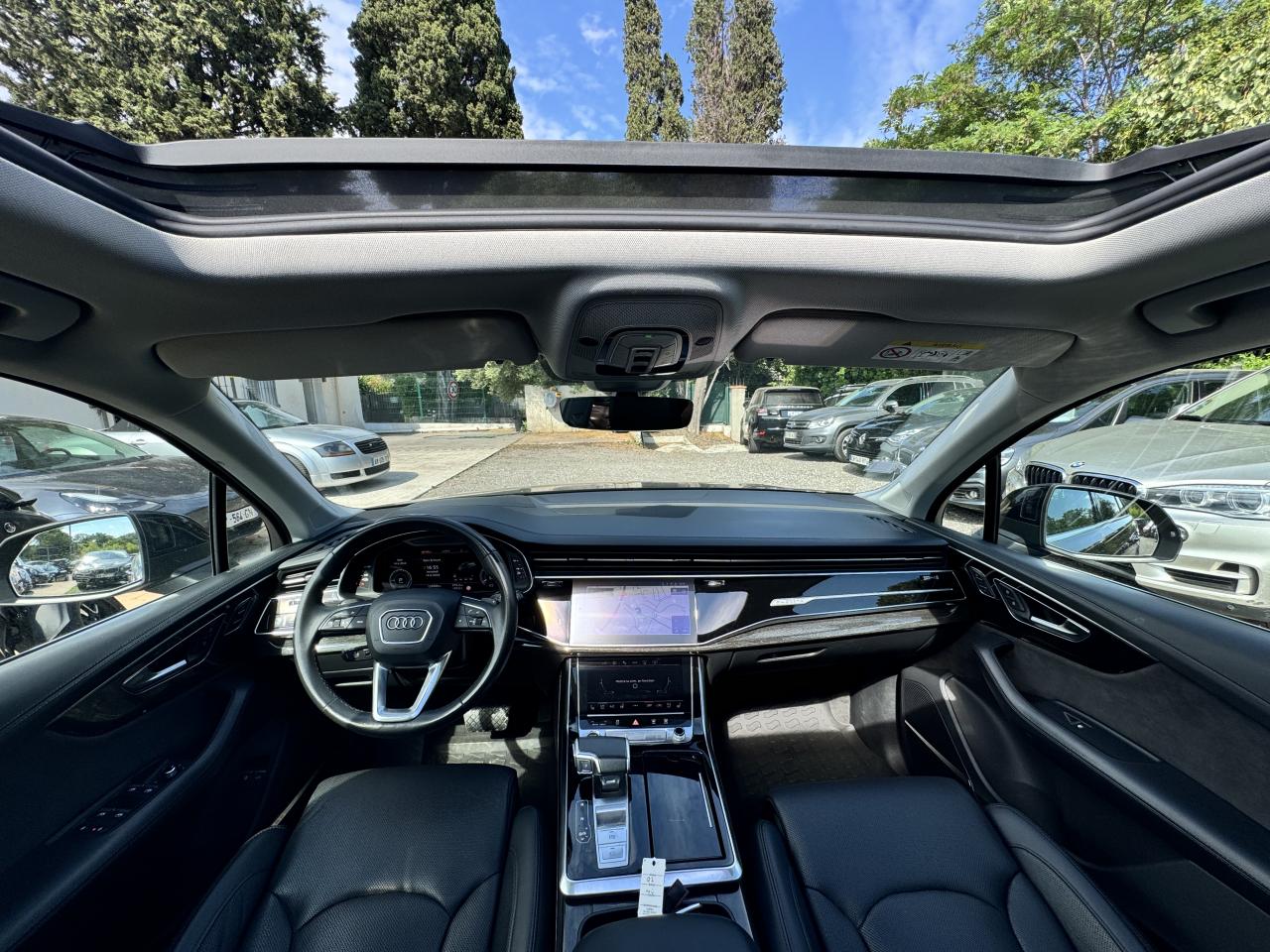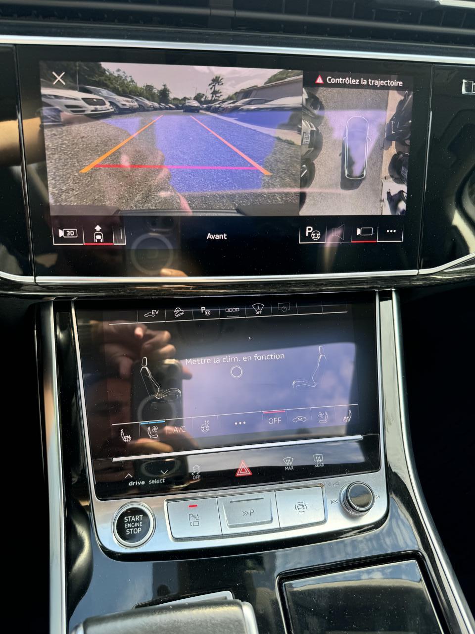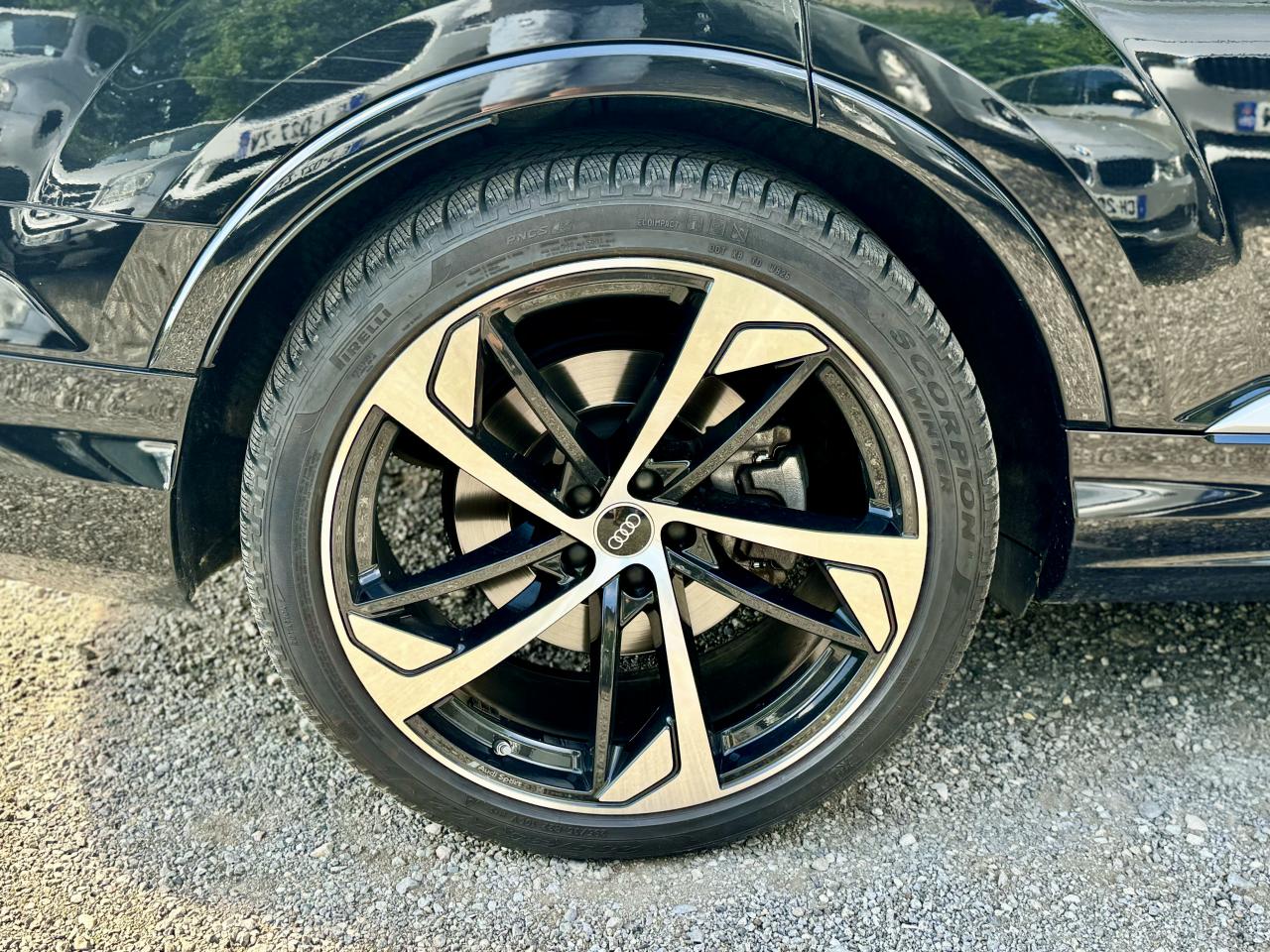 Adaptive Air SuspensionAffichage Tête Haute HUD (Head-Up Display)Airbags latéraux à l'avant et système d'airbags de têteApplications décoratives en bois de frêne Gris foncé sur le tableau de bord, les contre-portes et la console centraleAppui lombaire à 4 axes pour les sièges avant, réglage électrique, horizontal et verticalAssistant de maintien à l’arrêtAudi Drive SelectAudi parking system plus : signal acoustique et visuel d'aide au stationnement avant et arrière par pictogrammes sur l'écranAudi Phone BoxAudi virtual cockpitBang & Olufsen Premium Sound System avec son 3DBanquette arrière plusCâble électrique 16 A pour recharge en Mode 3 / Type 2 (puissance de charge maximal de 7,2kW)Caméra de reculCaméra multifonction pour système d'assistance à la conduiteClimatisation automatique confort 3 zonesDirection progressiveEclairage intérieur à l'avant et à l'arrièreFeux arrière à technologie LEDFixation pour sièges enfants ISOFIX et Top Tether pour les places arrièreHayon à ouverture automatiqueInterface BluetoothMoulures de seuil éclairées avec inserts en aluminium à l’avant et à l’arrièreNavigation MMI avec MMI touch responsePack Assistance pour la villePack Assistance RoutePack Eclairage ambiance LED multicolorePack Extérieur BrillancePack Non fumeurPeinture vernie Noir ProfondProjecteurs Audi Matrix LEDRampes de pavillon en aluminium anodiséRéception radio numériqueRégulateur et limiteur de vitesseRétroviseurs extérieurs réglables,dégivrants,rabattables électriquement avec Fonction jour/nuit automatique des deux côtés ,rabat automatique pour le rétroviseur extérieur côté passager avant (manoeuvre de stationnement) et CSellerie combinée cuir Valcona / cuir Cricket perforéSièges avant à contours individuelsSièges avant réglables électriquement avec fonction mémoire pour les deux siègesSystème audiophonique Audi: 10 Haut-parleurs dont haut-parleur central et subwoofer, amplificateur à 6 canaux, puissance totale 180 wattsSystème de localisation antivol Audi connectToit panoramique en verreTouches de commande façon verre en noir avec réponse haptique et aluminium étenduVentilation des sièges à l'avantVitrage acoustique pour les vitres latéralesVitres surteintées (Privacy glass) : Lunette arrière, vitres de portières arrière et vitres latérales arrière surteintéesVolant réglable électriquement avec réglage en hauteur et en profondeur et Dispositif automatique “easy access“Volant sport chauffant en cuir avec multifonction avec palettes de changement de vitesses