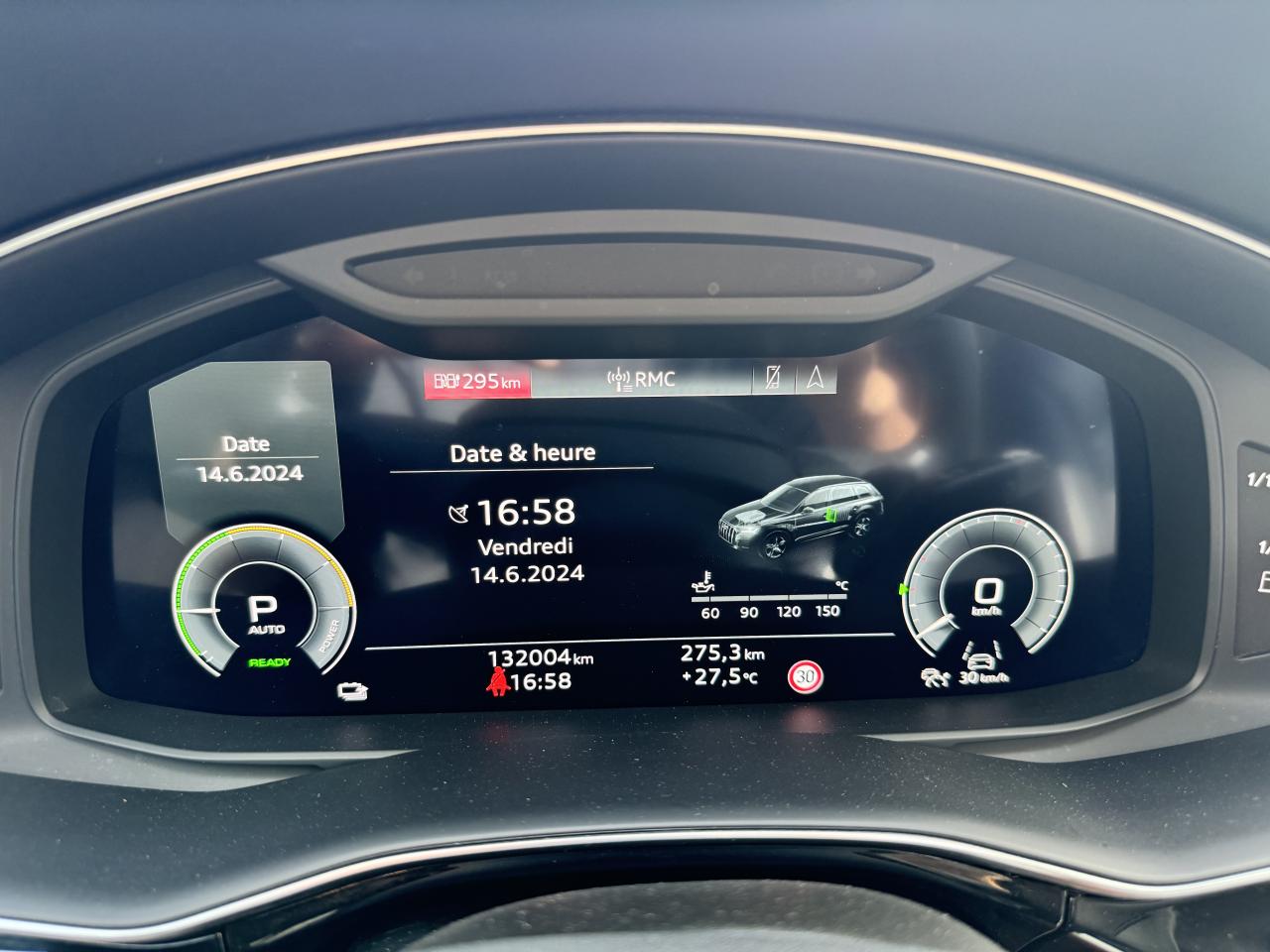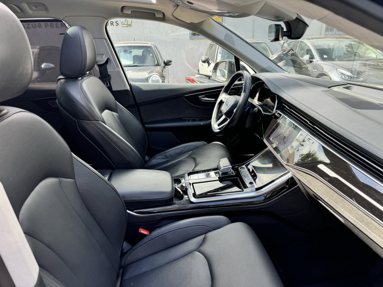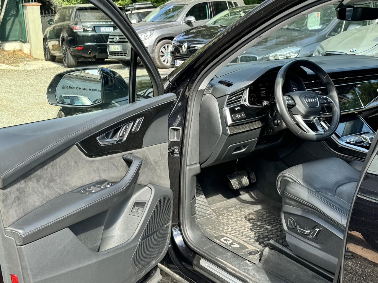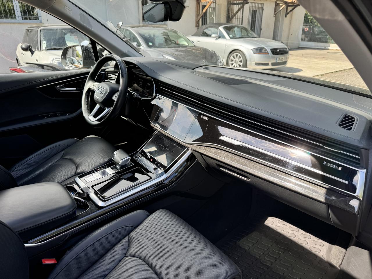 Adaptive Air SuspensionAffichage Tête Haute HUD (Head-Up Display)Airbags latéraux à l'avant et système d'airbags de têteApplications décoratives en bois de frêne Gris foncé sur le tableau de bord, les contre-portes et la console centraleAppui lombaire à 4 axes pour les sièges avant, réglage électrique, horizontal et verticalAssistant de maintien à l’arrêtAudi Drive SelectAudi parking system plus : signal acoustique et visuel d'aide au stationnement avant et arrière par pictogrammes sur l'écranAudi Phone BoxAudi virtual cockpitBang & Olufsen Premium Sound System avec son 3DBanquette arrière plusCâble électrique 16 A pour recharge en Mode 3 / Type 2 (puissance de charge maximal de 7,2kW)Caméra de reculCaméra multifonction pour système d'assistance à la conduiteClimatisation automatique confort 3 zonesDirection progressiveEclairage intérieur à l'avant et à l'arrièreFeux arrière à technologie LEDFixation pour sièges enfants ISOFIX et Top Tether pour les places arrièreHayon à ouverture automatiqueInterface BluetoothMoulures de seuil éclairées avec inserts en aluminium à l’avant et à l’arrièreNavigation MMI avec MMI touch responsePack Assistance pour la villePack Assistance RoutePack Eclairage ambiance LED multicolorePack Extérieur BrillancePack Non fumeurPeinture vernie Noir ProfondProjecteurs Audi Matrix LEDRampes de pavillon en aluminium anodiséRéception radio numériqueRégulateur et limiteur de vitesseRétroviseurs extérieurs réglables,dégivrants,rabattables électriquement avec Fonction jour/nuit automatique des deux côtés ,rabat automatique pour le rétroviseur extérieur côté passager avant (manoeuvre de stationnement) et CSellerie combinée cuir Valcona / cuir Cricket perforéSièges avant à contours individuelsSièges avant réglables électriquement avec fonction mémoire pour les deux siègesSystème audiophonique Audi: 10 Haut-parleurs dont haut-parleur central et subwoofer, amplificateur à 6 canaux, puissance totale 180 wattsSystème de localisation antivol Audi connectToit panoramique en verreTouches de commande façon verre en noir avec réponse haptique et aluminium étenduVentilation des sièges à l'avantVitrage acoustique pour les vitres latéralesVitres surteintées (Privacy glass) : Lunette arrière, vitres de portières arrière et vitres latérales arrière surteintéesVolant réglable électriquement avec réglage en hauteur et en profondeur et Dispositif automatique “easy access“Volant sport chauffant en cuir avec multifonction avec palettes de changement de vitesses