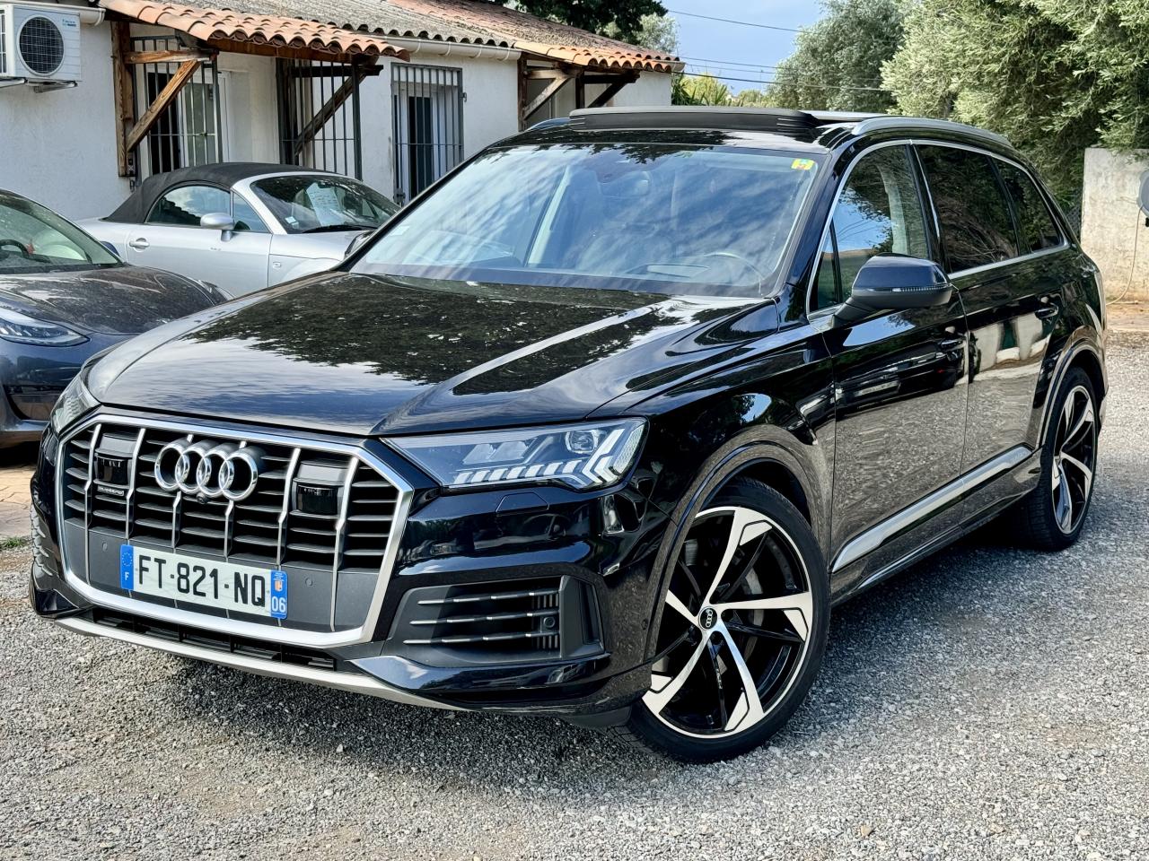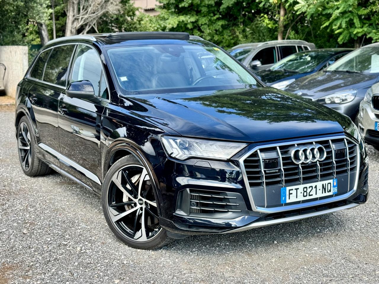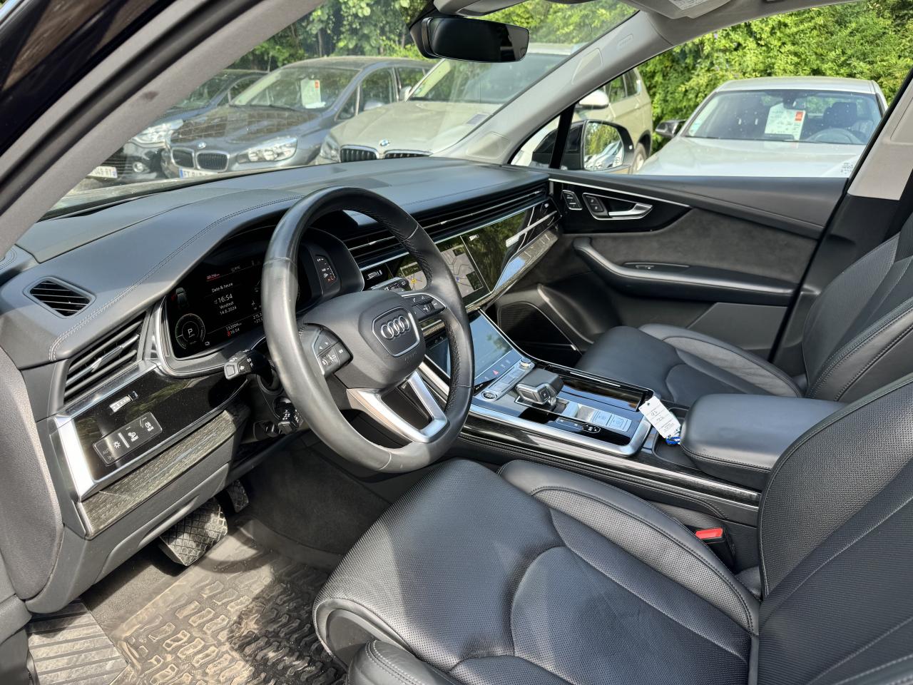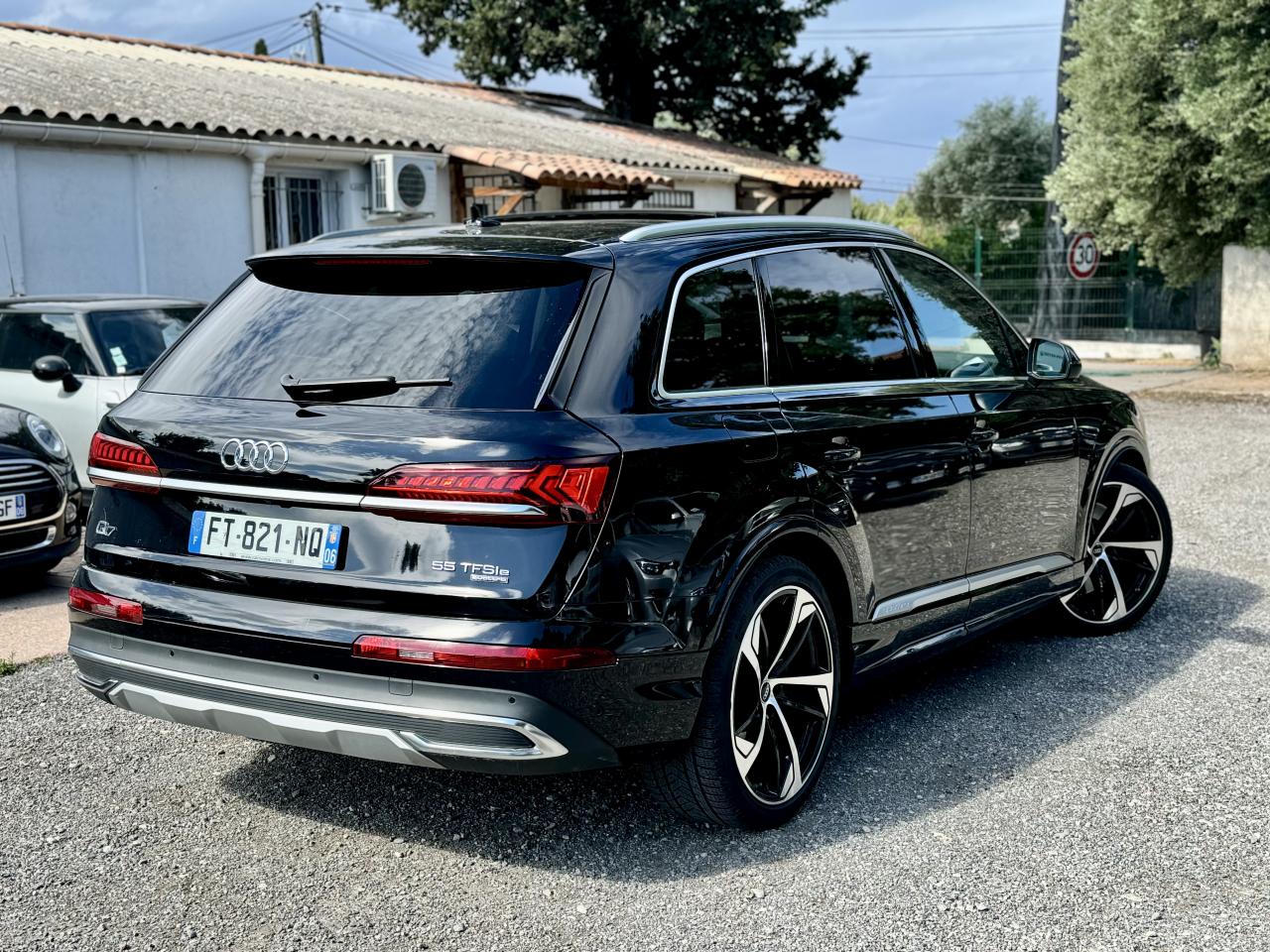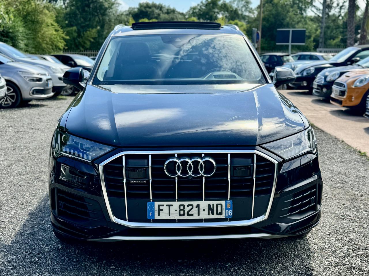 Adaptive Air SuspensionAffichage Tête Haute HUD (Head-Up Display)Airbags latéraux à l'avant et système d'airbags de têteApplications décoratives en bois de frêne Gris foncé sur le tableau de bord, les contre-portes et la console centraleAppui lombaire à 4 axes pour les sièges avant, réglage électrique, horizontal et verticalAssistant de maintien à l’arrêtAudi Drive SelectAudi parking system plus : signal acoustique et visuel d'aide au stationnement avant et arrière par pictogrammes sur l'écranAudi Phone BoxAudi virtual cockpitBang & Olufsen Premium Sound System avec son 3DBanquette arrière plusCâble électrique 16 A pour recharge en Mode 3 / Type 2 (puissance de charge maximal de 7,2kW)Caméra de reculCaméra multifonction pour système d'assistance à la conduiteClimatisation automatique confort 3 zonesDirection progressiveEclairage intérieur à l'avant et à l'arrièreFeux arrière à technologie LEDFixation pour sièges enfants ISOFIX et Top Tether pour les places arrièreHayon à ouverture automatiqueInterface BluetoothMoulures de seuil éclairées avec inserts en aluminium à l’avant et à l’arrièreNavigation MMI avec MMI touch responsePack Assistance pour la villePack Assistance RoutePack Eclairage ambiance LED multicolorePack Extérieur BrillancePack Non fumeurPeinture vernie Noir ProfondProjecteurs Audi Matrix LEDRampes de pavillon en aluminium anodiséRéception radio numériqueRégulateur et limiteur de vitesseRétroviseurs extérieurs réglables,dégivrants,rabattables électriquement avec Fonction jour/nuit automatique des deux côtés ,rabat automatique pour le rétroviseur extérieur côté passager avant (manoeuvre de stationnement) et CSellerie combinée cuir Valcona / cuir Cricket perforéSièges avant à contours individuelsSièges avant réglables électriquement avec fonction mémoire pour les deux siègesSystème audiophonique Audi: 10 Haut-parleurs dont haut-parleur central et subwoofer, amplificateur à 6 canaux, puissance totale 180 wattsSystème de localisation antivol Audi connectToit panoramique en verreTouches de commande façon verre en noir avec réponse haptique et aluminium étenduVentilation des sièges à l'avantVitrage acoustique pour les vitres latéralesVitres surteintées (Privacy glass) : Lunette arrière, vitres de portières arrière et vitres latérales arrière surteintéesVolant réglable électriquement avec réglage en hauteur et en profondeur et Dispositif automatique “easy access“Volant sport chauffant en cuir avec multifonction avec palettes de changement de vitesses