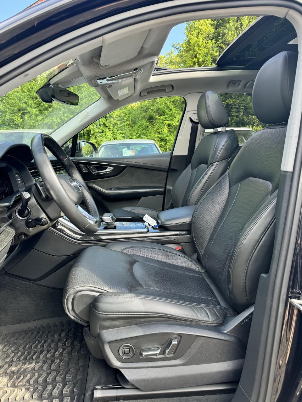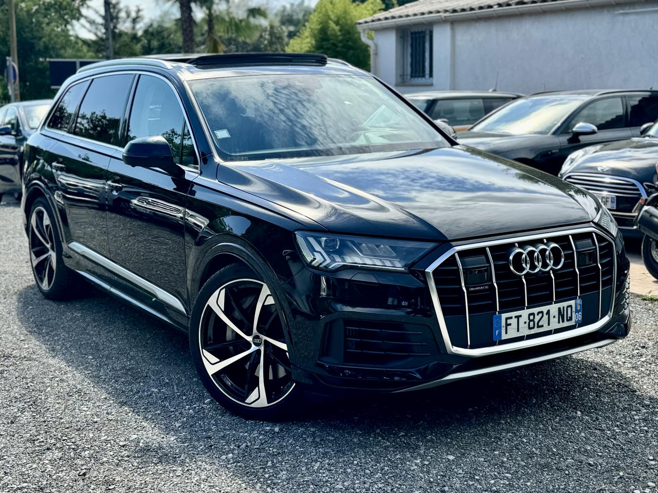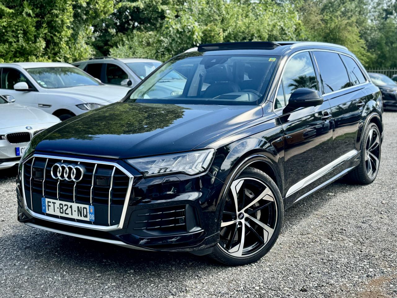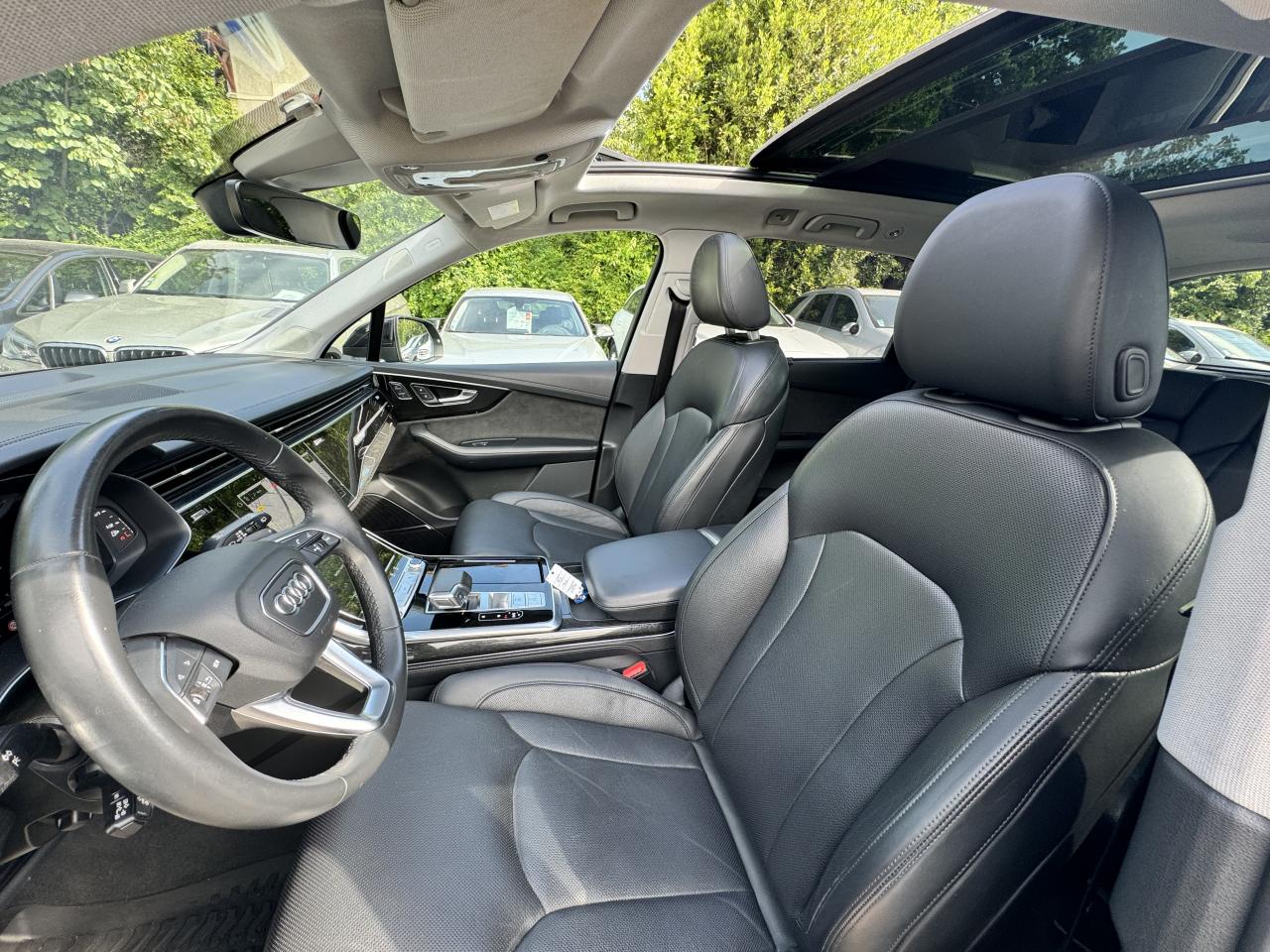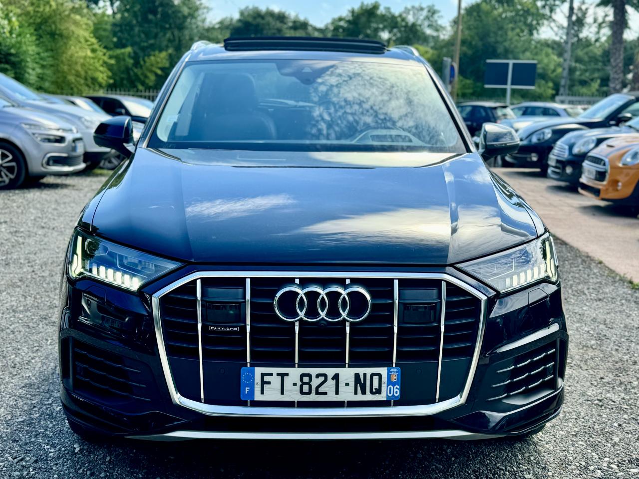 Adaptive Air SuspensionAffichage Tête Haute HUD (Head-Up Display)Airbags latéraux à l'avant et système d'airbags de têteApplications décoratives en bois de frêne Gris foncé sur le tableau de bord, les contre-portes et la console centraleAppui lombaire à 4 axes pour les sièges avant, réglage électrique, horizontal et verticalAssistant de maintien à l’arrêtAudi Drive SelectAudi parking system plus : signal acoustique et visuel d'aide au stationnement avant et arrière par pictogrammes sur l'écranAudi Phone BoxAudi virtual cockpitBang & Olufsen Premium Sound System avec son 3DBanquette arrière plusCâble électrique 16 A pour recharge en Mode 3 / Type 2 (puissance de charge maximal de 7,2kW)Caméra de reculCaméra multifonction pour système d'assistance à la conduiteClimatisation automatique confort 3 zonesDirection progressiveEclairage intérieur à l'avant et à l'arrièreFeux arrière à technologie LEDFixation pour sièges enfants ISOFIX et Top Tether pour les places arrièreHayon à ouverture automatiqueInterface BluetoothMoulures de seuil éclairées avec inserts en aluminium à l’avant et à l’arrièreNavigation MMI avec MMI touch responsePack Assistance pour la villePack Assistance RoutePack Eclairage ambiance LED multicolorePack Extérieur BrillancePack Non fumeurPeinture vernie Noir ProfondProjecteurs Audi Matrix LEDRampes de pavillon en aluminium anodiséRéception radio numériqueRégulateur et limiteur de vitesseRétroviseurs extérieurs réglables,dégivrants,rabattables électriquement avec Fonction jour/nuit automatique des deux côtés ,rabat automatique pour le rétroviseur extérieur côté passager avant (manoeuvre de stationnement) et CSellerie combinée cuir Valcona / cuir Cricket perforéSièges avant à contours individuelsSièges avant réglables électriquement avec fonction mémoire pour les deux siègesSystème audiophonique Audi: 10 Haut-parleurs dont haut-parleur central et subwoofer, amplificateur à 6 canaux, puissance totale 180 wattsSystème de localisation antivol Audi connectToit panoramique en verreTouches de commande façon verre en noir avec réponse haptique et aluminium étenduVentilation des sièges à l'avantVitrage acoustique pour les vitres latéralesVitres surteintées (Privacy glass) : Lunette arrière, vitres de portières arrière et vitres latérales arrière surteintéesVolant réglable électriquement avec réglage en hauteur et en profondeur et Dispositif automatique “easy access“Volant sport chauffant en cuir avec multifonction avec palettes de changement de vitesses