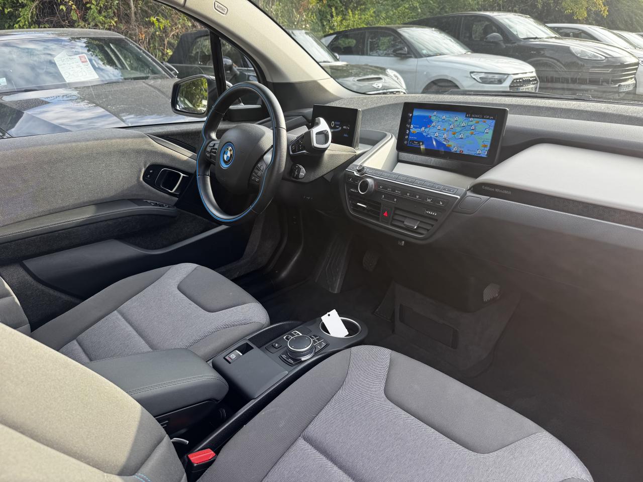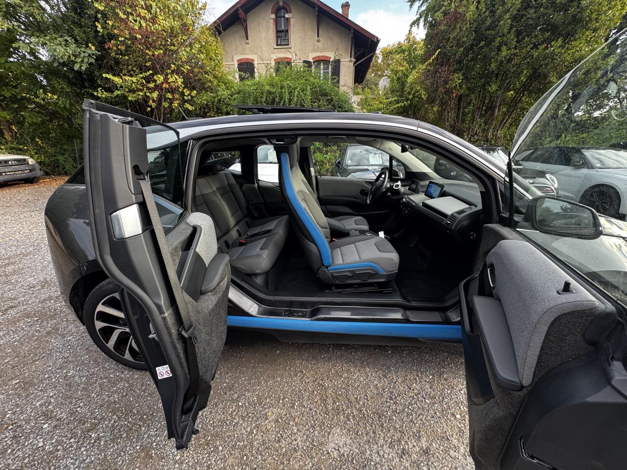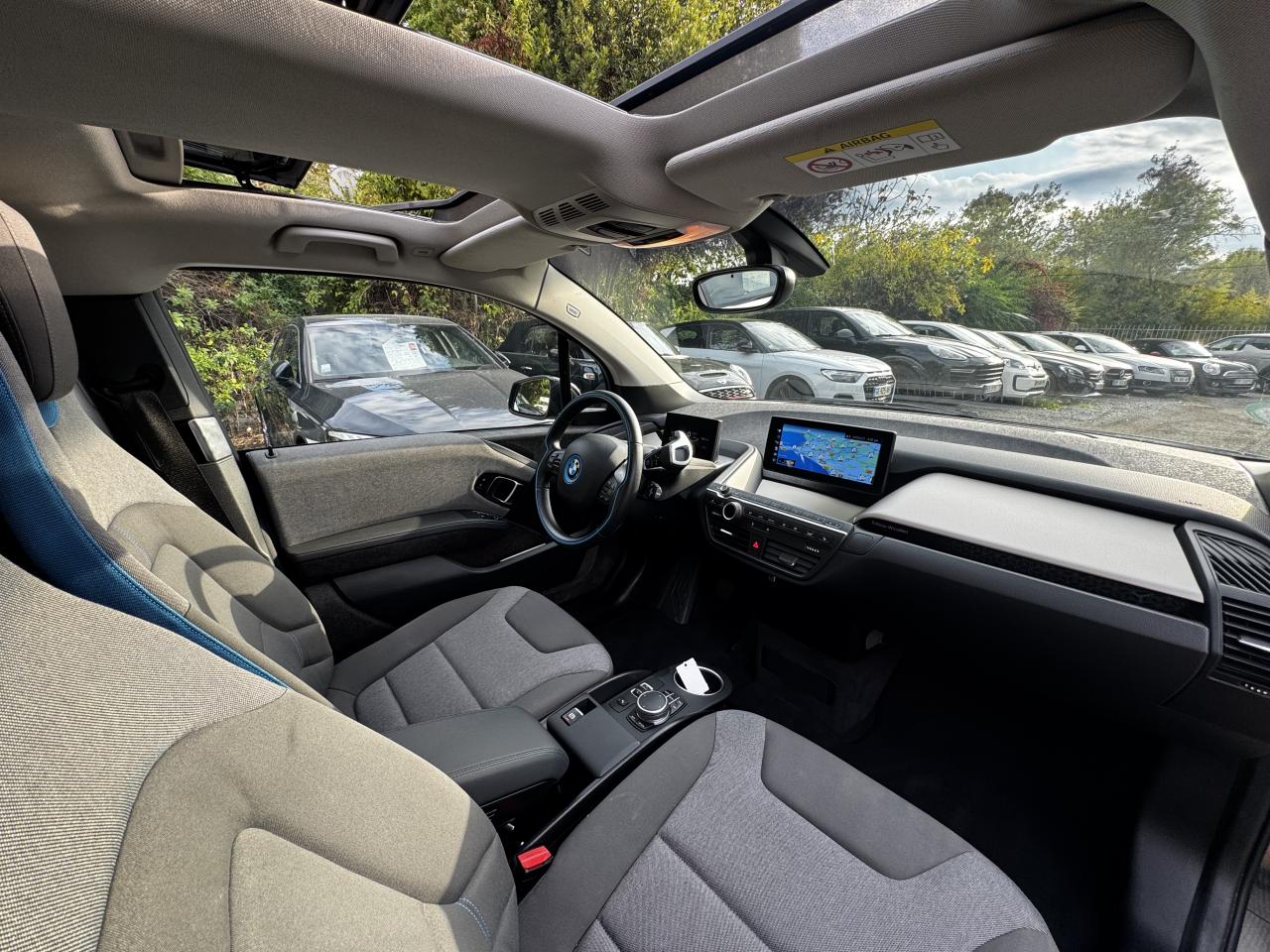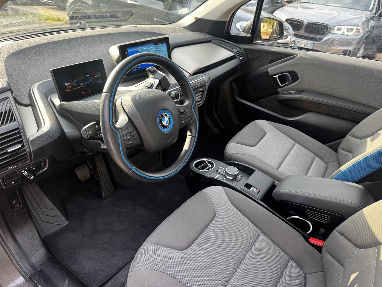 Accès ConfortAccoudoir central avant avec rangement intégréAirbags latéraux avantAntenne de toit en "aileron de requin" et antenne courteAppel d'Urgence IntelligentAvertisseur sonore pour piétonsBadge en aluminium sous les pieds de rétroviseursBadges apposés au niveau du hayon, «i3» à droiteBaguette chromée courant sur toute la largeur arrièreBatteries lithium-ion hautes performances, capacité minimum de 70 % garantie 8 ans ou 160 000 kmBoîte de vitesses automatique avec sélecteur derrière le volantCâble de recharge standard sur prise domestique 230 VCarnet d’entretien électroniqueCarrosserie bicolore «Black Belt» : capot avant, rétroviseurs extérieurs, toit et hayon arrière de couleur noireClimatisation automatique, avec filtre à charbon actif, fonction de recyclage automatique de l'air (AUC) et touche "Max A/C" permettant de sélectionner la puissance de refroidissement maximaleDémarrage sans clé via le bouton de démarrage Start/Stop avec contour chroméDirection électrique à assistance variable en fonction de la vitesse ServotronicEclairage plafonnier soft-on/soft-off et éclairage du coffreEsprit Intérieur LoftFeux de stop dynamiquesFonctions "Ma BMW à distance"Frein de parking électriqueInterface Bluetooth pour téléphone portable (mains-libres)Ordinateur de bord avec Check-Control et indicateur de température extérieureOuverture des portes antagoniste, sans montant centralPack Advanced ParkingPrise de chargement illuminée à technologie LEDProjecteurs Full-LED (feux de jour, feux de croisement, feux de route et clignotants à LED)Régulateur de vitesse avec fonction freinage (maintien de la vitesse en descente)Rétroviseurs extérieurs électriquesRétroviseurs extérieurs rabattables électriquement et électrochromatique du côté conducteurServices eDrive ConnectedSièges avant chauffantsSystème de fixation ISOFIX aux places latérales arrièreSystèmes de navigation ProfessionalTouches multifonctions sur le volantTrain arrière multibrasTroisième feu stop à LEDTuner DABVerrouillage centralisé avec télécommandeVitres électriques avant avec commande par impulsion et protection anti-pincementVolant 2 branches réglable en hauteur et en profondeur