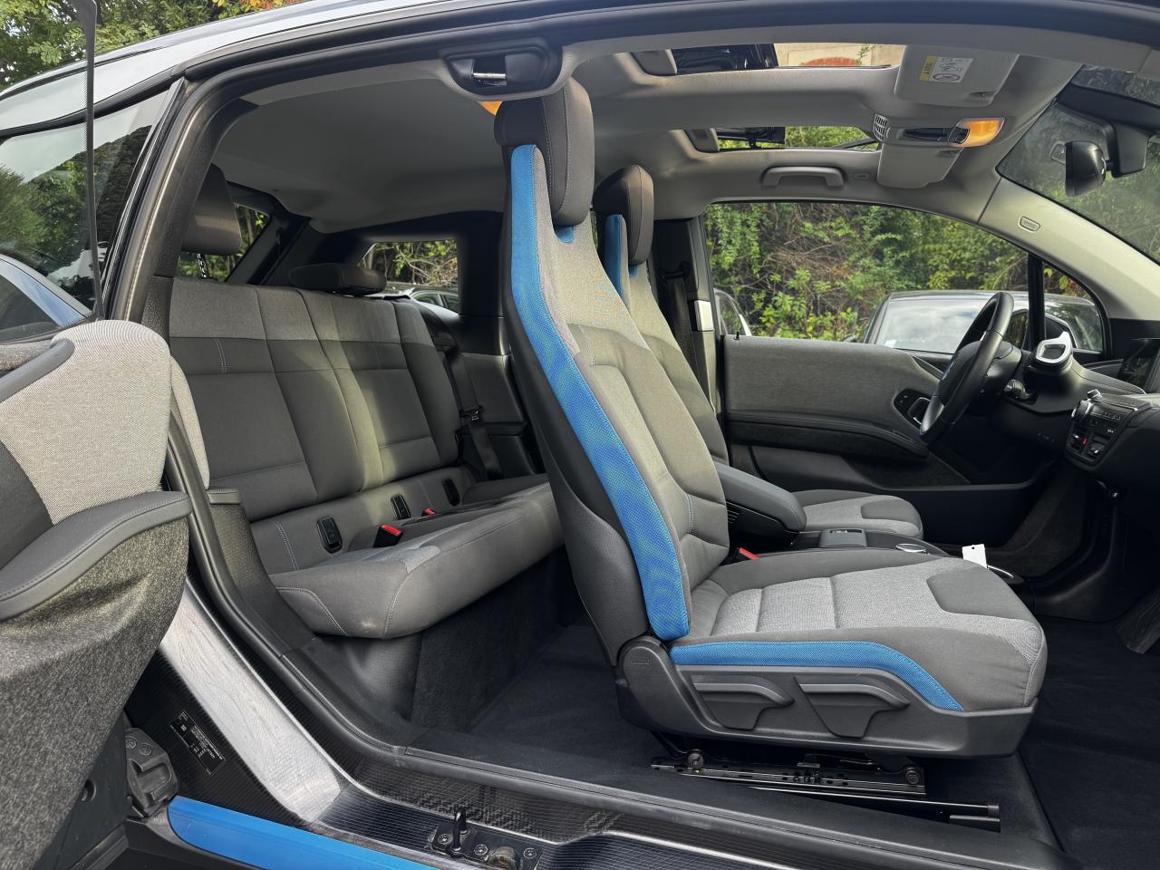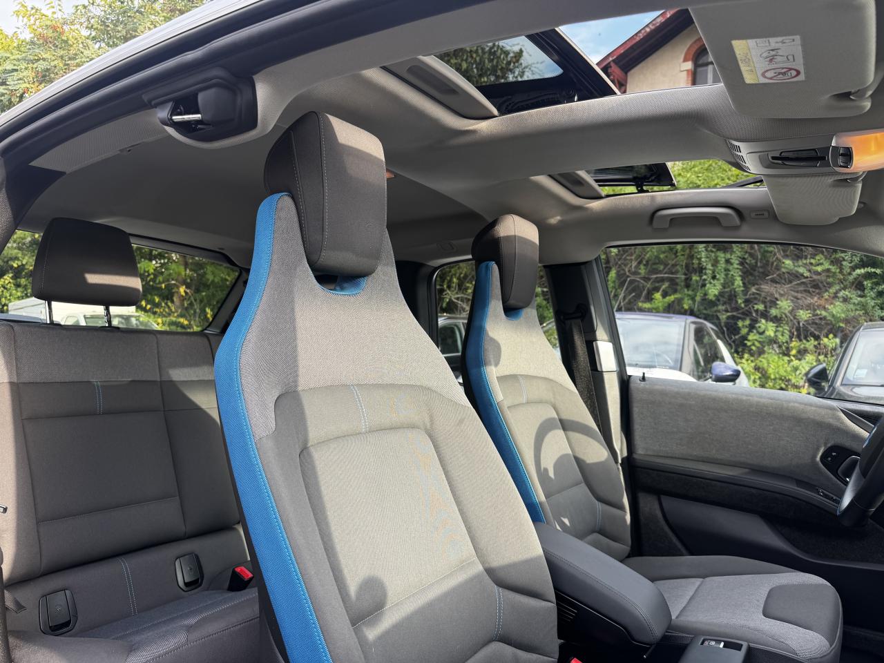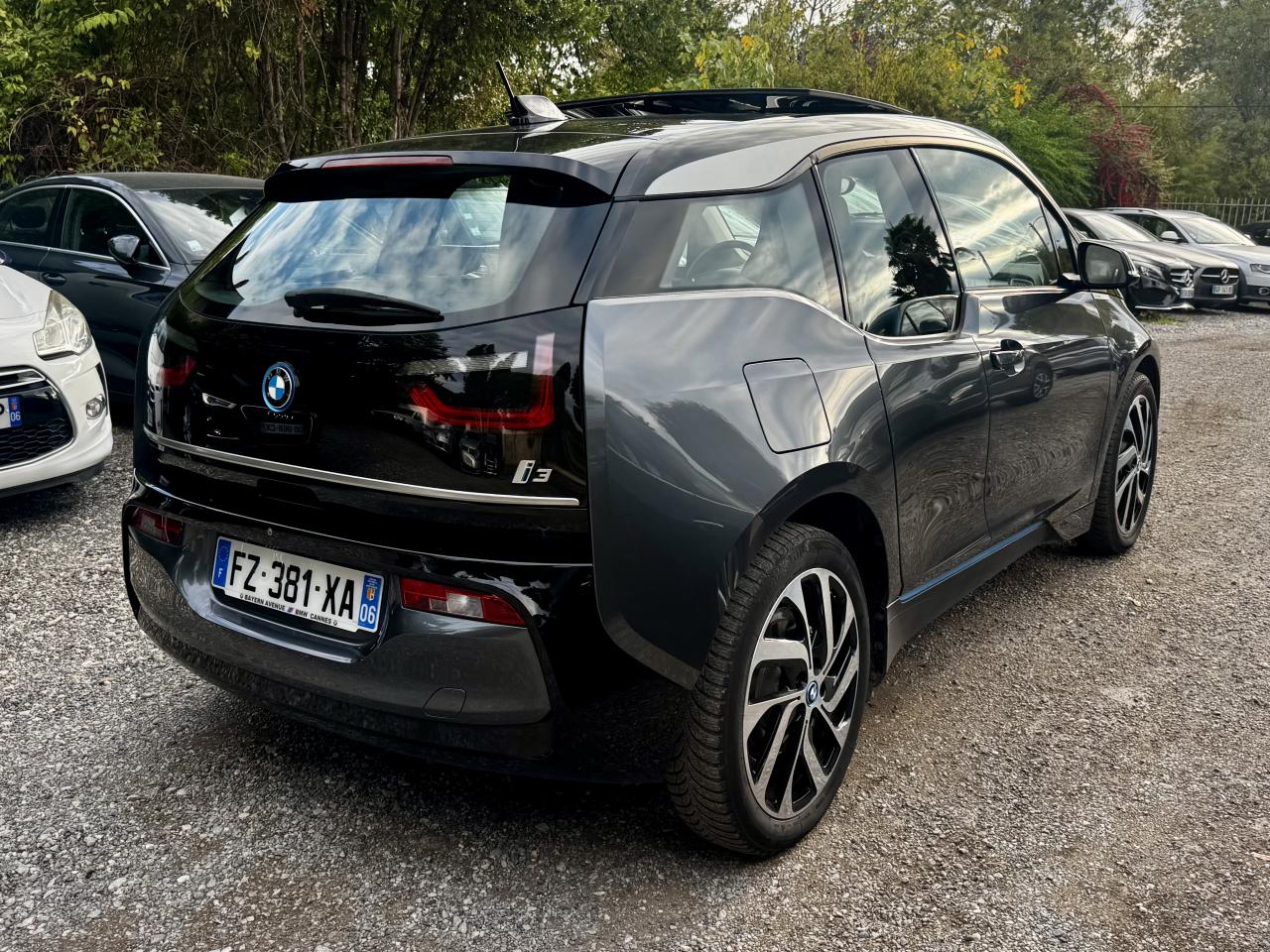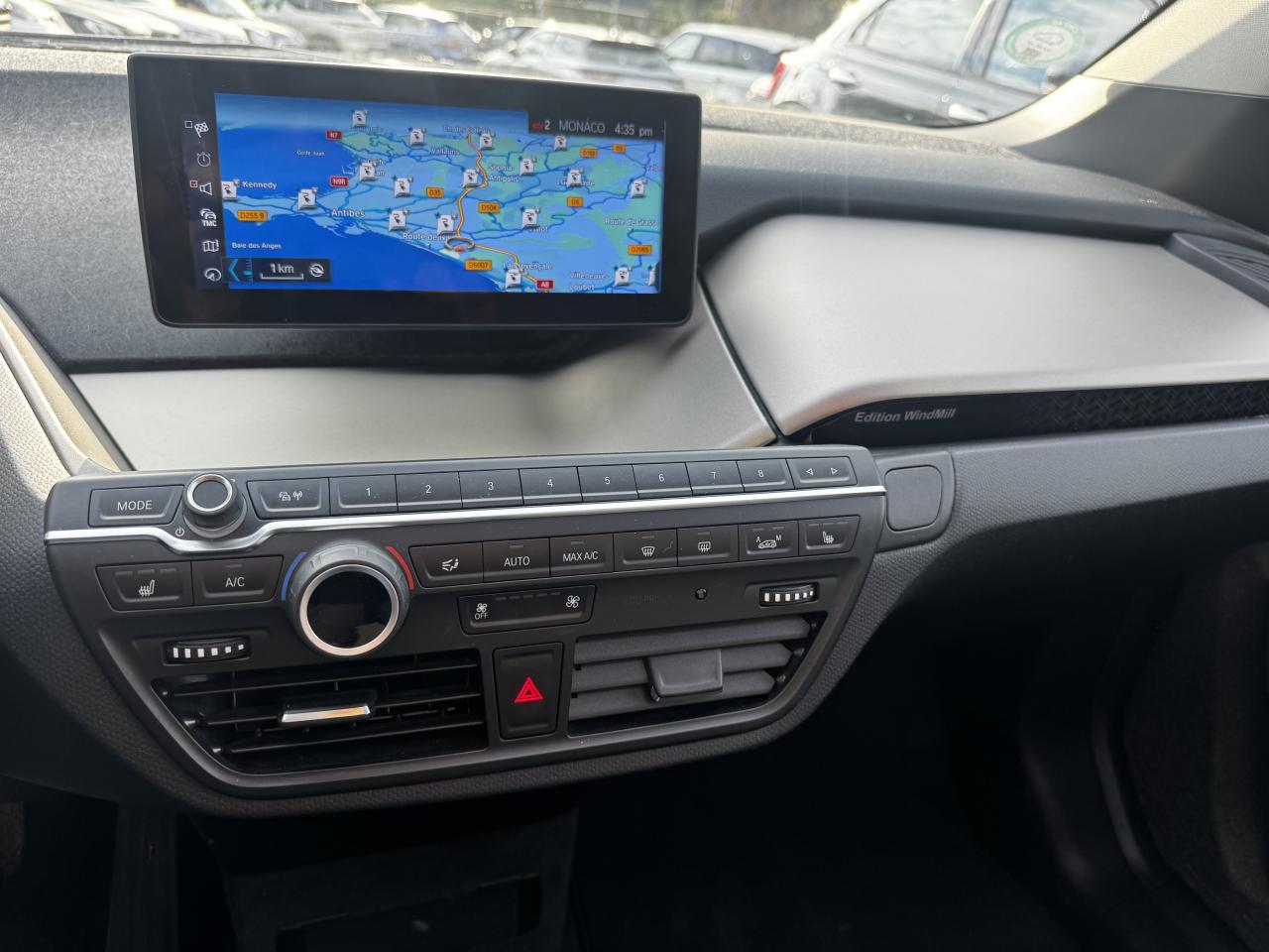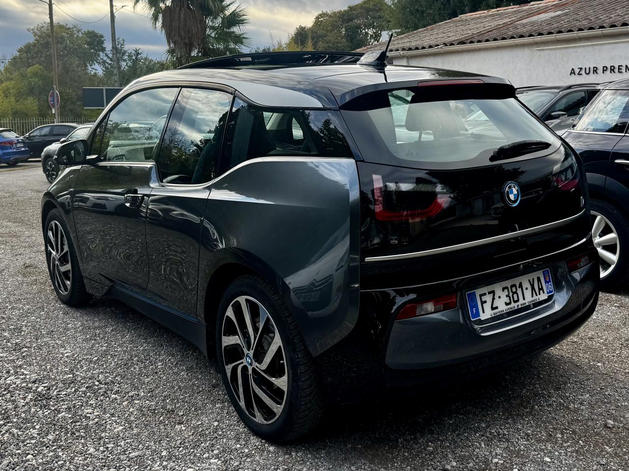 Accès ConfortAccoudoir central avant avec rangement intégréAirbags latéraux avantAntenne de toit en "aileron de requin" et antenne courteAppel d'Urgence IntelligentAvertisseur sonore pour piétonsBadge en aluminium sous les pieds de rétroviseursBadges apposés au niveau du hayon, «i3» à droiteBaguette chromée courant sur toute la largeur arrièreBatteries lithium-ion hautes performances, capacité minimum de 70 % garantie 8 ans ou 160 000 kmBoîte de vitesses automatique avec sélecteur derrière le volantCâble de recharge standard sur prise domestique 230 VCarnet d’entretien électroniqueCarrosserie bicolore «Black Belt» : capot avant, rétroviseurs extérieurs, toit et hayon arrière de couleur noireClimatisation automatique, avec filtre à charbon actif, fonction de recyclage automatique de l'air (AUC) et touche "Max A/C" permettant de sélectionner la puissance de refroidissement maximaleDémarrage sans clé via le bouton de démarrage Start/Stop avec contour chroméDirection électrique à assistance variable en fonction de la vitesse ServotronicEclairage plafonnier soft-on/soft-off et éclairage du coffreEsprit Intérieur LoftFeux de stop dynamiquesFonctions "Ma BMW à distance"Frein de parking électriqueInterface Bluetooth pour téléphone portable (mains-libres)Ordinateur de bord avec Check-Control et indicateur de température extérieureOuverture des portes antagoniste, sans montant centralPack Advanced ParkingPrise de chargement illuminée à technologie LEDProjecteurs Full-LED (feux de jour, feux de croisement, feux de route et clignotants à LED)Régulateur de vitesse avec fonction freinage (maintien de la vitesse en descente)Rétroviseurs extérieurs électriquesRétroviseurs extérieurs rabattables électriquement et électrochromatique du côté conducteurServices eDrive ConnectedSièges avant chauffantsSystème de fixation ISOFIX aux places latérales arrièreSystèmes de navigation ProfessionalTouches multifonctions sur le volantTrain arrière multibrasTroisième feu stop à LEDTuner DABVerrouillage centralisé avec télécommandeVitres électriques avant avec commande par impulsion et protection anti-pincementVolant 2 branches réglable en hauteur et en profondeur