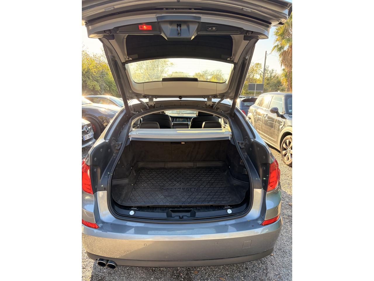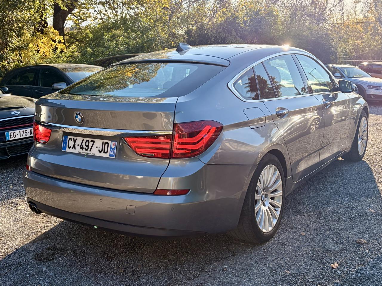 "Controller" iDrive avec touches d'accès directAccoudoir central arrièreAirbags conducteur et passager (déconnectable) avant et latéraux avantAllumage automatique des projecteursAntenne radio intégrée à la lunette arrièreAntidémarrage EWS (IV) clés SRAAppuie-tête actifs à l'avantAssistance au freinage d'urgenceAssistance électrique de déverrouillage de coffreAutoradio BMW Professional avec lecteur compatible MP3Banquette arrière 3 places, coulissante 2/3-1/3, rabattable (40:20:40) avec paroi de séparation du coffre amovibleBouton Start/Stop avec démarrage sans manipulation de la cléBuses de lave-glace chauffantesCalandre avec contour et barres longitudinales chroméesCapteur d'impactCapteur de pluieCeintures de sécurité avec prétensionneur pyrotechnique (à l'avant) et limiteur de tension (à l'avant et aux places arrières latérales)Chrome-Line extérieurClimatisation automatique 2 zones à fonctionnalités étenduesConnectivité étendue pour lecteur audio de téléphone portable en relation avec BMW AppsConstruction allégée intelligenteContrôle de freinage en courbe CBCContrôle Dynamique de la Stabilité (DSC+)Détection de l'occupation du siège passager avantDirection à assistance électriqueDirection Servotronic à assistance variable en fonction de la vitesseEclairage d'accompagnement (extinction retardée des projecteurs)Eclairage d’ambianceEclairage de bienvenue actionnable par télécommandeEcrous antivolFermeture assistée du hayon Soft CloseFeux de stop dynamiques à technologie DELFiltre à particules Diesel sans entretienFixations ISOFIX pour sièges enfant à l'arrièreFonction d'arrêt et de redémarrage automatique du moteurFrein de parking électrique avec fonction "Automatic Hold"Hayon à double ouvertureIndicateur de maintenanceIndicateur de perte de pression des pneumatiques (RPA)Inserts décoratifs Argent satiné matInterface Bluetooth pour téléphone portable avec port audio USBKit éclairage et kit fumeurLave-pharesManuel d'utilisation intégréMode ECO PRO sur le sélecteur de mode de conduiteMotorisations BMW TwinPower TurboNavigation multimédia ProfessionalOrdinateur de bordPare-chocs auto-régénérants jusqu'à 4 km/hPare-soleil avec miroir de courtoisie éclairéPortes arrière avec sécurité enfantPréparation BMW ConnectedDrive et interface Bluetooth pour téléphone portable avec port audio USBPrise AUX-INPrises 12V, 5 réparties dans l'habitacleProjecteurs antibrouillardProjecteurs bi-xénonProtection contre les erreurs de ravitaillementQuatre anneaux lumineux à technologie DEL pour éclairage diurneRéglages électriques de la hauteur d'assise et de l'inclinaison du dossier des sièges avantRégulateur de vitesse avec fonction freinage et limiteur de vitesseRétroviseur intérieur électrochromeRétroviseurs extérieurs électriques et dégivrantsRétroviseurs extérieurs électrochromes rabattables électriquementSeuils de portes rétro-éclairés BMW Individual en relation avec Sellerie cuir Merino fine fleur BMW Individual (ZA)Sièges avant électriques à mémoires conducteurSortie d'échappement double à gauche chroméeSuspension arrière pneumatique avec correcteur d'assietteSystème d'aide au stationnement PDC avant et arrièreSystème de récupération de l'énergie au freinage avec indicateur dans le combiné d'instrumentationSystème stéréo 6 hauts-parleurs (4 x médiums, 2 x graves)Systèmes de navigation BusinessToit ouvrant panoramique en verre coulissant et entrebâillable électriquementTrain avant à double articulation et train arrière intégral V en aluminiumVitrage calorifuge vertVitres avant et arrière électriques à impulsion avec système ant-ipincementVolant Sport gainé cuir