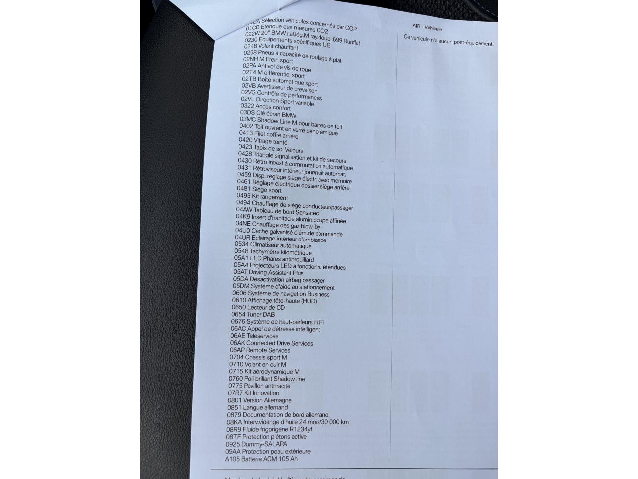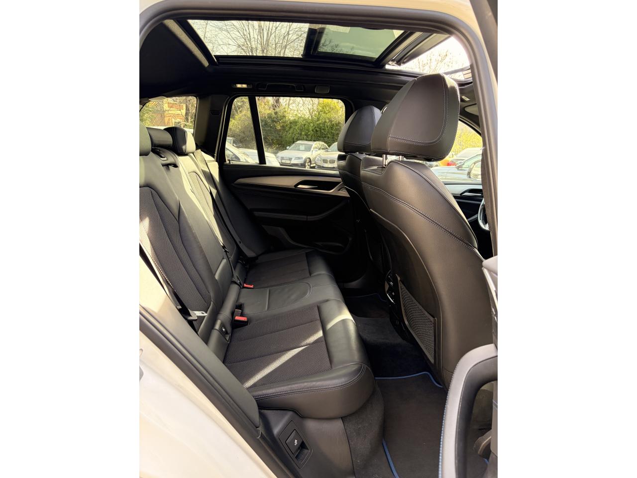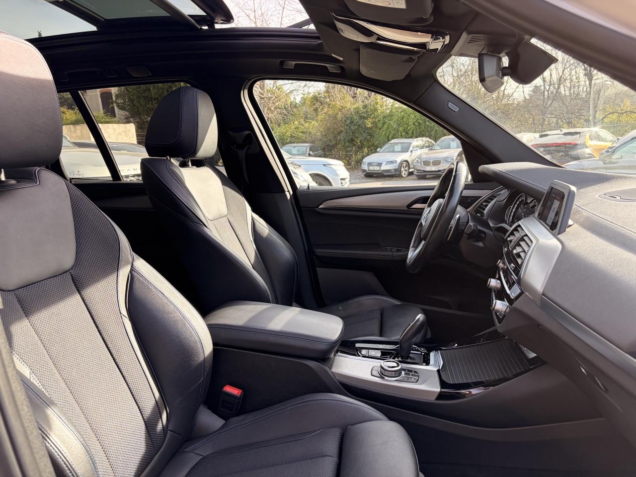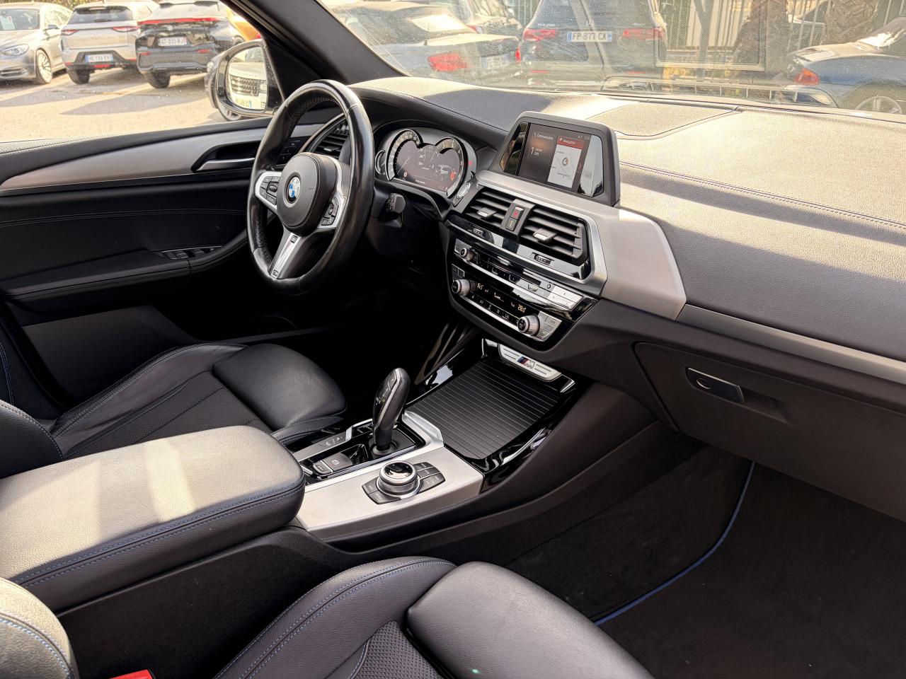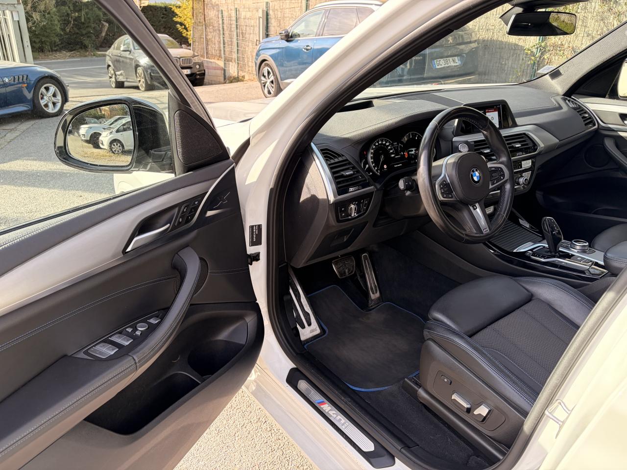 Accoudoir central avant et arrièreAffichage BMW EfficientDynamics dans le cadran d'instrumentationAirbags de tête avant/arrièreAntenne de toit « aileron de requin »Anti-démarrage électronique EWS IVAppel d'Urgence Intelligent (durée de vie de la voiture)Appui lombaire ajustableAttention Assist : système de détection de somnolenceAutoradio BMW Professional, 8 touches de favoris programmables et "Controller" iDrive avec touches de raccourci, compatibilité MP3, double Tuner RDS FM, info-route (TP)Banquette arrière rabattable 40/20/40Calandre avec doubles barreaux mobiles "Active Air Stream"Ciel de pavillon anthraciteClimatisation automatique 3 zonesCommande électrique du hayonConstruction allégée intelligente BMW EfficientLightweight Carbon Core, aluminium et acierDéverrouillage électrique du hayon via la poignée ou la clé radiocommandéeDifférentiel M SportDiffuseurs aérodynamiques avant "Air Curtain"Diffuseurs aérodynamiques latéraux "Air Breather"Direction DirectDrive à démultiplication variableEclairage d’ambianceEnjoliveurs d'échappement de forme trapézoïdale à gauche et à droite, en chrome noirFeux de stop dynamiques clignotantsFilet de séparation dans le coffreFonction d'arrêt et de redémarrage automatique du moteurFrein de parking électromécaniqueFreins Sport M étriers bleuInserts décoratifs Aluminium Rhombicle avec baguette d'accentuation chrome brillant perléJantes en alliage léger 20" M style 699 M à rayons doubles Kit EclairageLecteur CDPack Advanced Full LEDPack Aérodynamique MPack BMW ConnectedDrivePerformance ControlPlanche de bord SensatecPoignées de portes couleur carrosserieProjecteurs antibrouillard à LEDRadars de stationnement avant et arrière PDCRails de toit noir brillant Shadow line BMW IndividualRétroviseurs extérieurs électrochromes rabattables électriquementSélecteur de mode de conduite - 3 modes : "ECO PRO", "Confort" et "Sport"Sellerie Tissu-cuir 'Vernasca' Schwarz avec sûrpiqures contrastées bleuesServices ConnectedDrive (3ans)Seuils de porte avec désignation "X3 M40i"Shadow Line brillant BMW IndividualSièges Advanced pour conducteur et passager avantSièges avant électriques à mémoires conducteurSièges Sport à l'avantSuspension DirectDriveSuspension Sport MSystème de fixation ISOFIX aux places arrière latéralesSystème de manoeuvres entièrement automatiques "Park Assist"Tapis de sol en veloursTeinte de carrosserie "Alpinweiss" unieVariable Sport SteeringVolant M gainé cuirVolant réglable en hauteur et en profondeur