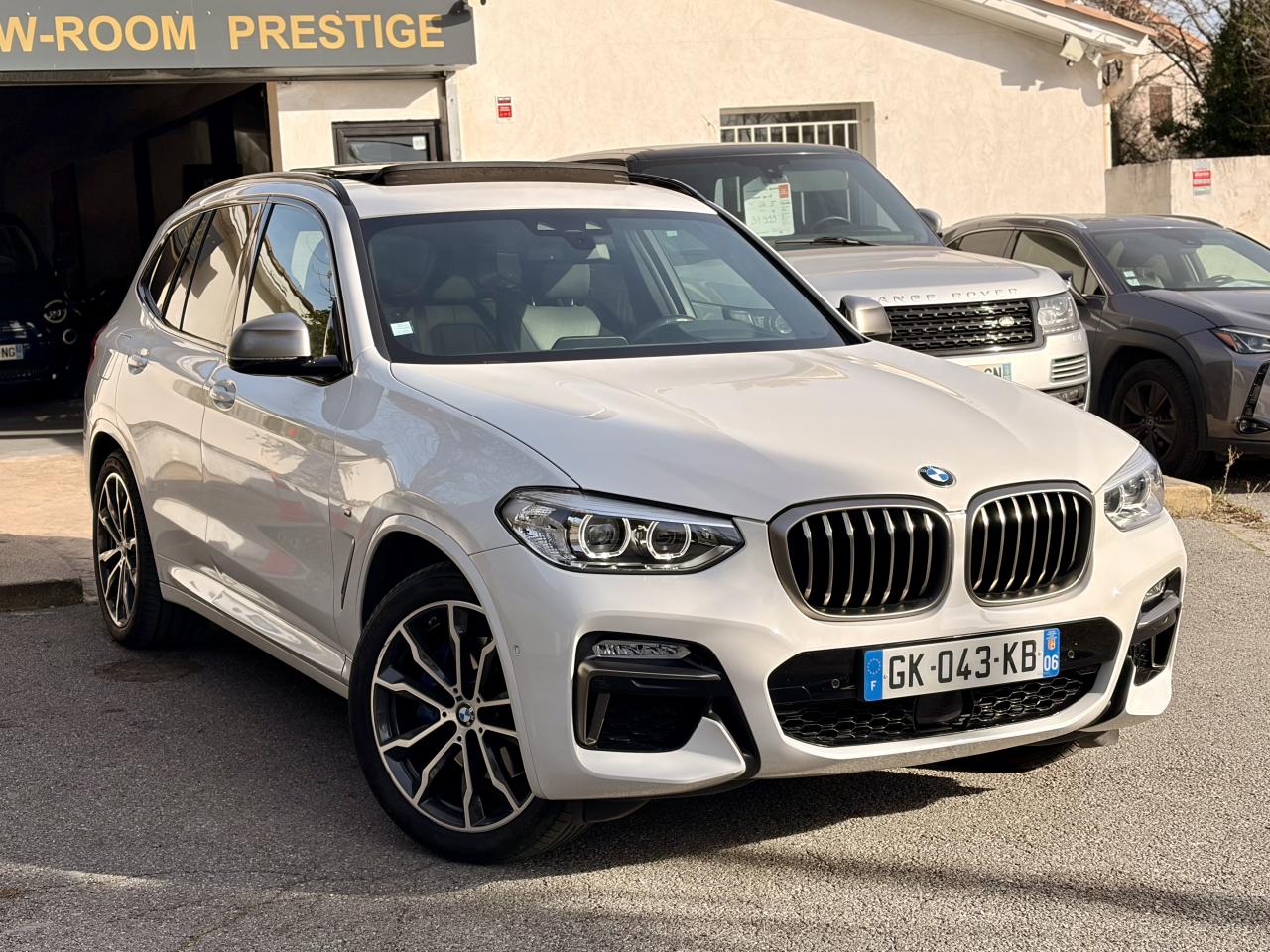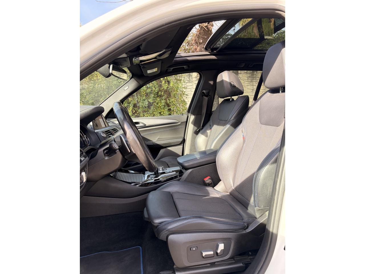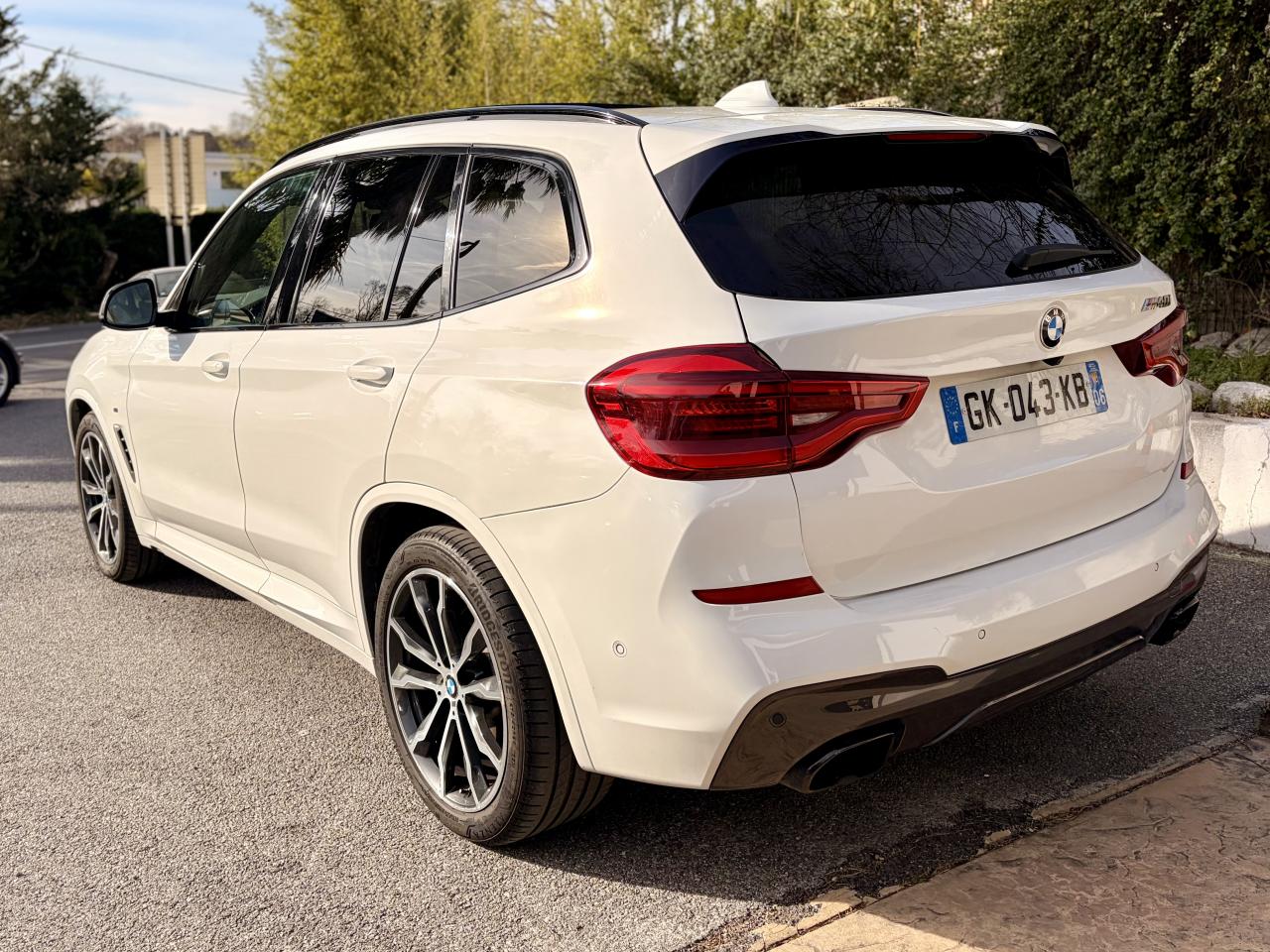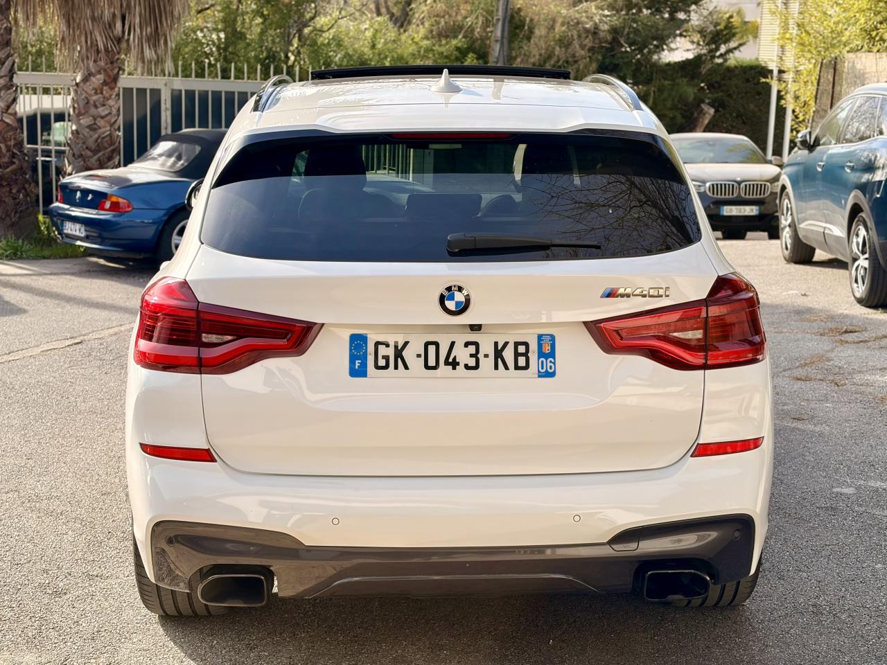 Accoudoir central avant et arrièreAffichage BMW EfficientDynamics dans le cadran d'instrumentationAirbags de tête avant/arrièreAntenne de toit « aileron de requin »Anti-démarrage électronique EWS IVAppel d'Urgence Intelligent (durée de vie de la voiture)Appui lombaire ajustableAttention Assist : système de détection de somnolenceAutoradio BMW Professional, 8 touches de favoris programmables et "Controller" iDrive avec touches de raccourci, compatibilité MP3, double Tuner RDS FM, info-route (TP)Banquette arrière rabattable 40/20/40Calandre avec doubles barreaux mobiles "Active Air Stream"Ciel de pavillon anthraciteClimatisation automatique 3 zonesCommande électrique du hayonConstruction allégée intelligente BMW EfficientLightweight Carbon Core, aluminium et acierDéverrouillage électrique du hayon via la poignée ou la clé radiocommandéeDifférentiel M SportDiffuseurs aérodynamiques avant "Air Curtain"Diffuseurs aérodynamiques latéraux "Air Breather"Direction DirectDrive à démultiplication variableEclairage d’ambianceEnjoliveurs d'échappement de forme trapézoïdale à gauche et à droite, en chrome noirFeux de stop dynamiques clignotantsFilet de séparation dans le coffreFonction d'arrêt et de redémarrage automatique du moteurFrein de parking électromécaniqueFreins Sport M étriers bleuInserts décoratifs Aluminium Rhombicle avec baguette d'accentuation chrome brillant perléJantes en alliage léger 20" M style 699 M à rayons doubles Kit EclairageLecteur CDPack Advanced Full LEDPack Aérodynamique MPack BMW ConnectedDrivePerformance ControlPlanche de bord SensatecPoignées de portes couleur carrosserieProjecteurs antibrouillard à LEDRadars de stationnement avant et arrière PDCRails de toit noir brillant Shadow line BMW IndividualRétroviseurs extérieurs électrochromes rabattables électriquementSélecteur de mode de conduite - 3 modes : "ECO PRO", "Confort" et "Sport"Sellerie Tissu-cuir 'Vernasca' Schwarz avec sûrpiqures contrastées bleuesServices ConnectedDrive (3ans)Seuils de porte avec désignation "X3 M40i"Shadow Line brillant BMW IndividualSièges Advanced pour conducteur et passager avantSièges avant électriques à mémoires conducteurSièges Sport à l'avantSuspension DirectDriveSuspension Sport MSystème de fixation ISOFIX aux places arrière latéralesSystème de manoeuvres entièrement automatiques "Park Assist"Tapis de sol en veloursTeinte de carrosserie "Alpinweiss" unieVariable Sport SteeringVolant M gainé cuirVolant réglable en hauteur et en profondeur