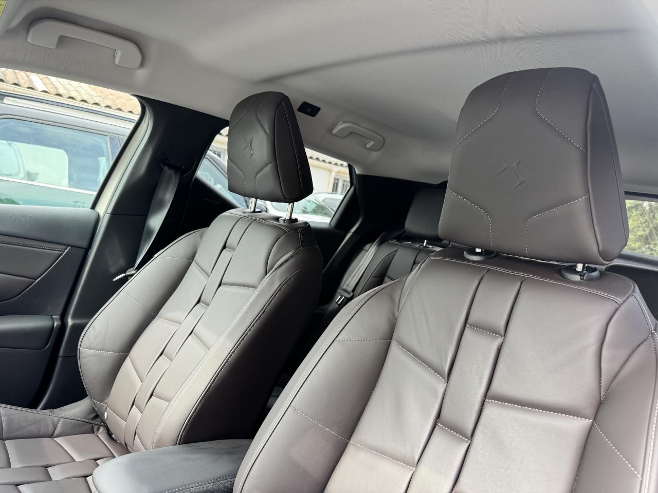 ABS avec répartiteur électronique de freinage (REF) et aide au freinage d'urgence (AFU)Accès et démarrage mains libres ProximityAccoudoir central avantAide au démarrage en côteAide au stationnement arrièreAide au stationnement avant, 360 VISION et surveillance d'angles mortsAirbags frontaux conducteur et passager (déconnectable côté passager)Airbags latéraux avant / arrièreAlerte Active de Franchissement Involontaire de Ligne (AAFIL)Allumage automatique des projecteursAndroid Auto et Apple Carplay sans filBanquette AR 1/3 2/3Base de rétroviseurs extérieurs en noir brillantBoitiers de rétroviseurs extérieurs noir brillantCalandre DS Wings chroméeCentre de roue NoirChargeur sans fil pour SmartphoneClimatisation automatiqueCombiné de bord numériqueContrôle dynamique de stabilité (ESP) avec antipatinage des roues (ASR)Détection de sous-gonflage des pneumatiquesDS IRIS System avec Navigation 3D ConnectéeDS Sensorial DriveEclairage à LED au niveau des piedsEclairage d'accueil et d'accompagnementEcran tactile capacitif 10,3’’ HDEnjoliveurs sous feux arrière Noir BrillantEssuie-glace à déclenchement automatiqueFeux arrière à LEDFixations Isofix pour siège passager avant et places latérales arrièreFrein de stationnement électrique automatiqueFreinage d'urgence automatique piloté par caméraGrille de calandre Noir brillant avec pampilles chromésJantes alliage 18'' NICEJonc supérieur de volet Noir brillant avec lettrage 'DS Automobiles en acier inoxydableLève-vitres avant et arrière électriques, séquentiel et anti-pincement coté conducteurLogo DS chromé sur la calandreMirror Screen sans fil via WifiMonogramme extérieur Etoile sur le capotMonogrammes arrière chroméPack Connect PLUS pour 3 ansPalettes au volantPare-brise teinté et acoustiquePare-soleil avec miroir occultable et éclairage à LED côtés conducteur et passagerPoches aumônière au dos des sièges avantPoignées de portes affleurantesPortières avec lécheurs de vitres invisiblesPrises USB avantProjecteurs avant LEDRadio Numérique DABReconnaissance des panneaux de vitesse et préconisationRéglage en hauteur manuel du siège conducteurSiège conducteur réglage électrique et massantRégulateur et limiteur de vitesseRétroviseur intérieur électrochrome sans contourRétroviseurs extérieurs dégivrants à réglage et rabattement électriques avec éclairage d'accueilRoue de secours “galette”Sécurité enfants sur les vitres ARSièges avant chauffantsSièges avant confortSOS & ASSISTANCESurtapis aux places avant et arrièreTeinte de caisse opaque monoton Blanc BanquiseVitres latérales et lunette arrière surteintéesVolant réglable en hauteur et en profondeur