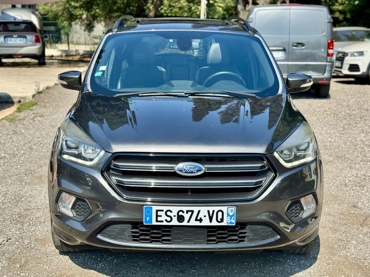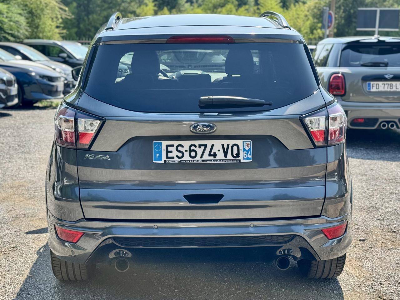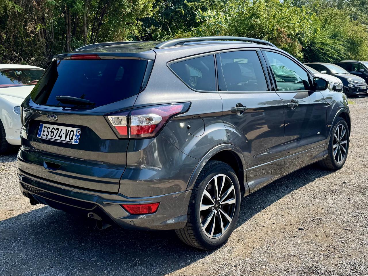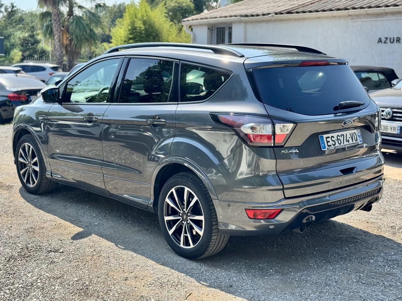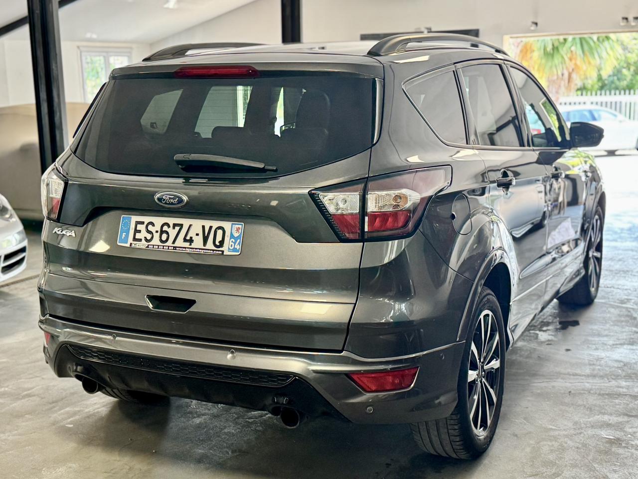2 Fixations Isofix à l'arrièreAccoudoir central arrièreActive Park Assist avancé. Inclus aide au stationnement avant et arrièreAide au démarrage en côteAirbags Ford rideaux 1ère et 2ème rangéesBarres de toit noiresBoucliers avant et arrière couleur carrosserieBouton de démarrage "Ford Power"Clignotement automatique des feux stop en cas de freinage d'urgenceClimatisation automatique bi-zoneDirection assistée électrique variable EPASEasy Fuel (trappe sans bouchon avec détrompeur de carburant)Echappement double sortieEclairage de coffreESP (régulation de comportement dynamique) avec système de stabilisation de la remorque et BAS (freinage d'urgence assisté)Feux de jour à LEDFrein à main électriqueJantes alliage 18" noires ST-LineKit carrosserie completOrdinateur de bordPack AutomatismesPédalier en aluminiumPoignées de portes et de hayon couleur carrosseriePrises 12V avant/arrièreProjecteurs antibrouillardRégulateur et limiteur de vitesseRétroviseurs rabattables électriquement et éclairage d'approcheSeuils de portes spécifiques ST-LineSièges avant à réglage lombairesSièges avant réglables en hauteur manuellementSièges avant sport, garnissage cuir/tissu RaptonSuspensions sportSystème multimedia Ford SYNC 3 avec navigation, Bluetooth commandes vocales avancées, écran couleur 8", 2 prises USB, 6 haut-parleurs, info trafic (TMC) et accès aux points d'intérêt Michelin Intègre Apple Carplay et Android AutoSystème MyKey Génération 2Système Stop & StartTapis de sol avant et arrière à surpiqures rouges ST-LineVolant en cuir ST-Line, réglable en hauteur et en profondeur