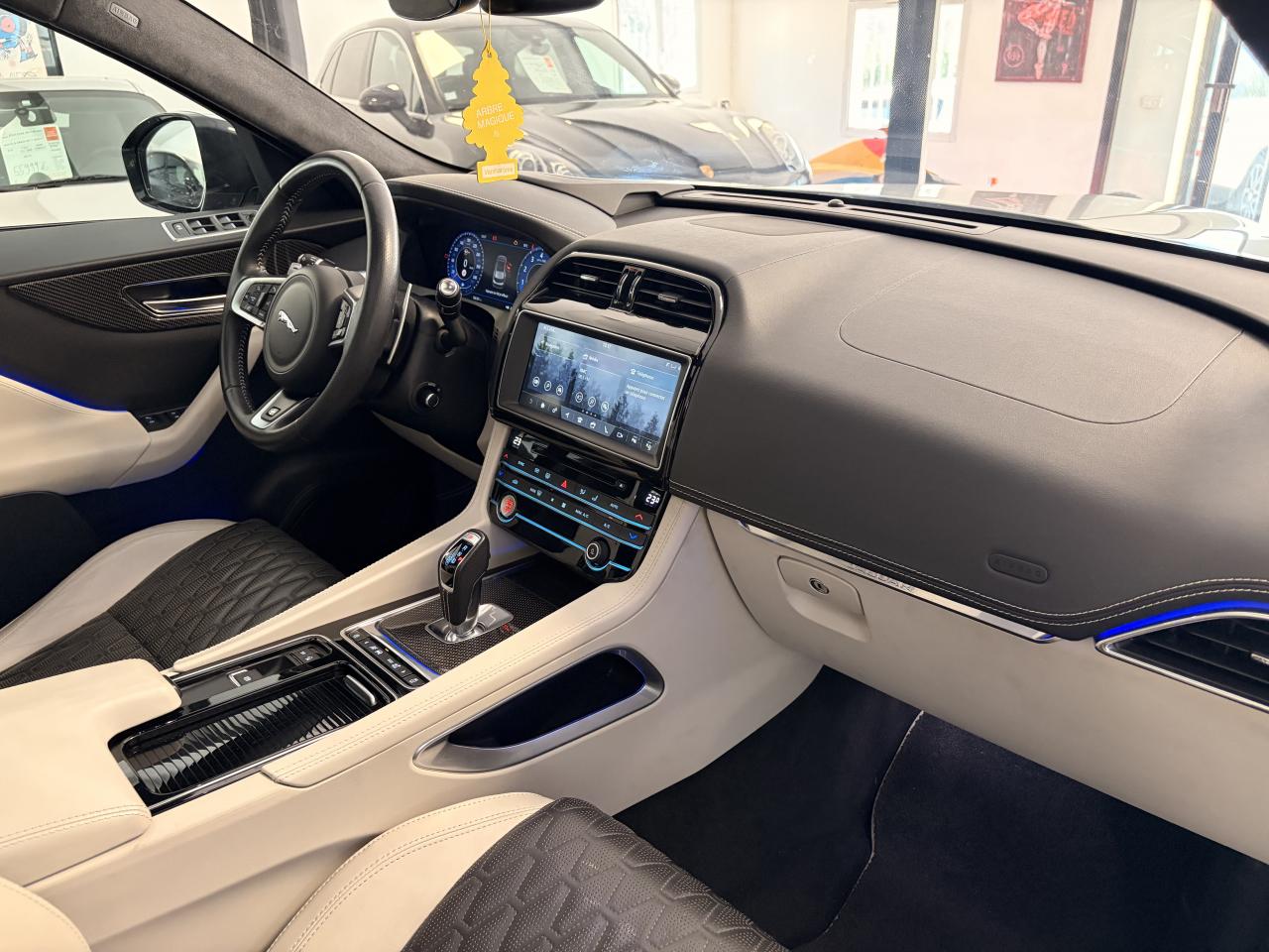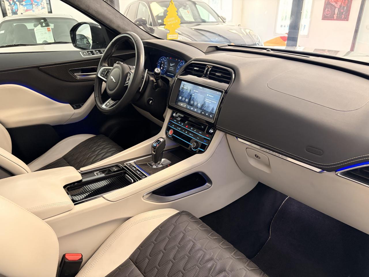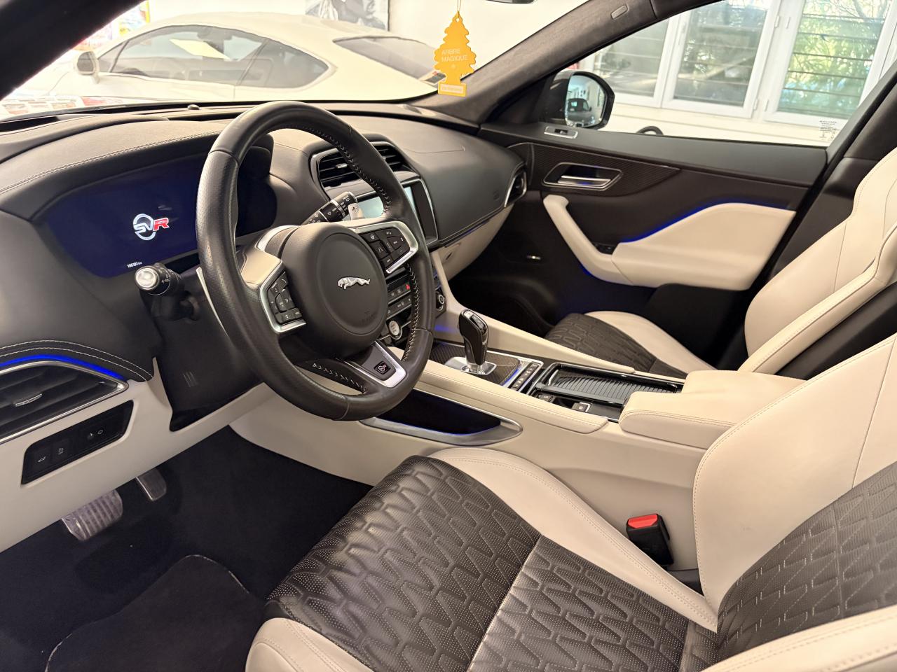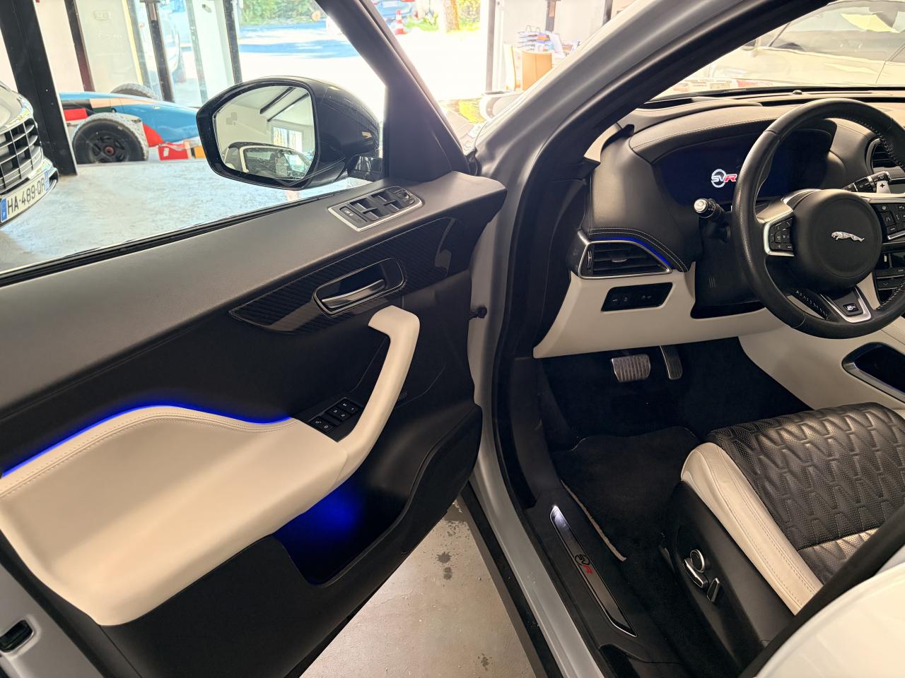 Accoudoir central arrièreActivation automatique des feux de détresse en cas de freinage brusqueAirbagsAssistance au démarrage en côteAssistance de maintien de fileBadge SVRCaméra stéréoscopique avec freinage d'urgence intelligent - AEBClimatisation automatique bi-zoneConnectivité BluetoothContrôle de pression des pneus ( TPMS )Contrôle de stabilité de l'attelage - TSADétecteur de pluie et allumage automatique des projecteursDétecteurs d'obstacles à 360°Différentiel à glissement limité avec Torque VectoringDynamique de conduite configurableÉcran tactile Touch Pro 10’’Entourage des vitres latérales Gloss BlackInControl ProtectJaguar Drive Control avec mode Eco, Normal, Dynamic et HiverJaguar Smart Key System, avec démarrage sans cléKit de carrosserie SVRNavigation ProOuverture et fermeture électrique du hayonPack Connect ProPack Mémorisation 2 - Sièges PerformancePalettes de changement de vitesses en aluminiumPhares LED adaptatifs avec signature LEDRails de toit finition Gloss BlackRétroviseur intérieur électrochromeSelecteur de vitesses SportshiftSièges en Cuir avec coutures en losangeTapis de sol exclusif SVRTechnologie Stop/StartVolant chauffantVolant multifonctions en cuir pleine fleur avec touches chromées et badge 'SVR'