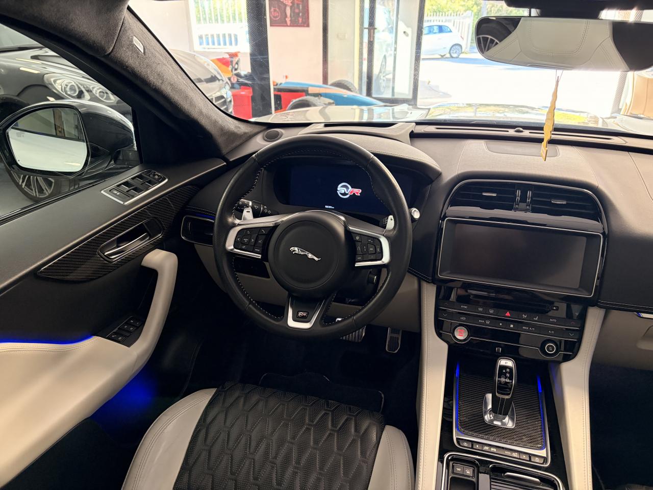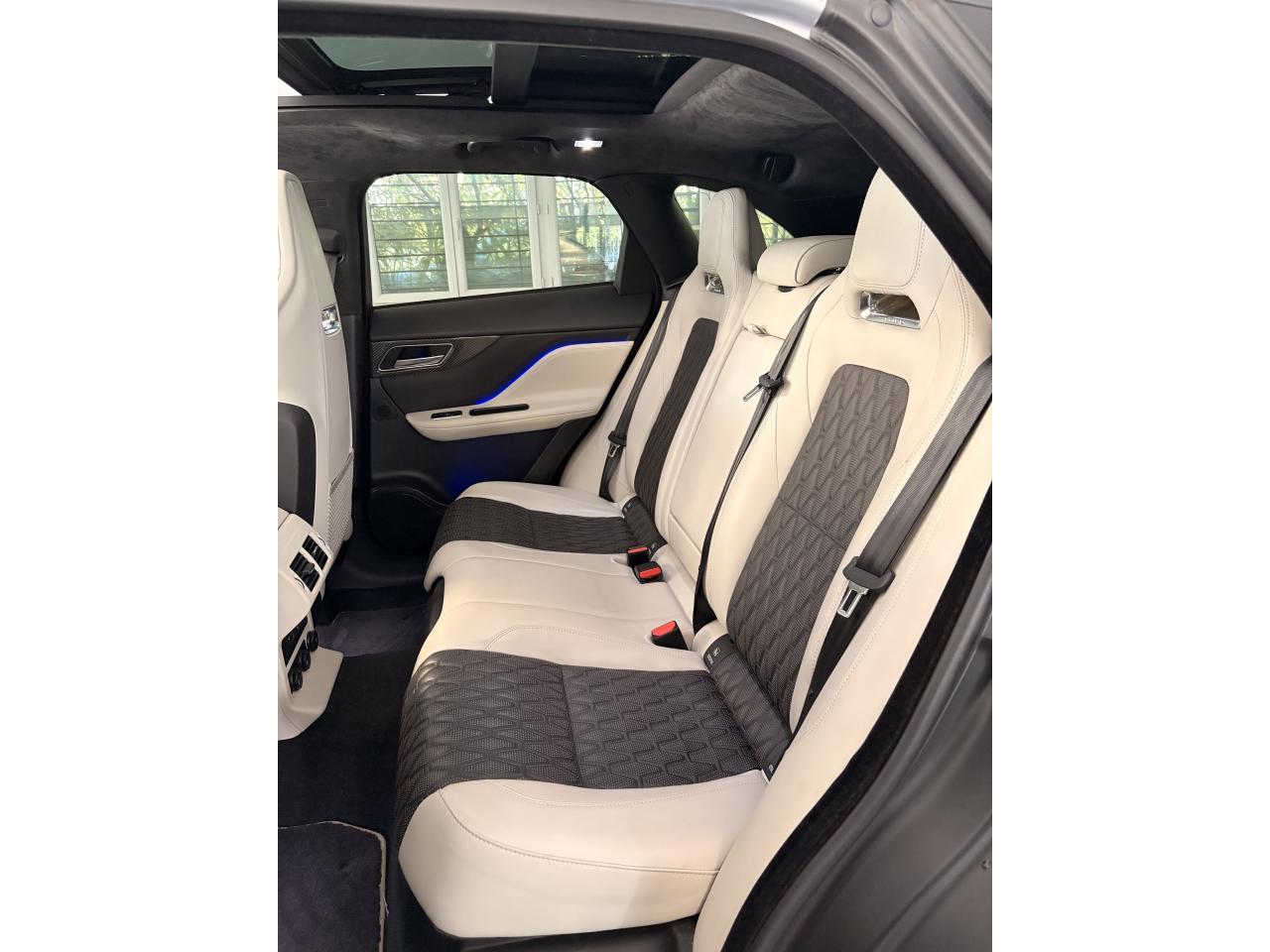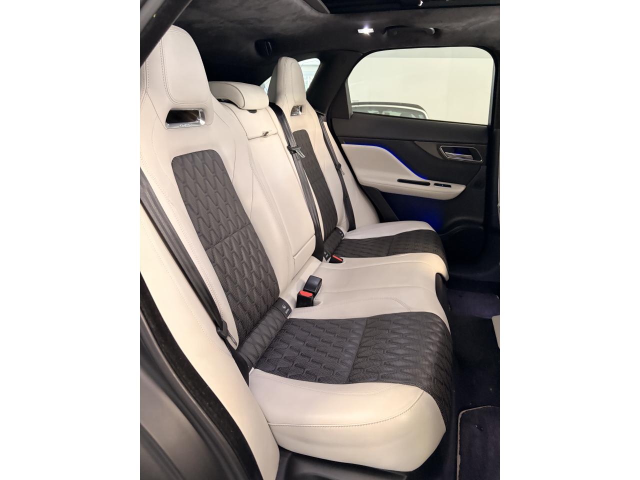 Accoudoir central arrièreActivation automatique des feux de détresse en cas de freinage brusqueAirbagsAssistance au démarrage en côteAssistance de maintien de fileBadge SVRCaméra stéréoscopique avec freinage d'urgence intelligent - AEBClimatisation automatique bi-zoneConnectivité BluetoothContrôle de pression des pneus ( TPMS )Contrôle de stabilité de l'attelage - TSADétecteur de pluie et allumage automatique des projecteursDétecteurs d'obstacles à 360°Différentiel à glissement limité avec Torque VectoringDynamique de conduite configurableÉcran tactile Touch Pro 10’’Entourage des vitres latérales Gloss BlackInControl ProtectJaguar Drive Control avec mode Eco, Normal, Dynamic et HiverJaguar Smart Key System, avec démarrage sans cléKit de carrosserie SVRNavigation ProOuverture et fermeture électrique du hayonPack Connect ProPack Mémorisation 2 - Sièges PerformancePalettes de changement de vitesses en aluminiumPhares LED adaptatifs avec signature LEDRails de toit finition Gloss BlackRétroviseur intérieur électrochromeSelecteur de vitesses SportshiftSièges en Cuir avec coutures en losangeTapis de sol exclusif SVRTechnologie Stop/StartVolant chauffantVolant multifonctions en cuir pleine fleur avec touches chromées et badge 'SVR'