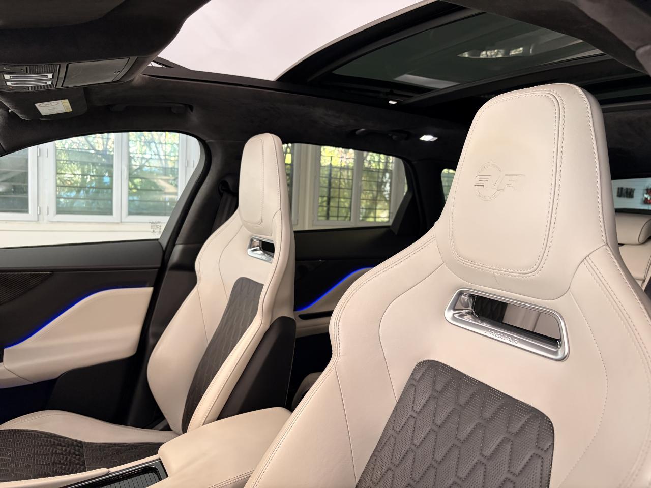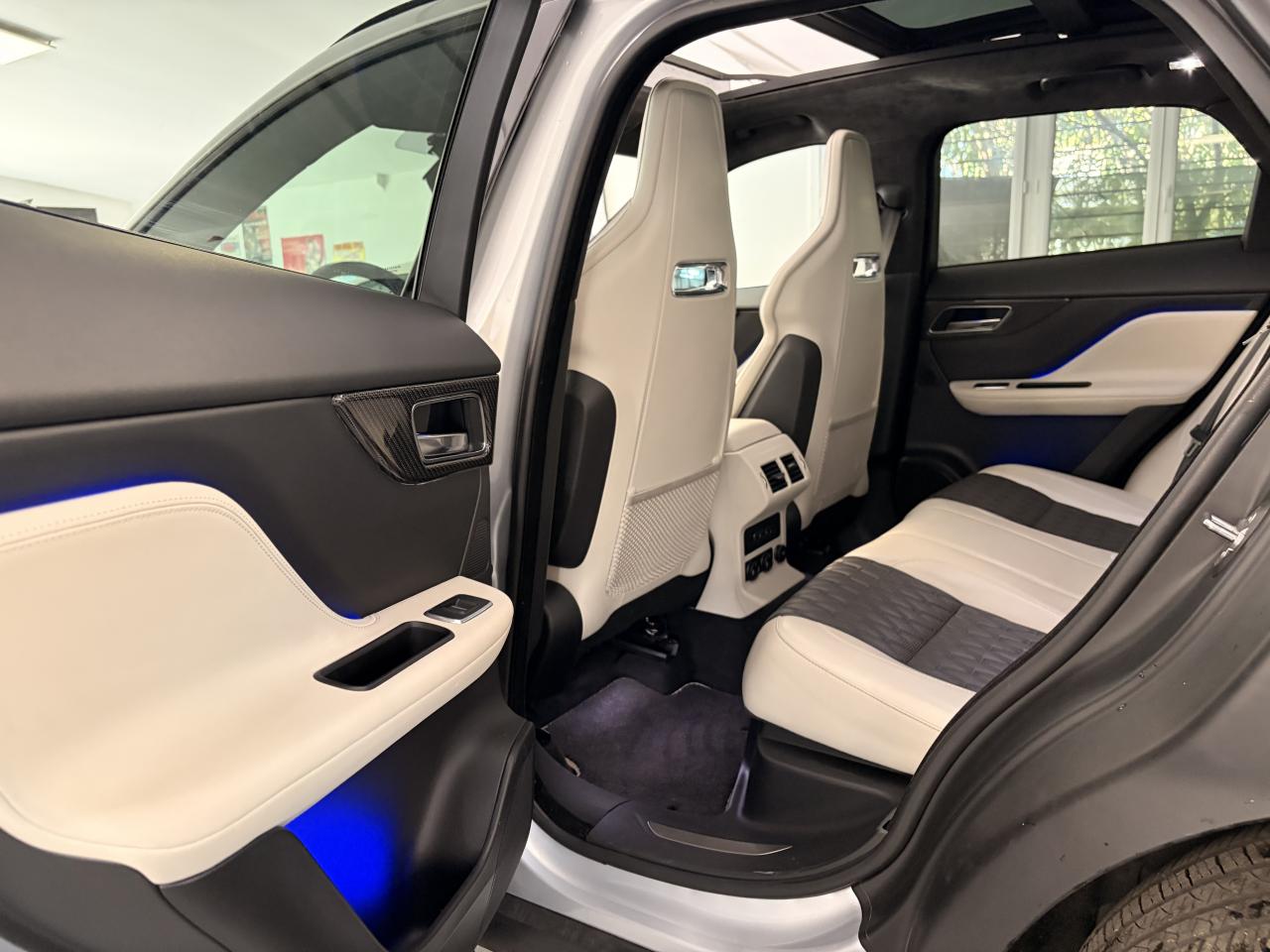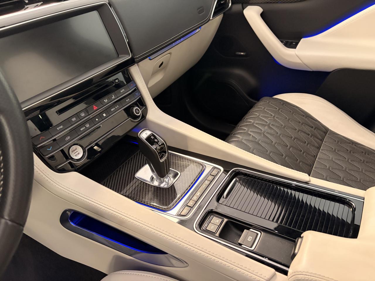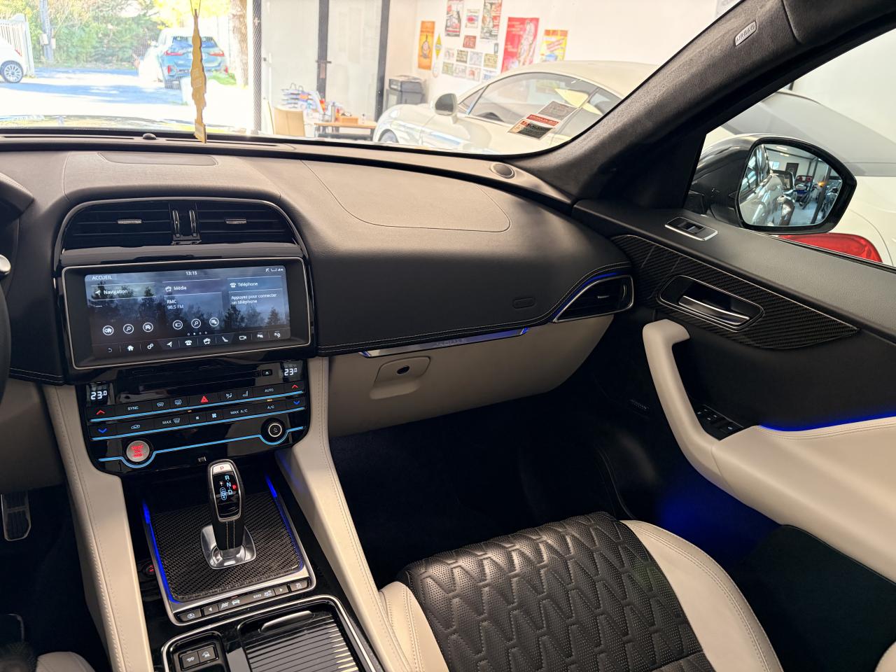 Accoudoir central arrièreActivation automatique des feux de détresse en cas de freinage brusqueAirbagsAssistance au démarrage en côteAssistance de maintien de fileBadge SVRCaméra stéréoscopique avec freinage d'urgence intelligent - AEBClimatisation automatique bi-zoneConnectivité BluetoothContrôle de pression des pneus ( TPMS )Contrôle de stabilité de l'attelage - TSADétecteur de pluie et allumage automatique des projecteursDétecteurs d'obstacles à 360°Différentiel à glissement limité avec Torque VectoringDynamique de conduite configurableÉcran tactile Touch Pro 10’’Entourage des vitres latérales Gloss BlackInControl ProtectJaguar Drive Control avec mode Eco, Normal, Dynamic et HiverJaguar Smart Key System, avec démarrage sans cléKit de carrosserie SVRNavigation ProOuverture et fermeture électrique du hayonPack Connect ProPack Mémorisation 2 - Sièges PerformancePalettes de changement de vitesses en aluminiumPhares LED adaptatifs avec signature LEDRails de toit finition Gloss BlackRétroviseur intérieur électrochromeSelecteur de vitesses SportshiftSièges en Cuir avec coutures en losangeTapis de sol exclusif SVRTechnologie Stop/StartVolant chauffantVolant multifonctions en cuir pleine fleur avec touches chromées et badge 'SVR'