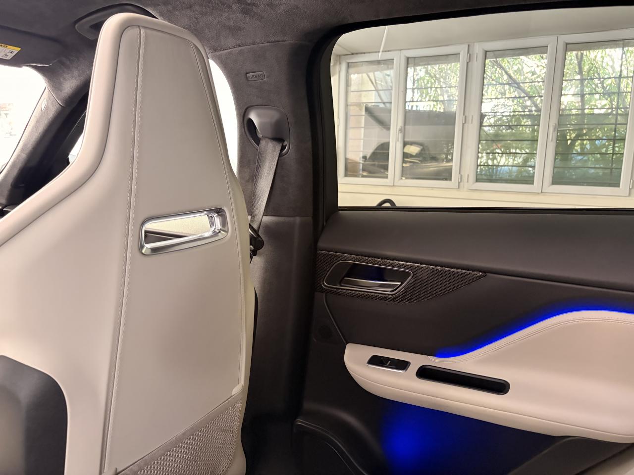Caméras panoramiques avec vue d'intersection et détection... Clé Loisirs Drive assist Pack ... Ecran double vision Finitions intérieurs Fibre de carbone Aluminium Weave Jantes 22'' 5 branches doubles 'Style 5081'... Pack Affichage Tête Haute Pare-brise athermique Pare-brise chauffant avec temporisation Peinture SVO brillante "Ultra Gloss" Sièges avant ventilés Sièges chauffants avant et arrière Système audio Meridian Surround - 17 HP - 825W Système d'assistance au stationnement Toit ouvrant panoramique Vitres surteintées