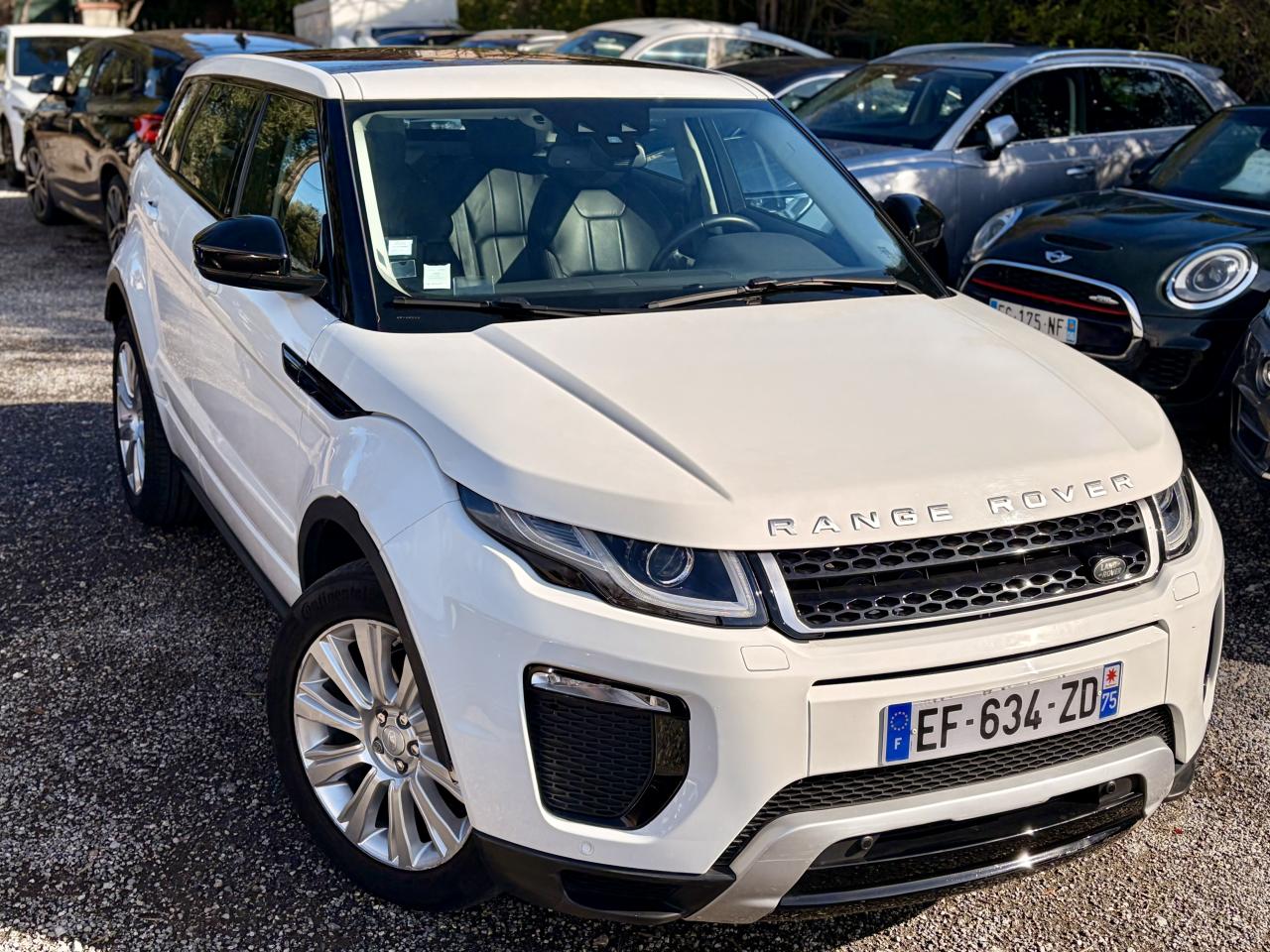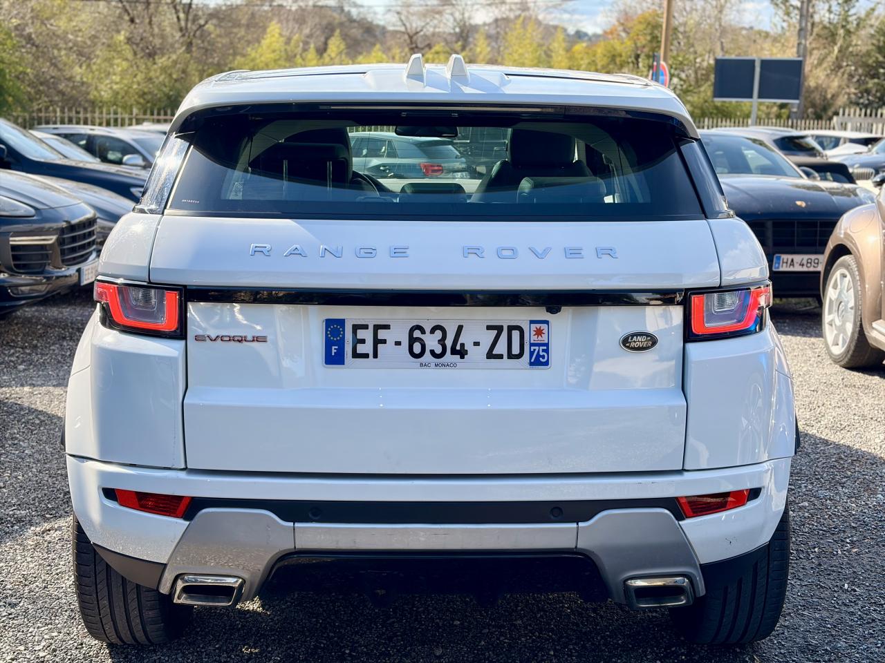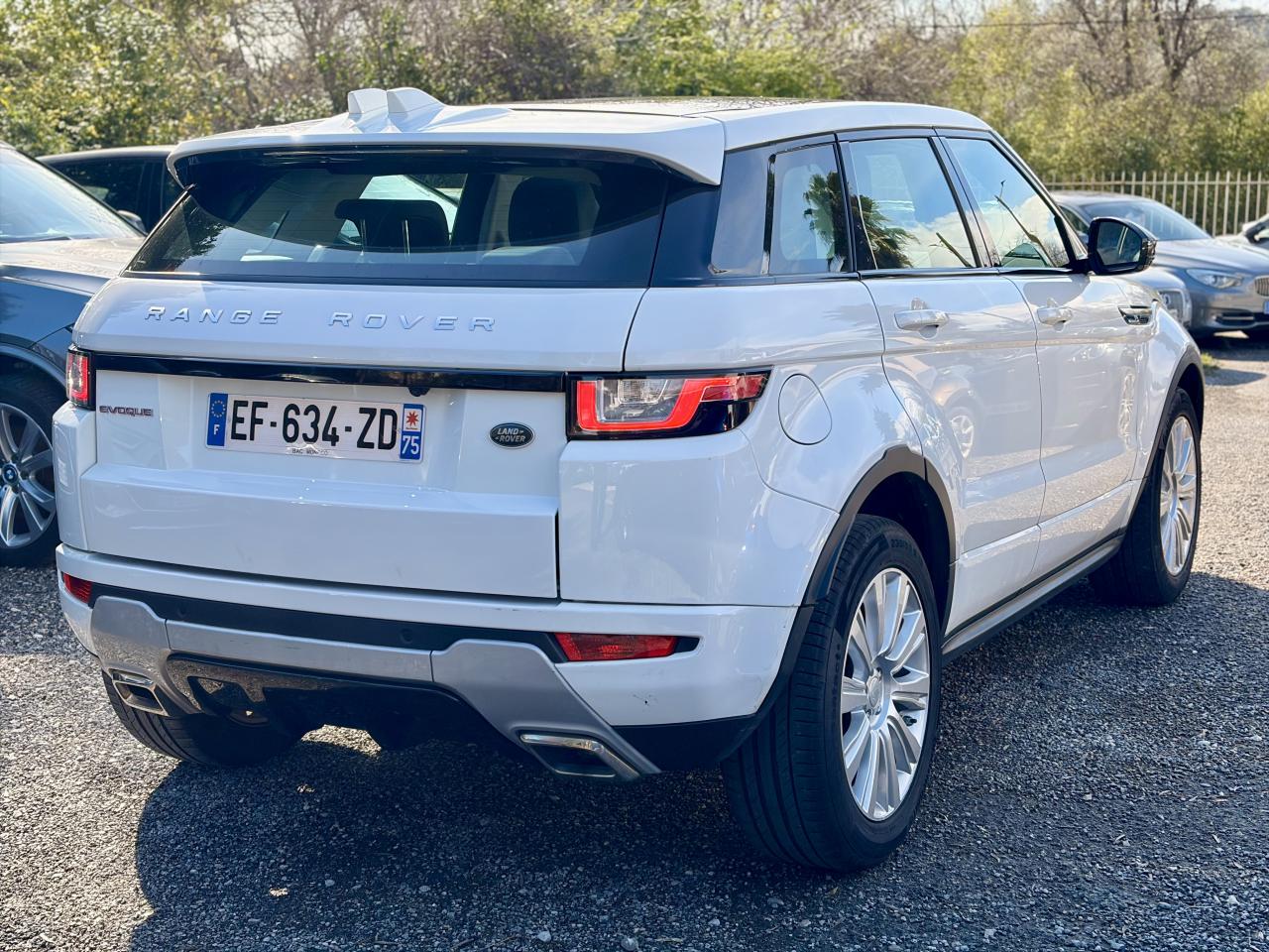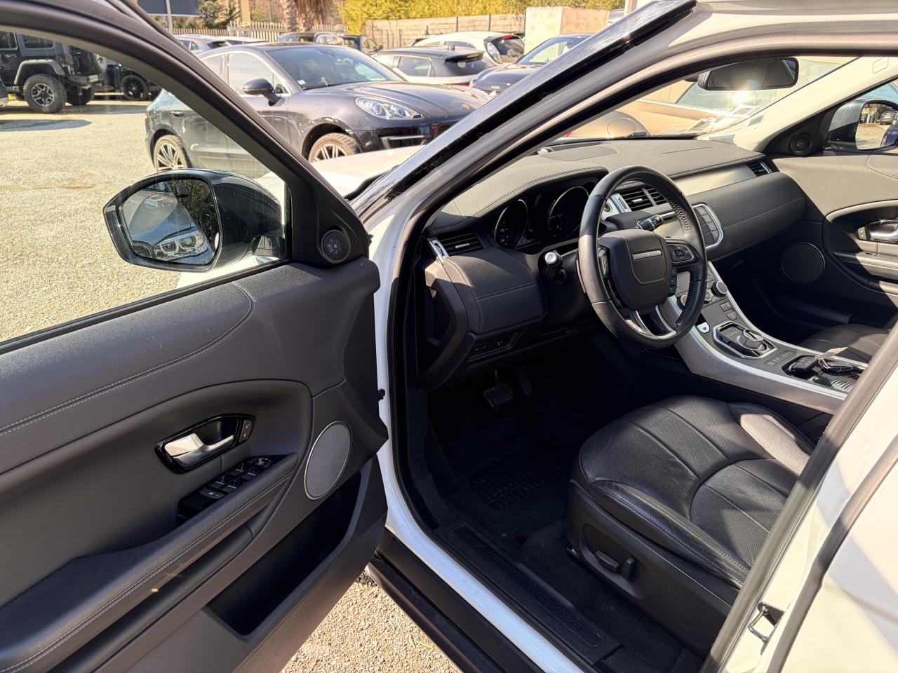 4 roues motrices avec Efficient Driveline7 airbags dont 1 airbag de genoux conducteurAlarme volumétriqueAlerte de franchissement de ligneBouton de démarrage / arrêtClimatisation automatique avec filtre à air d'habitacleCommandes au volant (audio, Bluetooth, régulateur de vitesse)Contrôle de pression des pneus ( TPMS )Contrôle dynamique de stabilité - DSCDétecteur d'obstacles arrièreDétecteurs d'obstacles avantEclairage des poignées de porteEntourage de calandre AtlasEPAS - Direction à assistance électrique asservie à la vitesseFinition de hayon Noir NarvikFinition inférieure des boucliers avant et arrière Indus Silver avec insert Noir NarvikFinition Satin Brushed AluminiumFixations Isofix sur les sièges latéraux arrièreFrein de stationnement électronique (EPB)Grille de calandre Noir NarvikHabillage des portes couleur carrosserieInControl ProtectInControl SecureJupes latérales AnthraciteKit anti-crevaisonLumière d'ambiance intérieureLunette arrière chauffanteOuïes latérales Noir NarvikOuverture et fermeture à distance des vitresPare-chocs AV/AR DynamicPavillon Morzine CirrusPhares Xénon et signature LED et lave-pharesPoignées de portes couleur carrosseriePort USBRégulateur de vitesseRépartiteur électronique de freinage (EBD)Rétroviseur intérieur électrochromeRétroviseurs de couleur Noir NarvikRétroviseurs extérieurs chauffants, réglables et rabattables électriquement, avec motif projeté Range Rover EvoqueSièges à réglages électriques 12/12 (dont lombaires) sans mémoireSorties d’échappement carrées chroméesSpoiler arrière couleur carrosserieSystème audio Land Rover avec 8 haut-parleursSystème d'adaptation au terrain Terrain ResponseTMSystème de navigation InControl TouchTapis de solTéléphonie Bluetooth avec fonction audiostreamingVolant en cuir Oxford