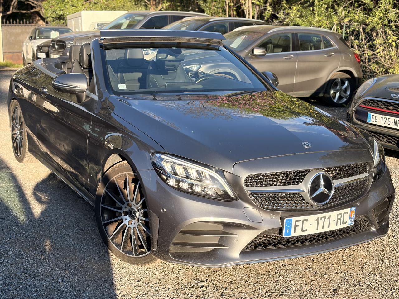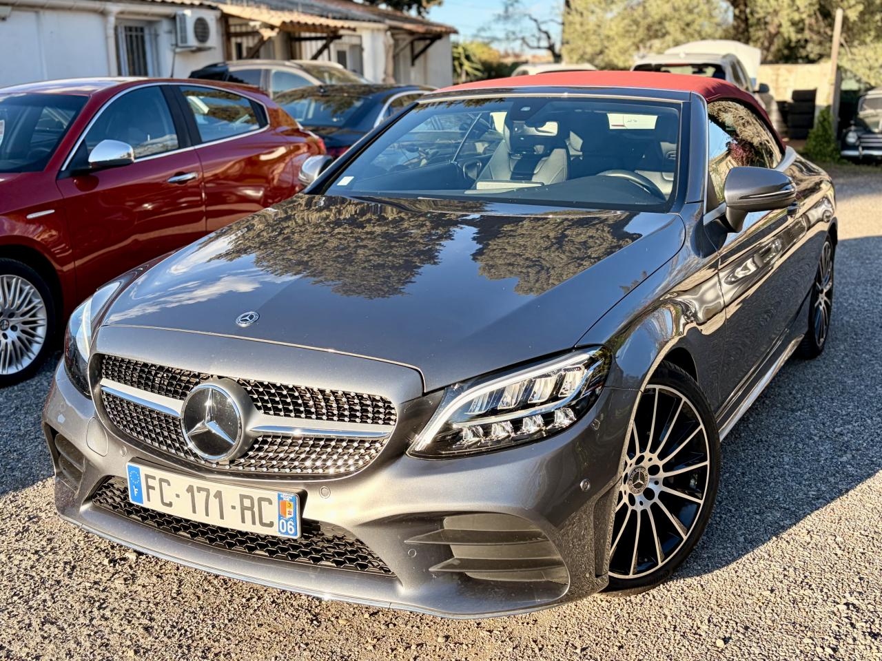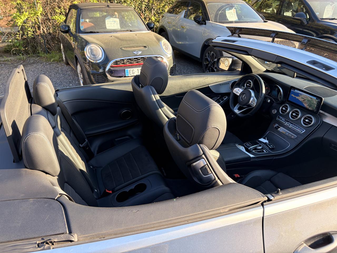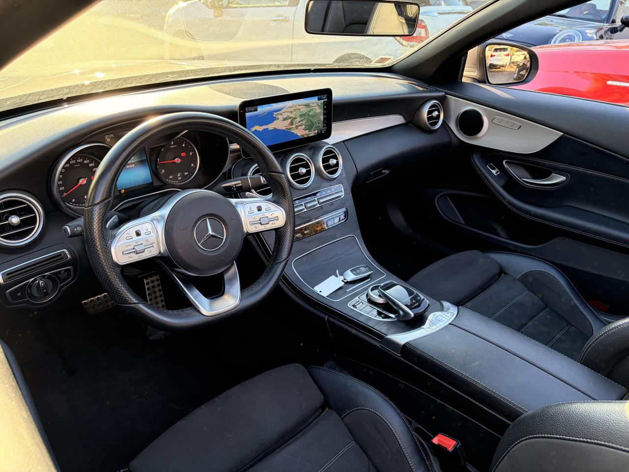 ABS (antiblocage de roues) et ASR (antipatinage)Accoudoir central avant avec vide-poches incluant deux prises USB et une fente SDADAPTIVE BRAKE avec fonction HOLD et aide au démarrage en côte, préremplissage et séchage des freins par freinage en cas de pluieAirbags frontaux à 2 seuils de déclenchementAirbags rideauxAssistance dynamique en virage (DCE – Dynamic Cornering Enhancement)Attention Assist : système de détection de somnolenceAutoradio Audio 20 GPS double tuner incluant la restitution de fichiers audio MP3/WMA/WAV/AAC, la connexion Bluetooth pour téléphone portable, le Picture Viewer pour l'affichage de fichiers images, la lecture de SMS ou d'e-mailsBaguette de ligne de ceinture en aluminium poliBas de caisse couleur carrosserieBoîte à gants éclairéeBoîte de vitesses automatique à 9 rapports 9G-TRONICCapot moteur actif pour la protection des piétonsCapote insonorisée en tissu triple épaisseur couleur rougeClignotants à commande confort par impulsionsClimatisation automatique THERMATIC à 2 zonesCombiné d'instruments avec écran couleur de 14 cm (5,5") et résolution de 383 x 600 pixels pour l'affichage d'informations supplémentairesCompartiment range-lunettes dans la console de pavillonConciergerie Mercedes me connectDésactivation automatique de l’airbag passager avantDYNAMIC SELECT controller : 4 programmes de conduiteEcran media haute résolution (1 920 x 720 pixels) de 10,25'' (26 cm) au format 16/9ESP (régulation de comportement dynamique)Feux arrière intégralement à LEDFixation de siège enfant de type i-Size intégrée dans les coussins d’assise à l'arrière (places extérieures) et dispositif de courroies Top Tether pour les sièges enfantsFonction d'arrêt/redémarrage "Stop/Start ECO" avec commutateur de désactivation manuelleFrein de parking électriqueFreinage d'urgence assisté actifIndicateur de température extérieurIndicateur dynamique de maintenance (ASSYST PLUS)KEYLESS-GO : système de démarrage sans cléModule de communication LTE pour l'utilisation des services Mercedes me connectOrdinateur de bordPack AMG Line extérieurPack AMG Line IntérieurPack ConfortPack Confort des sièges avantPack d'aide au stationnementPack d'éclairage intérieurPack rétroviseursPare-chocs arrière couleur carrosserieProjecteurs hautes performances à technologie LEDRétroviseurs extérieurs électriques, chauffants et asphériques, avec rappels de clignotants intégrésSécurité enfant avec verrouillage manuel des portes arrière et électrique des vitres arrièreSièges avant chauffantsSPEEDTRONIC (limiteur de vitesse)Système de navigation Système de stabilisation en cas de vent latéralTempomat (Régulateur de vitesse)TOUCHPAD : pavé tactile permettant la navigation dans les menus audio, téléphone et média sur l'écran couleurVerrouillage centralisé à télécommande avec fonction de verrouillage automatique