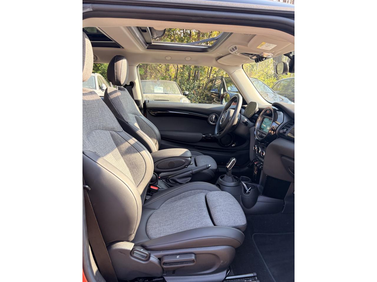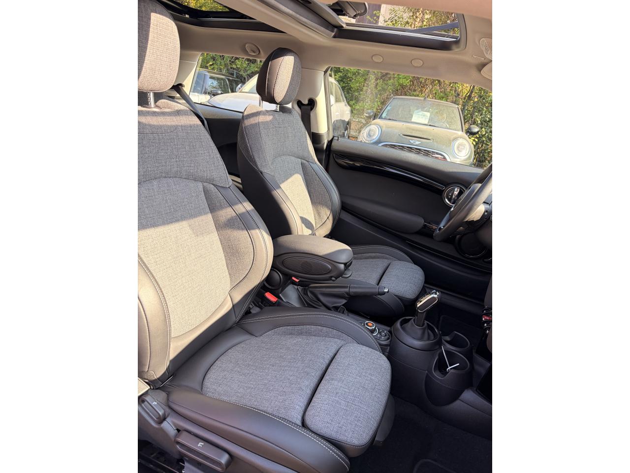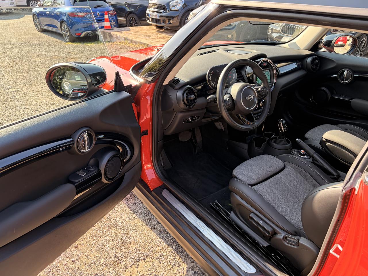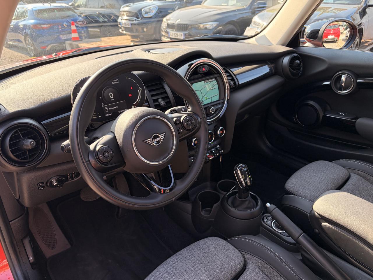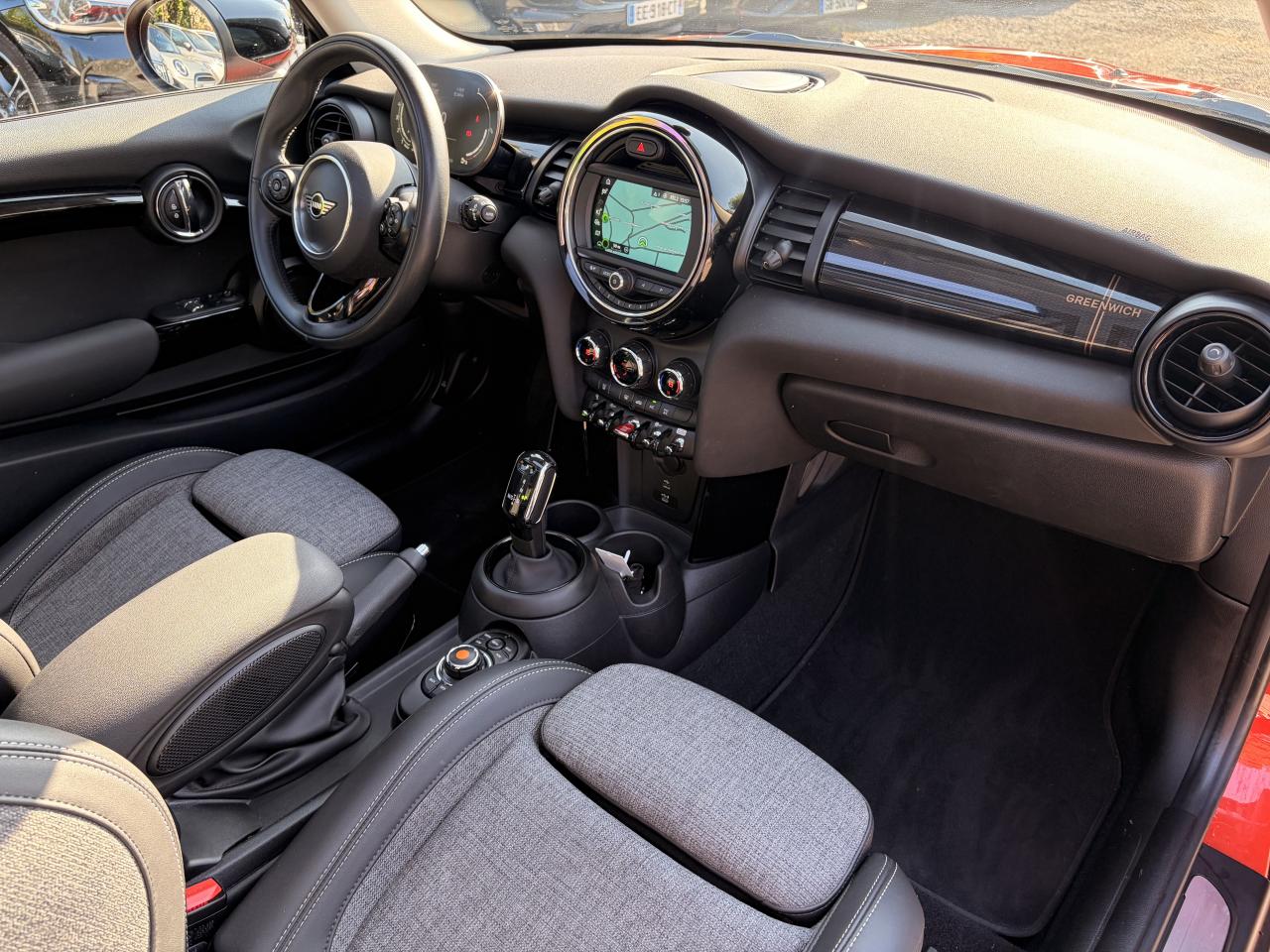 6 airbags (2 frontaux, 2 latéraux et 2 rideaux)ABS, y compris assistant de freinageAccoudoir central avantAutoradio AM/FM/DABBaguettes de seuil de porte avec inscription de la motorisation façon métalliqueBandes décoratives de capot et ouïes de clignotants GreenwichBoite de vitesses robotiséeCalandre au contour chromé avec lamelles “Piano Black”Ciel de pavillon teinte Satellite GreyClignotants blancsClimatisation automatique bi-zoneColour Line Carbon BlackConnectivité avancée sans fil Hot Spot Wifi et recharge sans fil par inductionDétecteur de pluie et allumage automatique des projecteursEclairage d'accompagnement "Follow me Home"Fixations ISOFIX pour le siège passager avant + désactivation de l'airbagFonction Start & Stop et démarrage sans cléInsert Piano Black avec élément de décoration GreenwichKit EclairageLève-vitres et rétroviseurs extérieurs électriquesMINI driving modesOrdinateur de bordPack Connected NavigationPort USBPrise 12V sous la console centraleProjecteurs antibrouillard à LEDProjecteurs avant et feux arrière au contour chroméProjecteurs Full LED et feux arrière à LED avec design “Union Jack”Régulateur de vitesse avec fonction de freinageSellerie Tissus/similicuir Black Pearl Carbon BlackSeuils de portes chromésSièges avant réglables en hauteurSortie d'échappement simple, droite et chroméeSystème Bluetooth avancé avec recharge par induction du téléphoneToit ouvrant panoramique en verreTouches multifonctions sur le volantVerrouillage centralisé des portes, du coffre et de la trappe à essenceVolant sport 3 branches gainé de cuir