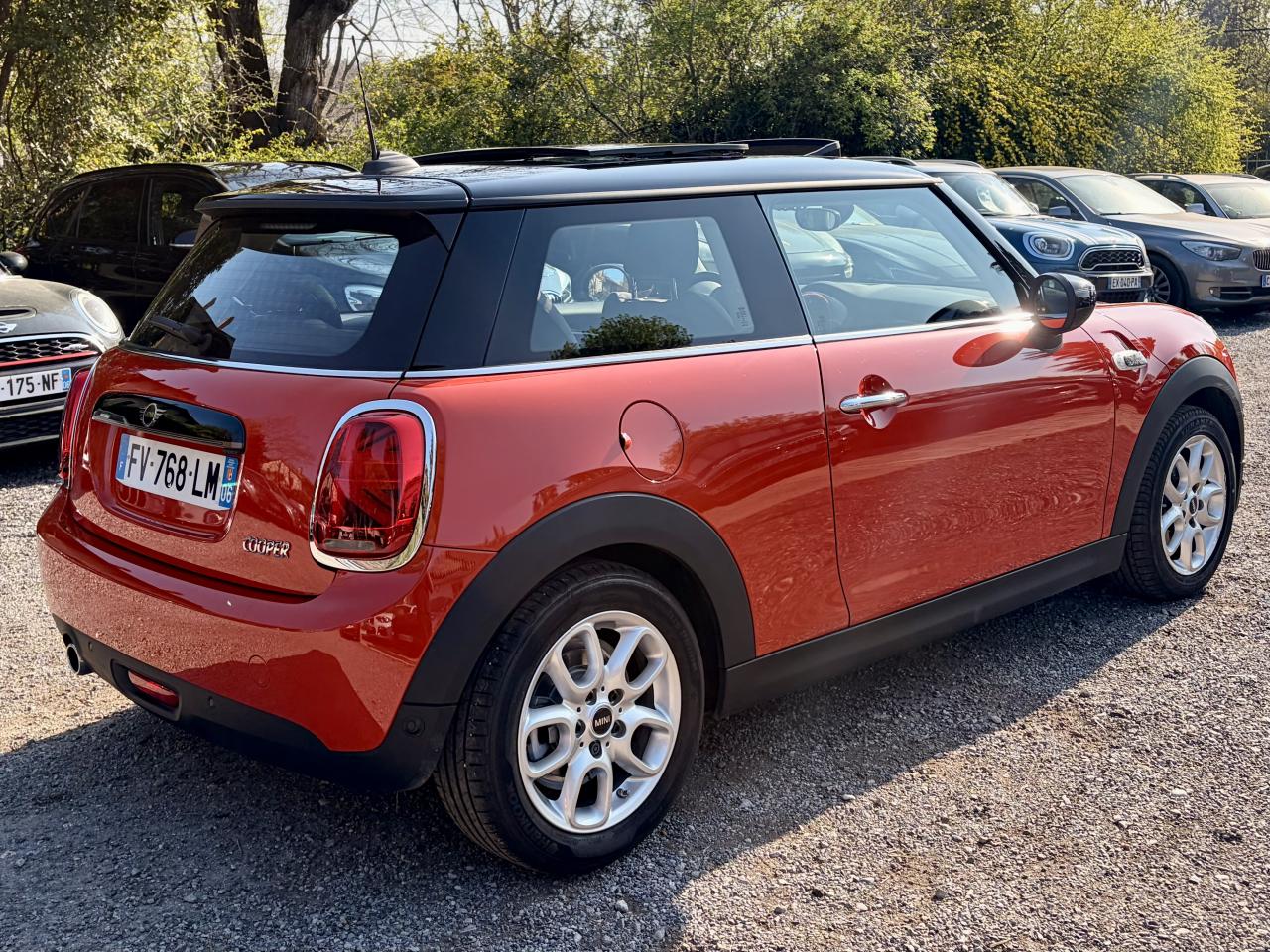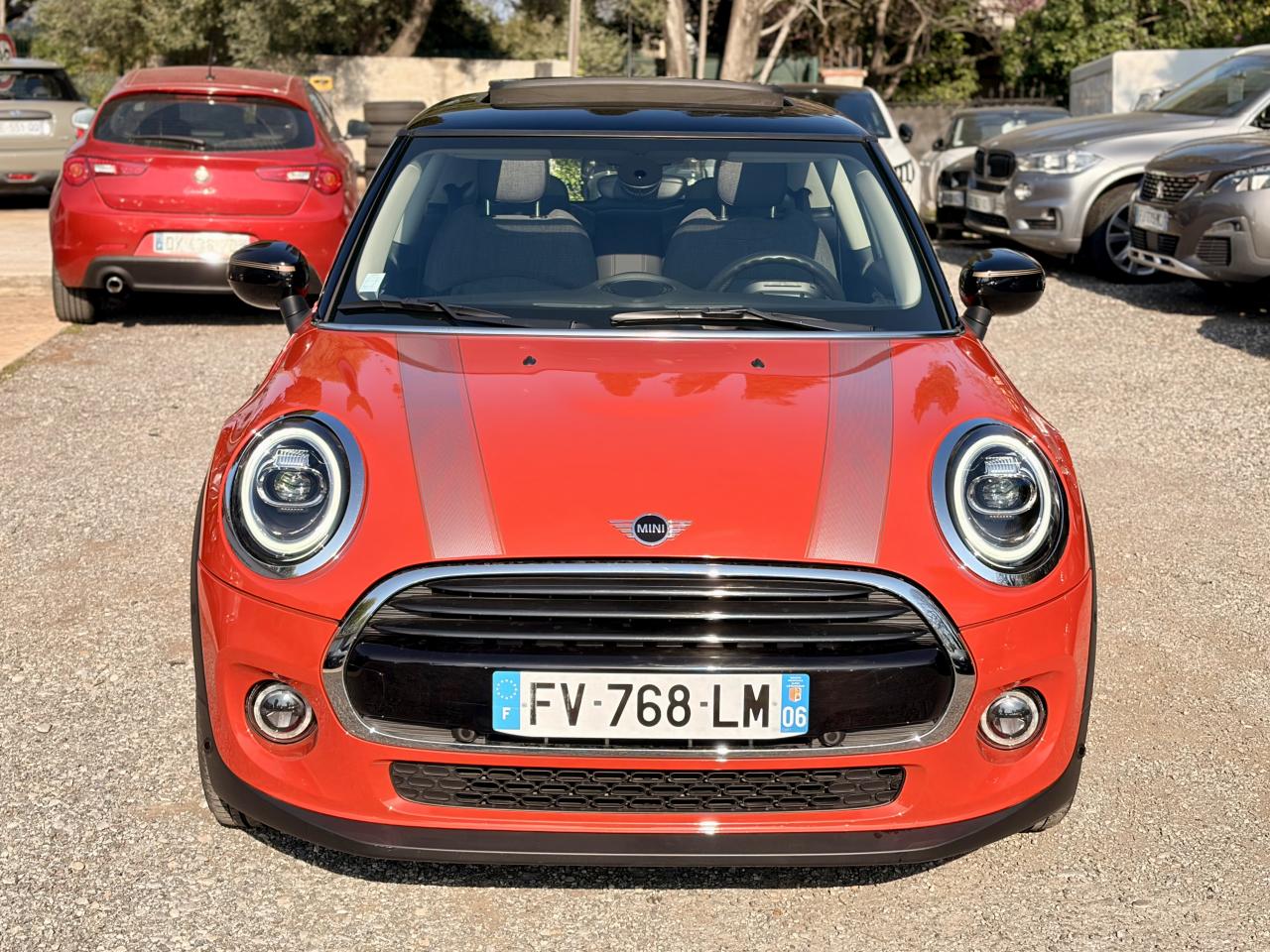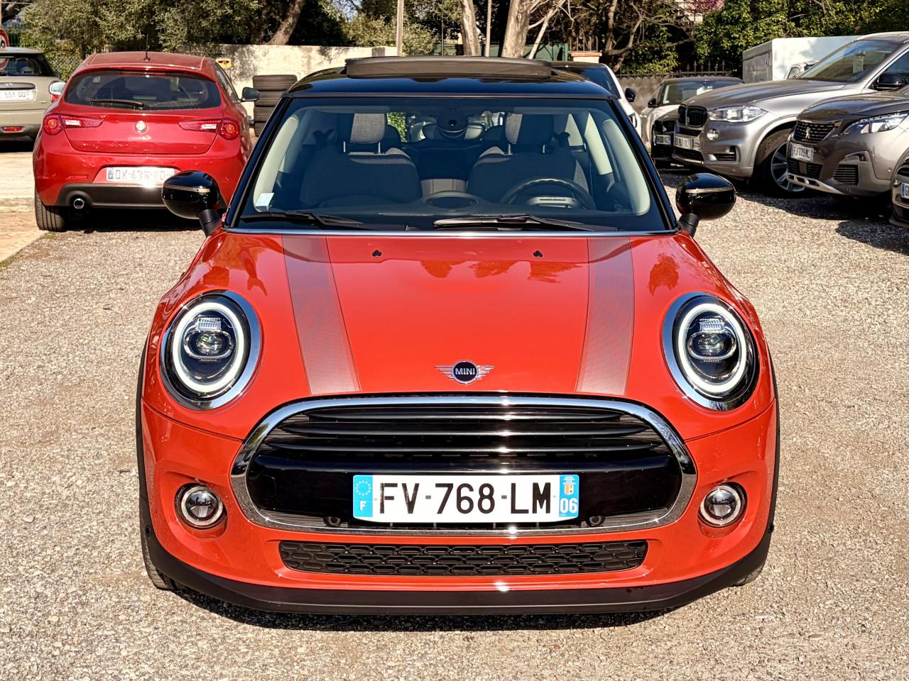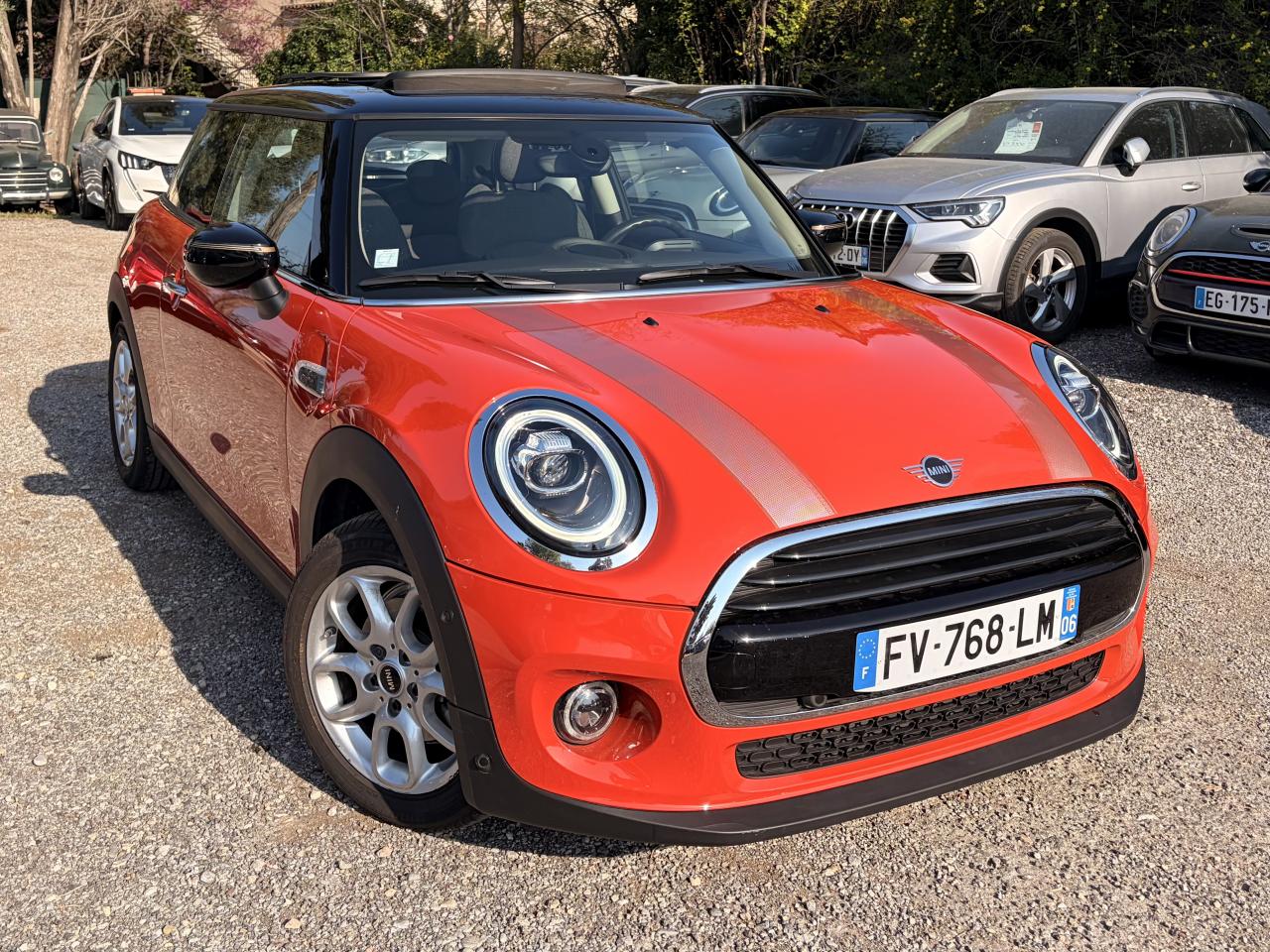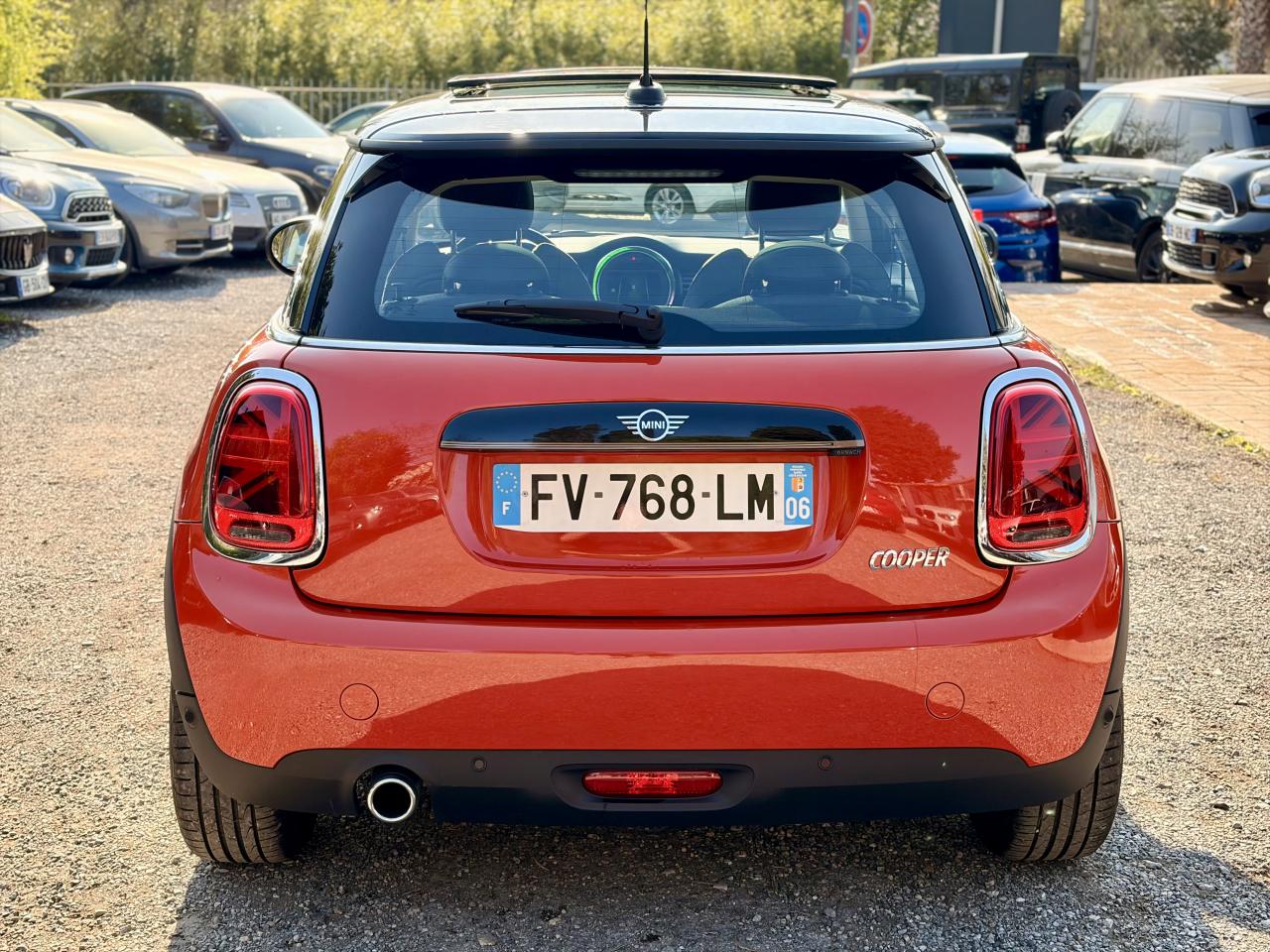 6 airbags (2 frontaux, 2 latéraux et 2 rideaux)ABS, y compris assistant de freinageAccoudoir central avantAutoradio AM/FM/DABBaguettes de seuil de porte avec inscription de la motorisation façon métalliqueBandes décoratives de capot et ouïes de clignotants GreenwichBoite de vitesses robotiséeCalandre au contour chromé avec lamelles “Piano Black”Ciel de pavillon teinte Satellite GreyClignotants blancsClimatisation automatique bi-zoneColour Line Carbon BlackConnectivité avancée sans fil Hot Spot Wifi et recharge sans fil par inductionDétecteur de pluie et allumage automatique des projecteursEclairage d'accompagnement "Follow me Home"Fixations ISOFIX pour le siège passager avant + désactivation de l'airbagFonction Start & Stop et démarrage sans cléInsert Piano Black avec élément de décoration GreenwichKit EclairageLève-vitres et rétroviseurs extérieurs électriquesMINI driving modesOrdinateur de bordPack Connected NavigationPort USBPrise 12V sous la console centraleProjecteurs antibrouillard à LEDProjecteurs avant et feux arrière au contour chroméProjecteurs Full LED et feux arrière à LED avec design “Union Jack”Régulateur de vitesse avec fonction de freinageSellerie Tissus/similicuir Black Pearl Carbon BlackSeuils de portes chromésSièges avant réglables en hauteurSortie d'échappement simple, droite et chroméeSystème Bluetooth avancé avec recharge par induction du téléphoneToit ouvrant panoramique en verreTouches multifonctions sur le volantVerrouillage centralisé des portes, du coffre et de la trappe à essenceVolant sport 3 branches gainé de cuir