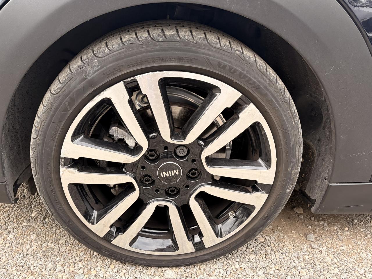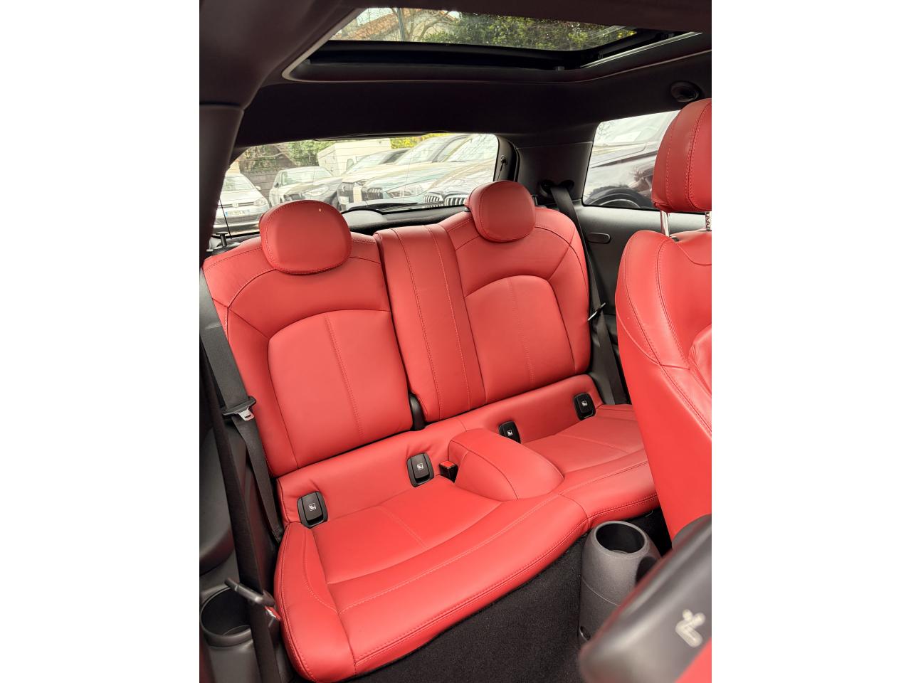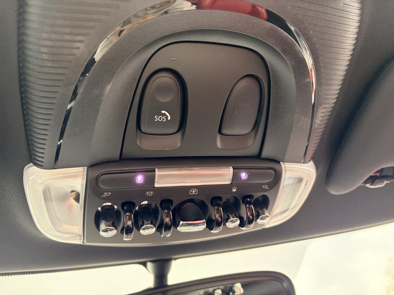 Chargeur téléphone en induction Caméra de recul Ciel de pavillon anthracite Jantes en alliage 17" "Rail Spoke" Phare Union Jack Pack Driving assistant Peinture métallisée Enigmatic Black Sellerie cuir MINI Yours RED Toit et rétroviseurs noirs
