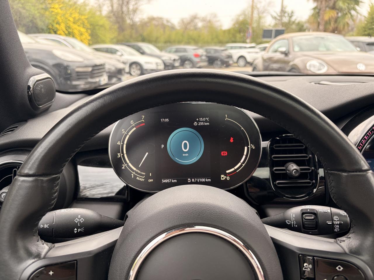 Accoudoir central avantAutoradio AM/FM/DABBoite de vitesses robotiséeCalandre au contour chromé avec lamelles “Piano Black”Climatisation automatique bi-zoneDétecteur de pluie et allumage automatique des projecteursEclairage d'accompagnement "Follow me Home"Eclairage d’ambianceFonction Start & Stop et démarrage sans cléInsert passager CamdenInserts décoratifs Piano BlackKit EclairageMINI driving modesOuïes de clignotants CamdenPack Connected Media avec écran tactile 8,8’’Pack Connected NavigationPare-chocs avant et arrière dans la couleur de la carrosseriePoignée de hayon “Piano Black”Port USBPrise 12V sous la console centraleProjecteurs antibrouillard à LEDProjecteurs avant et feux arrière au contour chroméProjecteurs full LED avec feux de jour à LED et feux diurnes en cerclage complet intégrés dans les pharesRégulateur de vitesse avec fonction de freinageRétroviseur intérieur électrochromeRétroviseurs extérieurs rabattables électriquementSeuils de porte CamdenSièges avant sportSortie d'échappement simple, droite et chroméeSurfaces intérieures “Piano Black”Système Bluetooth avancé avec recharge par induction du téléphoneSystème de capot actif (DHS)Tapis de sol en veloursToit ouvrant panoramique en verreTouches multifonctions sur le volantVerrouillage centralisé des portes, du coffre et de la trappe à essenceVolant sport 3 branches gainé de cuir