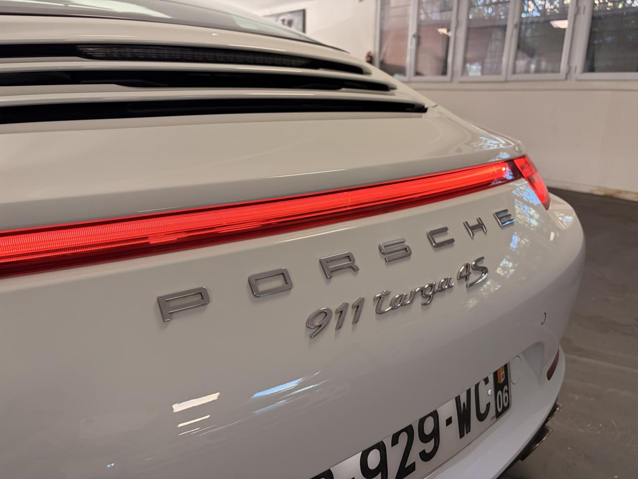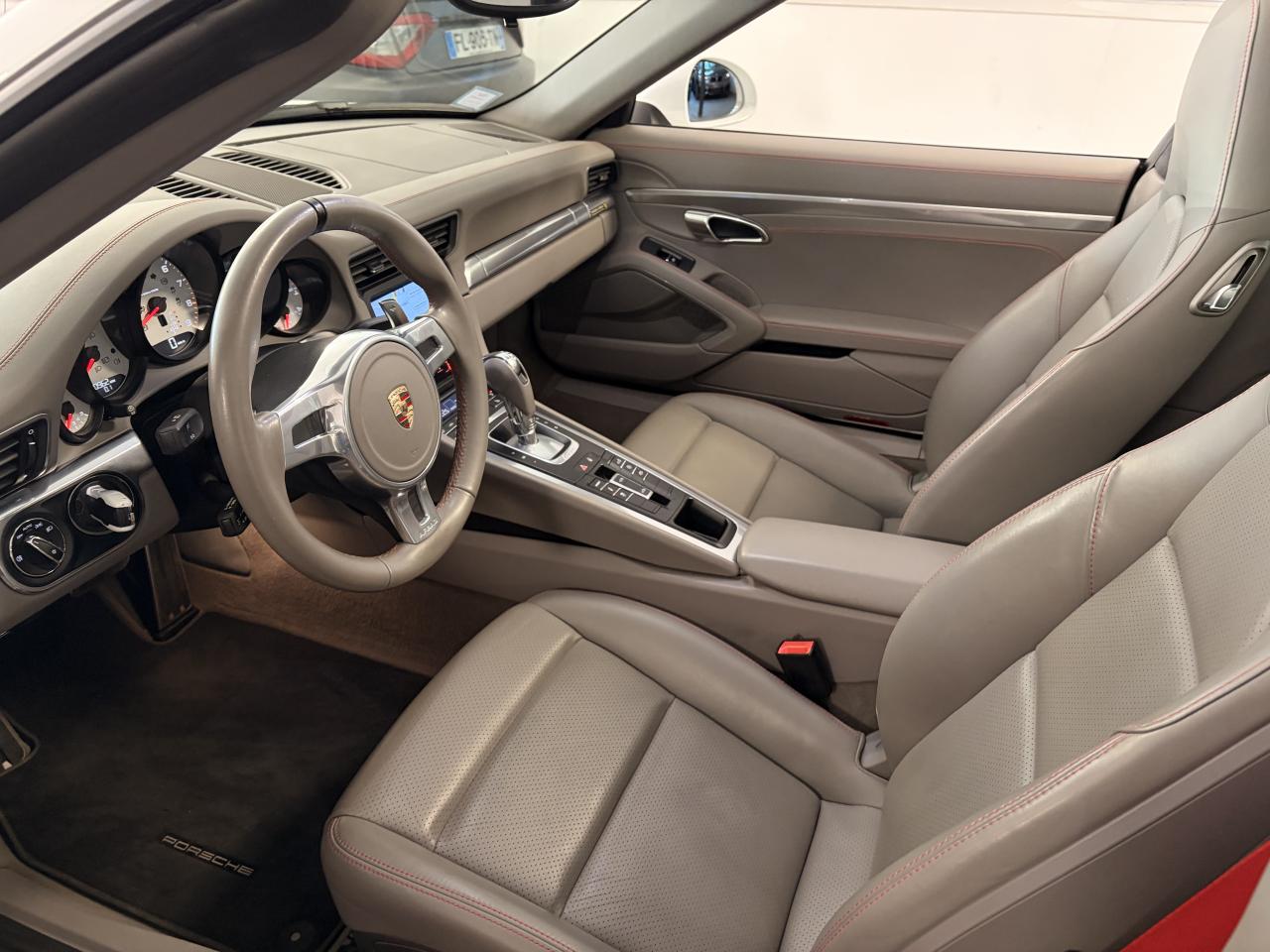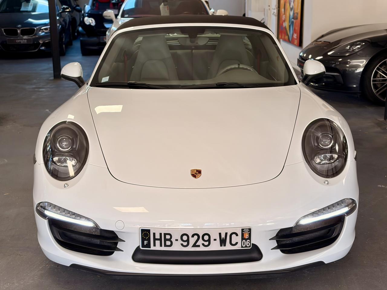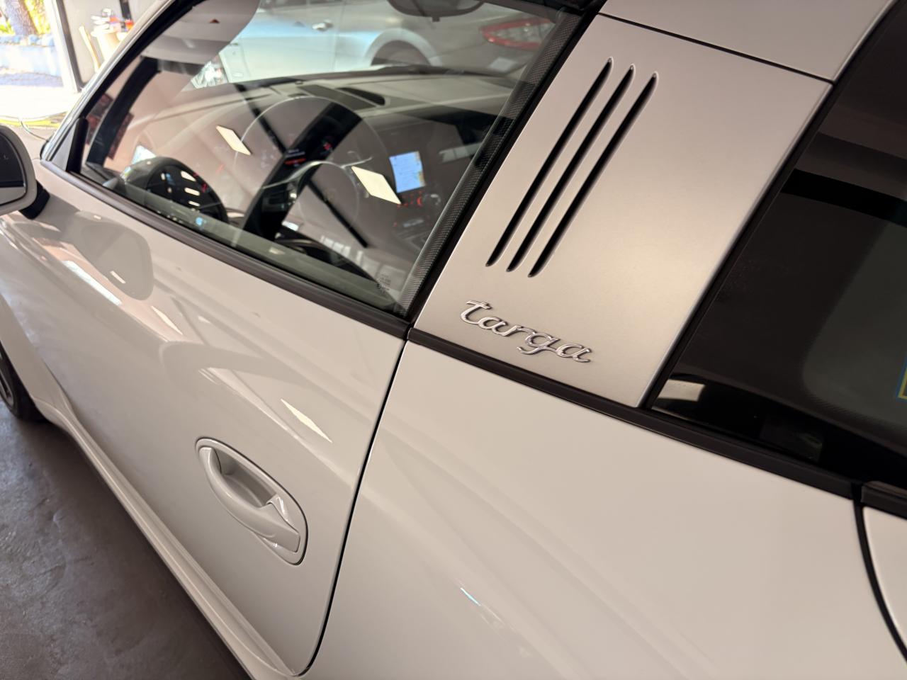 Affichage analogique : régime, vitesse, pression et température de l'huile, température du liquide de refroidissement et jauge de carburantAffichage de la vitesse engagée sur le compte-toursAileron arrière à déploiement automatiqueAirbags grand volume (deux niveaux de gonflage) pour le conducteur et le passagerArceau Targa fixe en aluminium, grilles et monogramme « Targa »Bloc moteur et culasse en aluminiumBoîte de vitesse Porsche Doppelkupplung (PDK)Ciel de toit en tissu noir alcantaraClimatisation automatique avec réglage de la température séparé côtés conducteur et passager, commande automatique du recyclage de l'air avec capteur de qualité d'air et fonction chaleur résiduelleEtriers de frein rougesFrein de parking électriqueHabillage de larceau Targa en alcantara, NoirLunette arrière chauffanteLunette arrière convexe chauffante en verre de sécurité feuilletéPack Audio PlusSièges arrière rabattables individuellementSièges sport avec réglage électriqueSystème d'échappement à clapetsSystème de diagnostic embarqué pour le contrôle des émissions à l'échappementSystème de toit comprenant une capote en tissu entièrement électrique et automatique montée sur une coque rigideTableau de bord avec compte-tours central, écran TFT couleur haute définition de 4,6 pouces avec affichage des fonctions de l'ordinateur de bord, éclairé en blancTarga 2+2 places avec carrosserie élargie et transmission intégraleTeinte unies Blanc CarraraTouche SPORTVitres latérales hydrophobesVitres teintées thermo-isolées