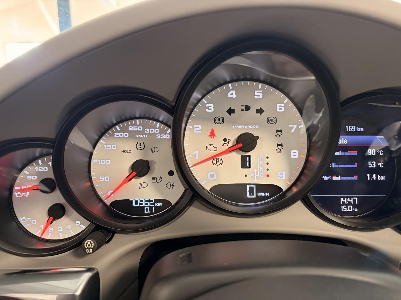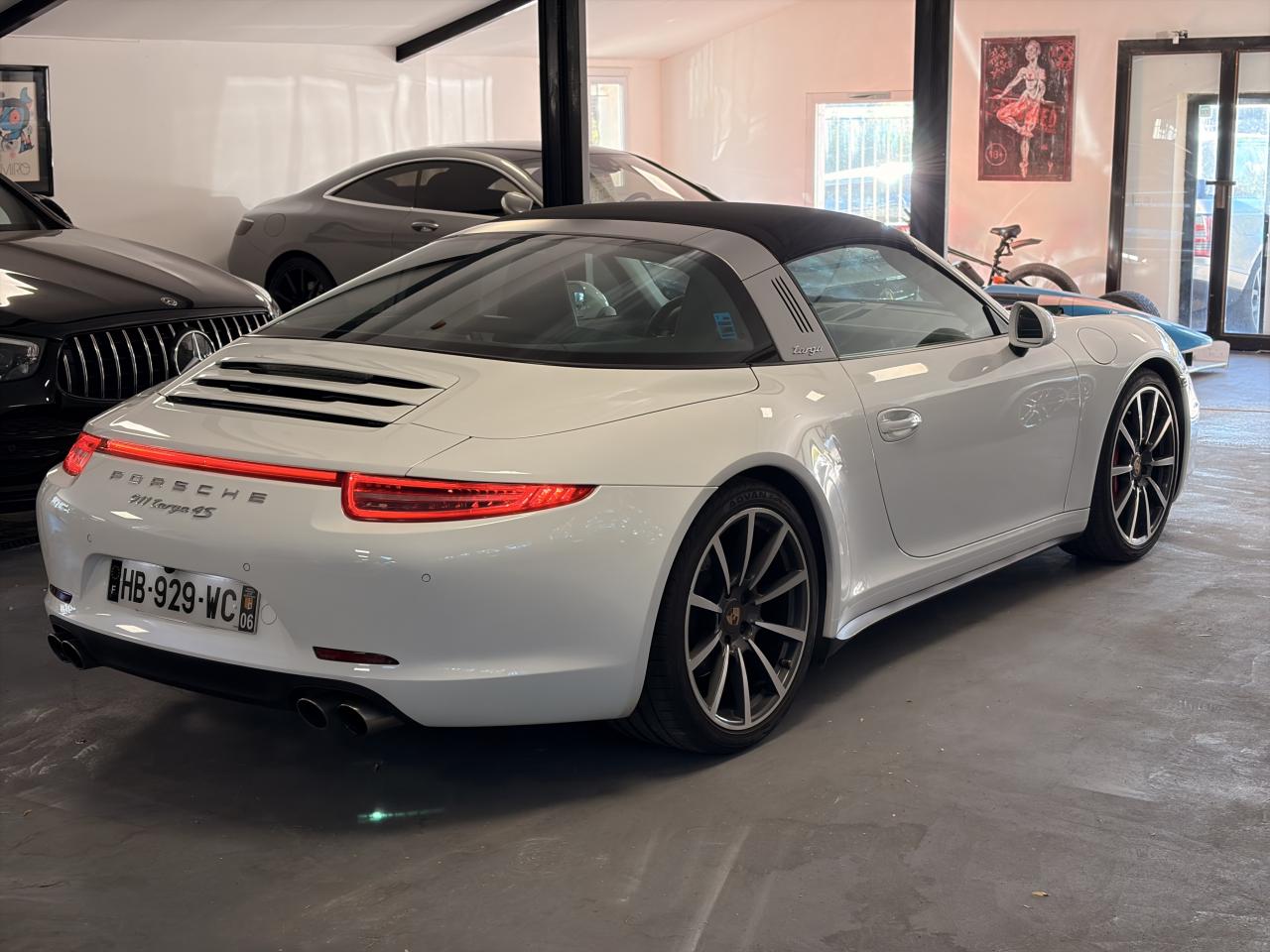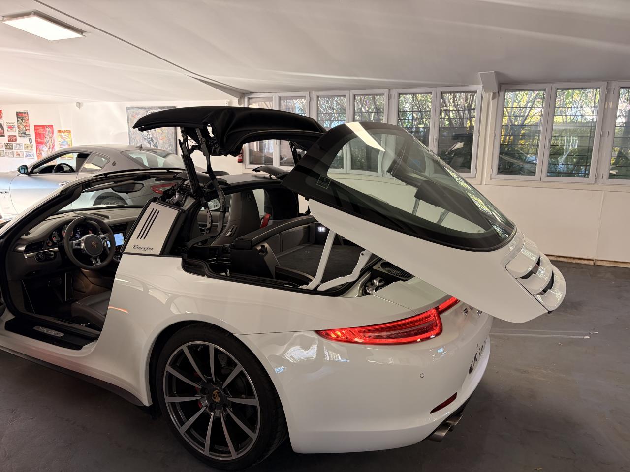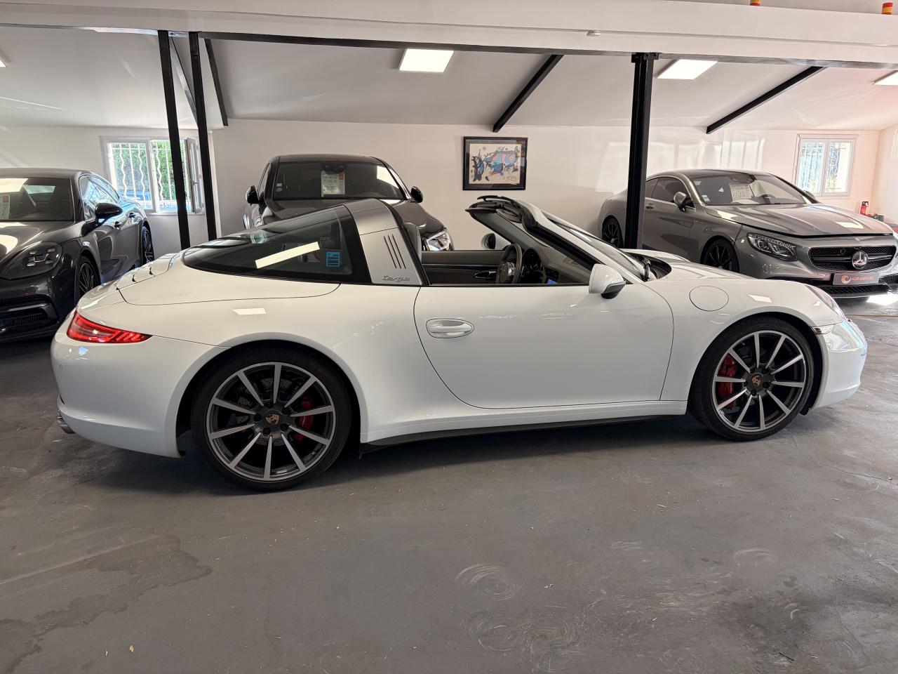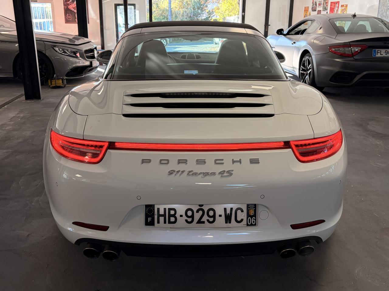 Affichage analogique : régime, vitesse, pression et température de l'huile, température du liquide de refroidissement et jauge de carburantAffichage de la vitesse engagée sur le compte-toursAileron arrière à déploiement automatiqueAirbags grand volume (deux niveaux de gonflage) pour le conducteur et le passagerArceau Targa fixe en aluminium, grilles et monogramme « Targa »Bloc moteur et culasse en aluminiumBoîte de vitesse Porsche Doppelkupplung (PDK)Ciel de toit en tissu noir alcantaraClimatisation automatique avec réglage de la température séparé côtés conducteur et passager, commande automatique du recyclage de l'air avec capteur de qualité d'air et fonction chaleur résiduelleEtriers de frein rougesFrein de parking électriqueHabillage de larceau Targa en alcantara, NoirLunette arrière chauffanteLunette arrière convexe chauffante en verre de sécurité feuilletéPack Audio PlusSièges arrière rabattables individuellementSièges sport avec réglage électriqueSystème d'échappement à clapetsSystème de diagnostic embarqué pour le contrôle des émissions à l'échappementSystème de toit comprenant une capote en tissu entièrement électrique et automatique montée sur une coque rigideTableau de bord avec compte-tours central, écran TFT couleur haute définition de 4,6 pouces avec affichage des fonctions de l'ordinateur de bord, éclairé en blancTarga 2+2 places avec carrosserie élargie et transmission intégraleTeinte unies Blanc CarraraTouche SPORTVitres latérales hydrophobesVitres teintées thermo-isolées