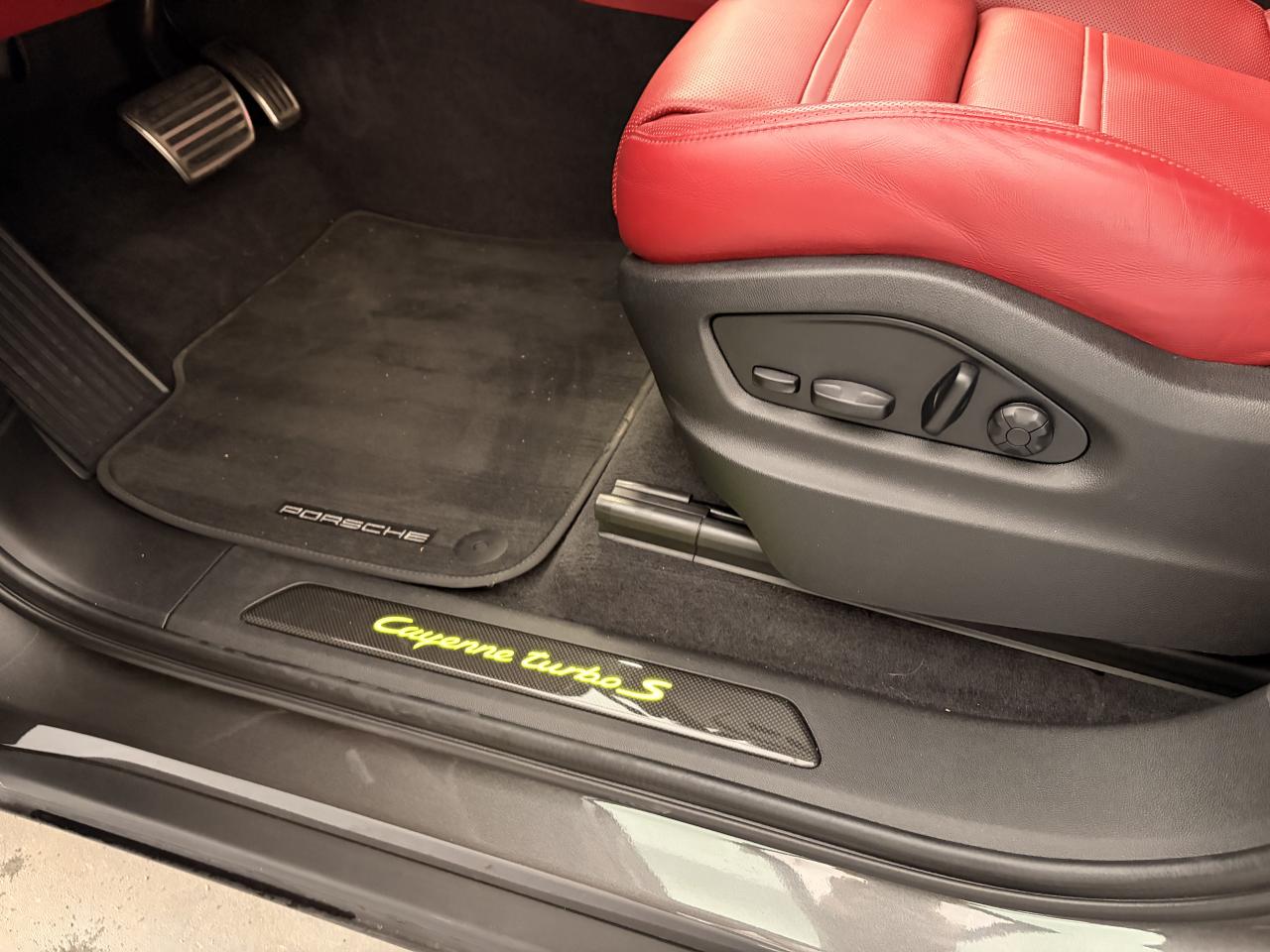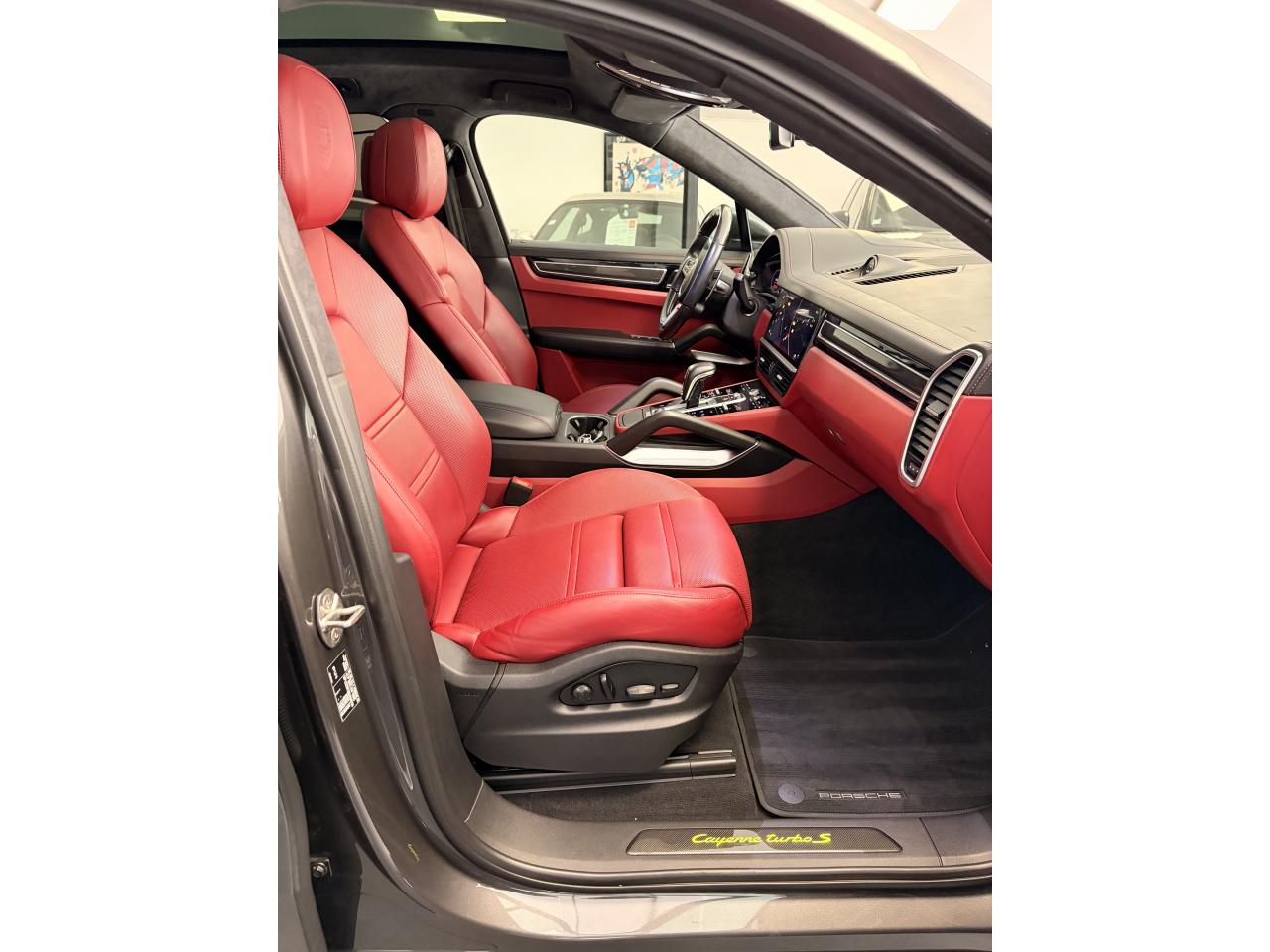 Accès Confort Affichage des limitations de vitesse avec assistance de changement... Affichage tête haute HUD Assistance parking avant et arrière avec caméra... Baguettes de seuil de porte personnalisées en carbone,... Base des sièges en cuir avant et arrière Câble de recharge Climatisation automatique 4 zones Compartiment smartphone Ecusson Porsche sur appuie-tête avant et arrière Fermeture assistée des portes Soft Close Frein disques carbone céramique PCCB , étriers... Jantes Cayenne Turbo Design 21 pouces avec élargisseurs... Pack intérieur Carbone Pack intérieur cuir Coutures décoratives en couleur... Pack Intérieur Gommier Rouge Pack intérieur Noir, finition brillante Pack SportDesign peint en noir brillant Peinture métallisée Phares à DEL teintés incluant le Porsche Dynamic... Sièges Confort arrière Sièges confort avec Pack Mémoire intérieur... Système d'échappement Sport en noir Teinte métallisée Ventilation des sièges avant Volant Sport carbone multifonction avec chauffage